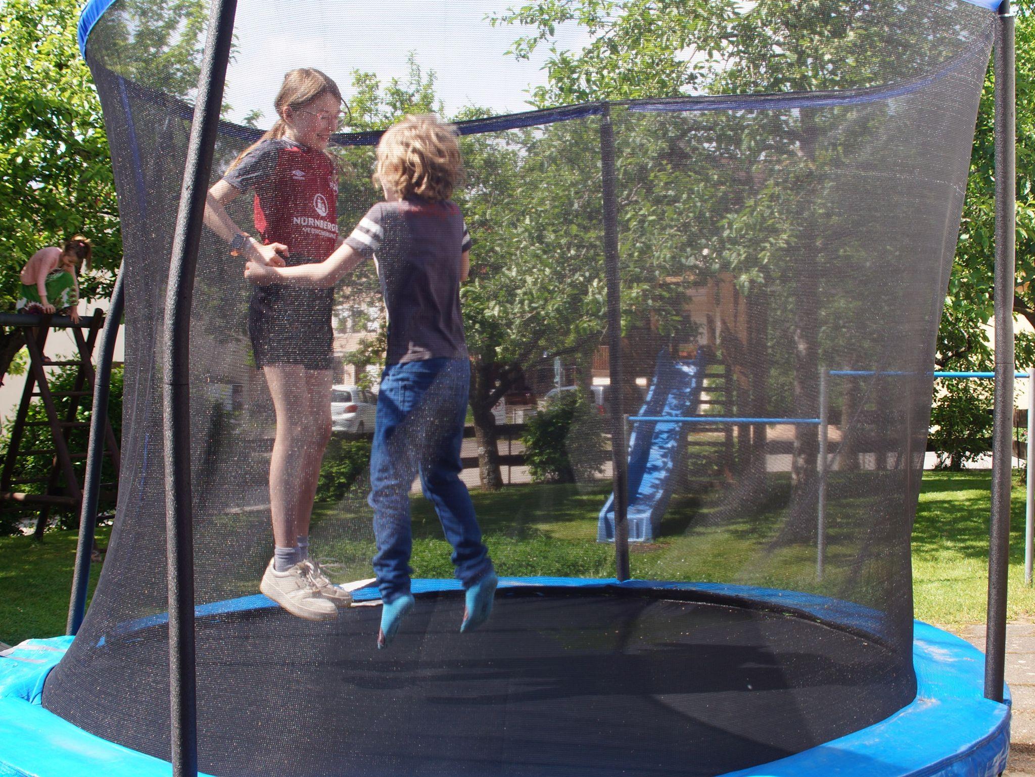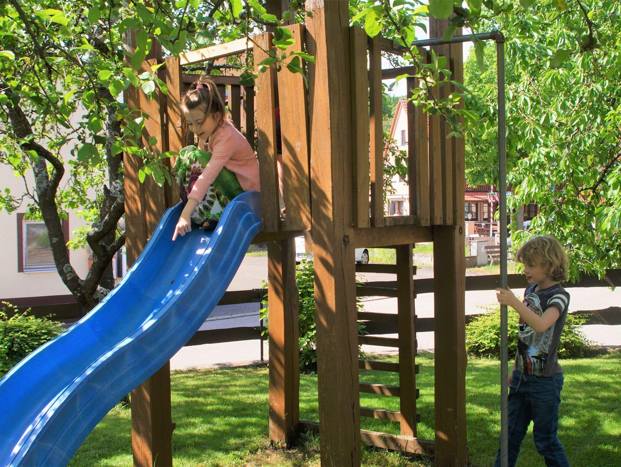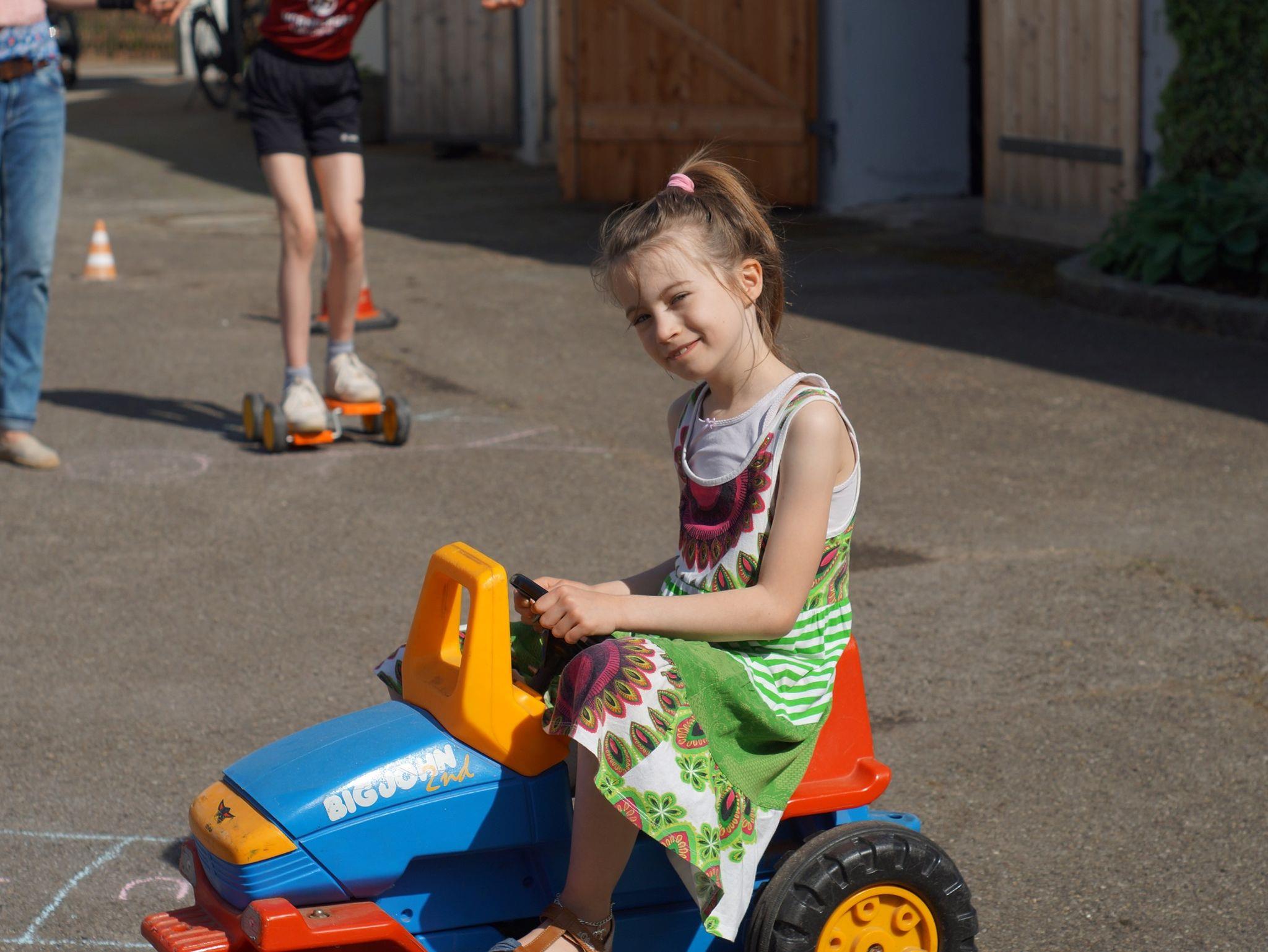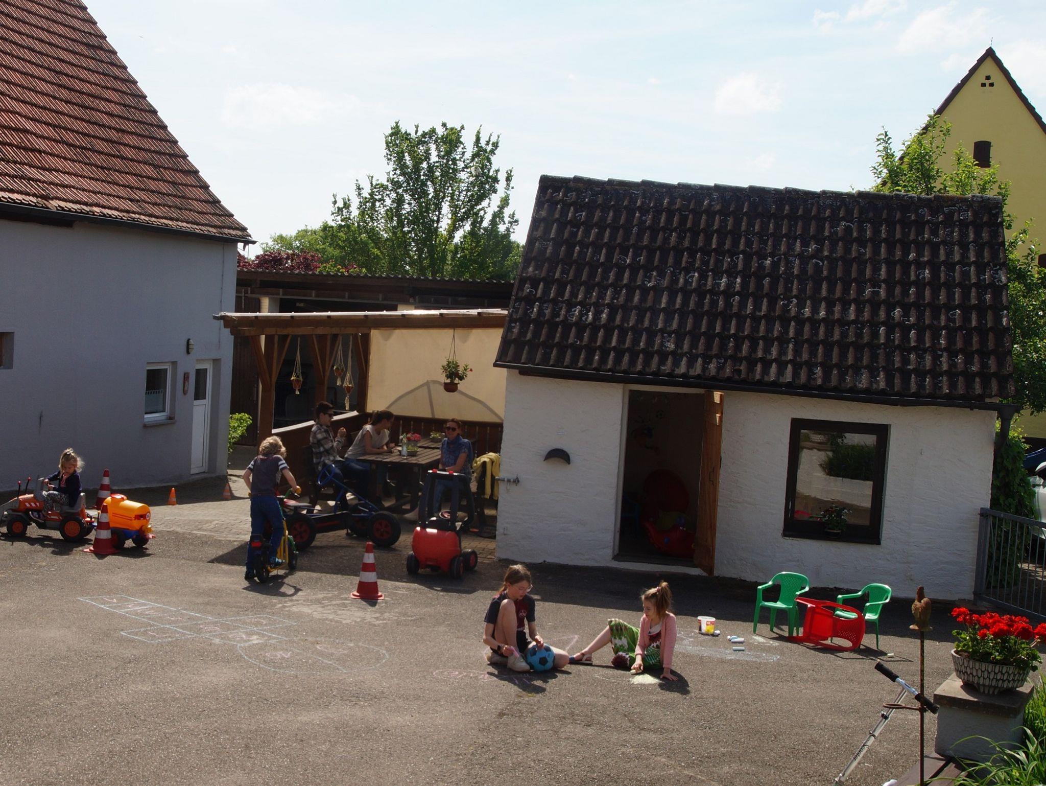 abgeschlossenen Hof und auf dem Spielplatz nach Lust und Laune toben. Verschiedene Tret-Fahrzeuge und viele Spielsachen stehen dazu bereit.