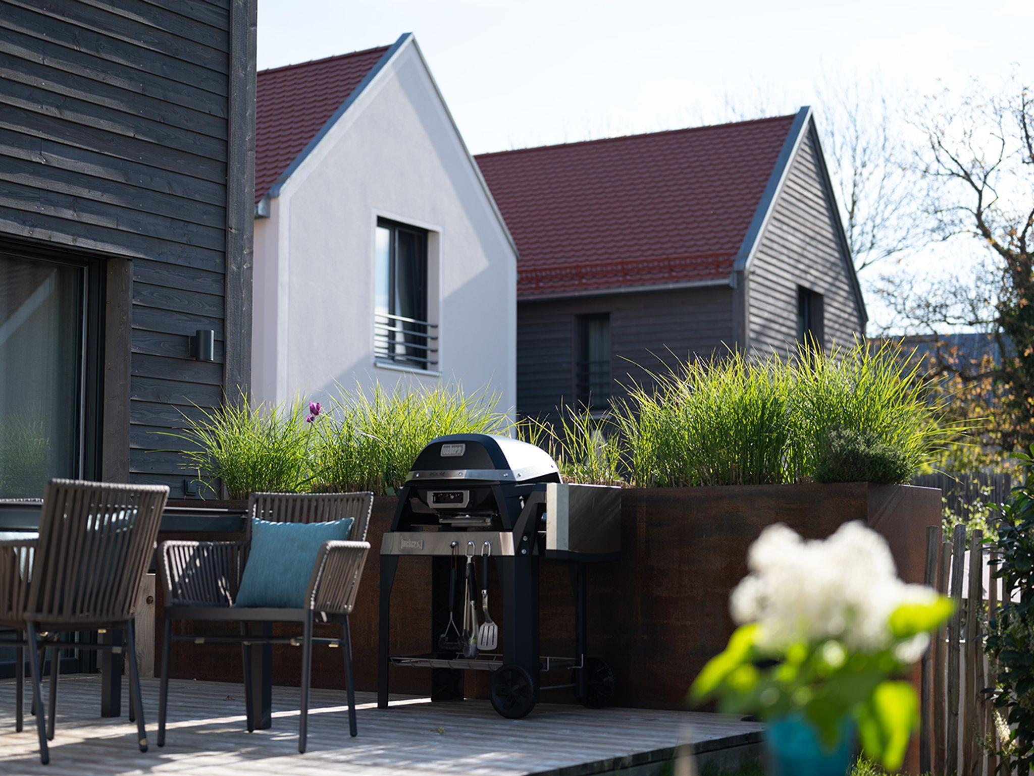 - Terrasse mit gemütlicher Sitzgruppe, Liegen und Grill