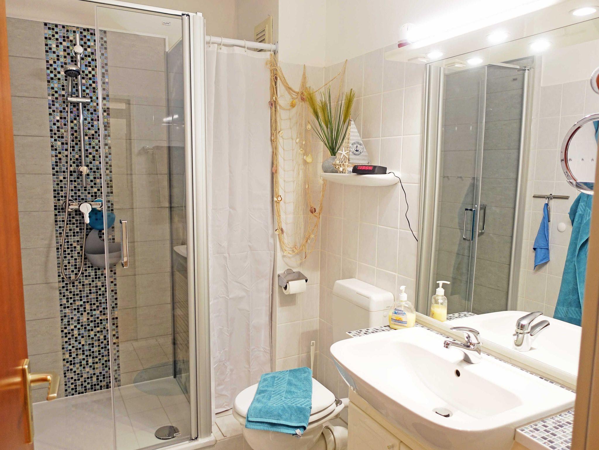 Zur Ferienwohnung gehört ein Parkplatz direkt am Haus. Ein abschließbarer Abstellraum im Keller für Fahrräder steht ebenfalls zur Verfügung. Bis zur Bus-Haltestelle des öffentlichen Nahverkehrs sind es ca. 500 Meter. Ein Bäcker ist ca. 400 m entfernt. Ein Waschsalon befindet sich unweit am Hafen.