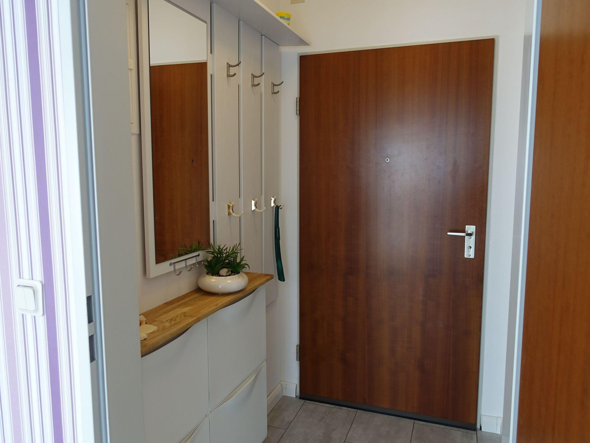Die Ferienwohnung liegt im Erdgeschoss und verfügt über einen separaten Eingang und Flur mit Garderobe. Die lichtdurchflutete Ferienwohnung ist ca. 43 qm groß, hat Platz für maximal 4 Erwachsene Gäste und ein Kind im Kinderreisebett bis 3 J., wurde modern, hochwertig sowie liebevoll eingerichtet und bietet ein WLAN-Internetzugang.
