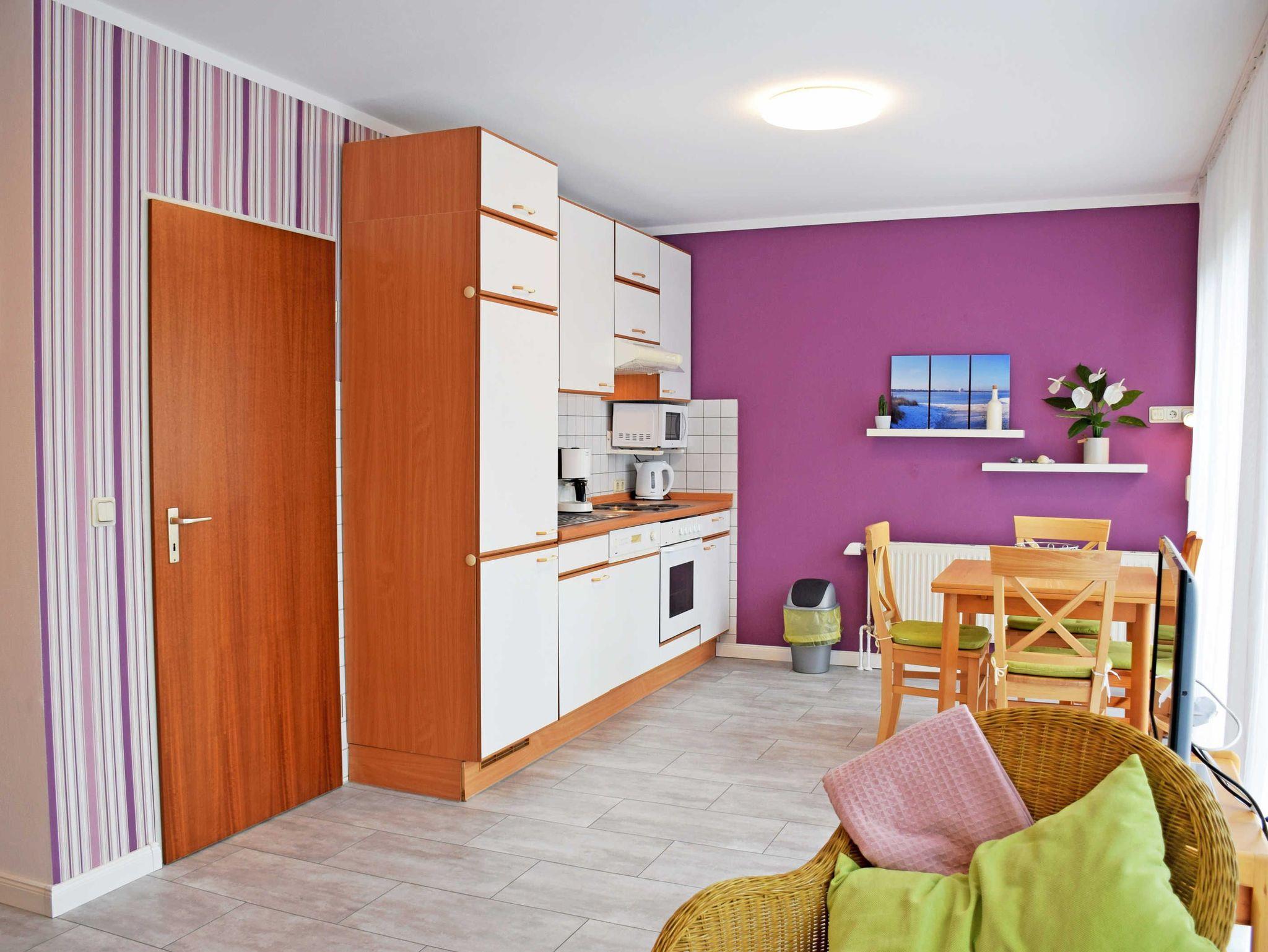 Unsere schöne, helle und liebevoll eingerichtete Ferienwohnung (separater Eingang, 43 qm, 1 komb. Wohn- und Schlafraum, Küchenzeile, Dusche/WC, WLAN-Internet, Terrasse, max. 4 erwachsene Gäste und ein Kind im Kinderreiosebett bis 3 J.) befindet sich in ruhiger Lage in Gustow. Die Wohnung befindet sich im Erdgeschoss eines Appartementhauses.