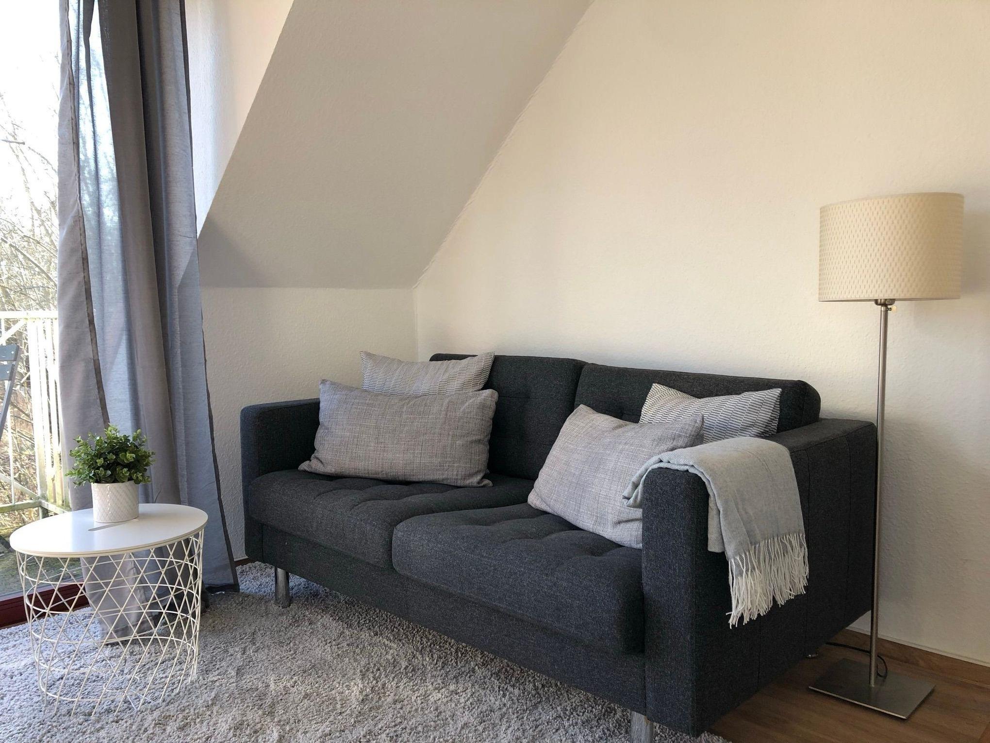 Unsere Ferienwohnung C24 "Mary Poppins" ist ein 32 qm großes Einzimmerappartement im Dachgeschoss unseres Ferienhauses mit insgesamt vier Ferienwohnungen. Die Wohnung ist im skandinavischen Stil eingerichtet. Sie ist hell und gemütlich und wurde 2022 renoviert und neu möbeliert. Das Wohn- und Schlafzimmer ist mit einem 140 cm breiten Doppelbett (eine Matratze) inklusive Inlets ausgestattet. Das Bett ist mit geräumigen Schubladen ausgestattet, die viel Stauraum bereit halten. Außerdem befinden sich in diesem Zimmer ein bequemes Sofa mit Beistelltisch, ein Esstisch mit zwei Stühlen, eine Kommode mit viel Stauraum, ein Smart-TV, ein Wäscheständer und ein paar schöne Lampen für indirekte gemüliche Beleuchtung. Eine große Fensterfront mit Tür, die den Weg auf den eigenen Balkon eröffnet, lässt viel Licht in das Wohn- und Schlafzimmer. Darüber hinaus sind alle Fenster des Wohn- und Schlafzimmers mit Rolladen ausgestattet, die abdunkeln und isolieren. Die große lichtdurchflutete Küche im Landhausstil ist neben Ofen, Kochfeld und Kühlschrank mit einer Mikrowelle, Kaffeemaschine, einem Wasserkocher und Toaster ausgestattet. Das große und helle Badezimmer verfügt über eine Dusche und hält ausreichend Abstellflächen bereit. Im Keller der Ferienwohnung befinden sich ein Grill, ein Sonnenschirm, ein Baby-Reisebett, ein Kinderhochstuhl, Sandspielzeug und ein Kinderwagen.
