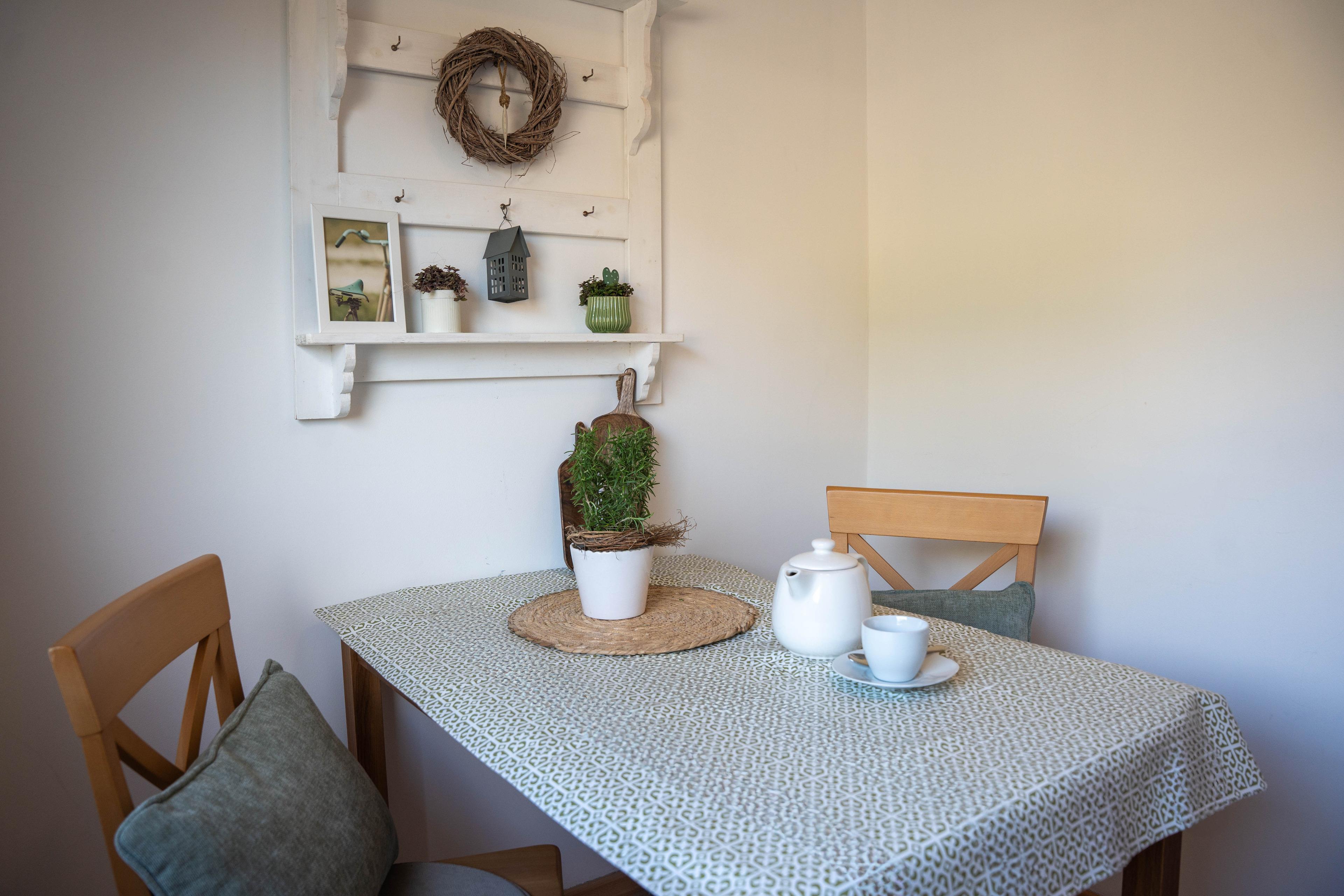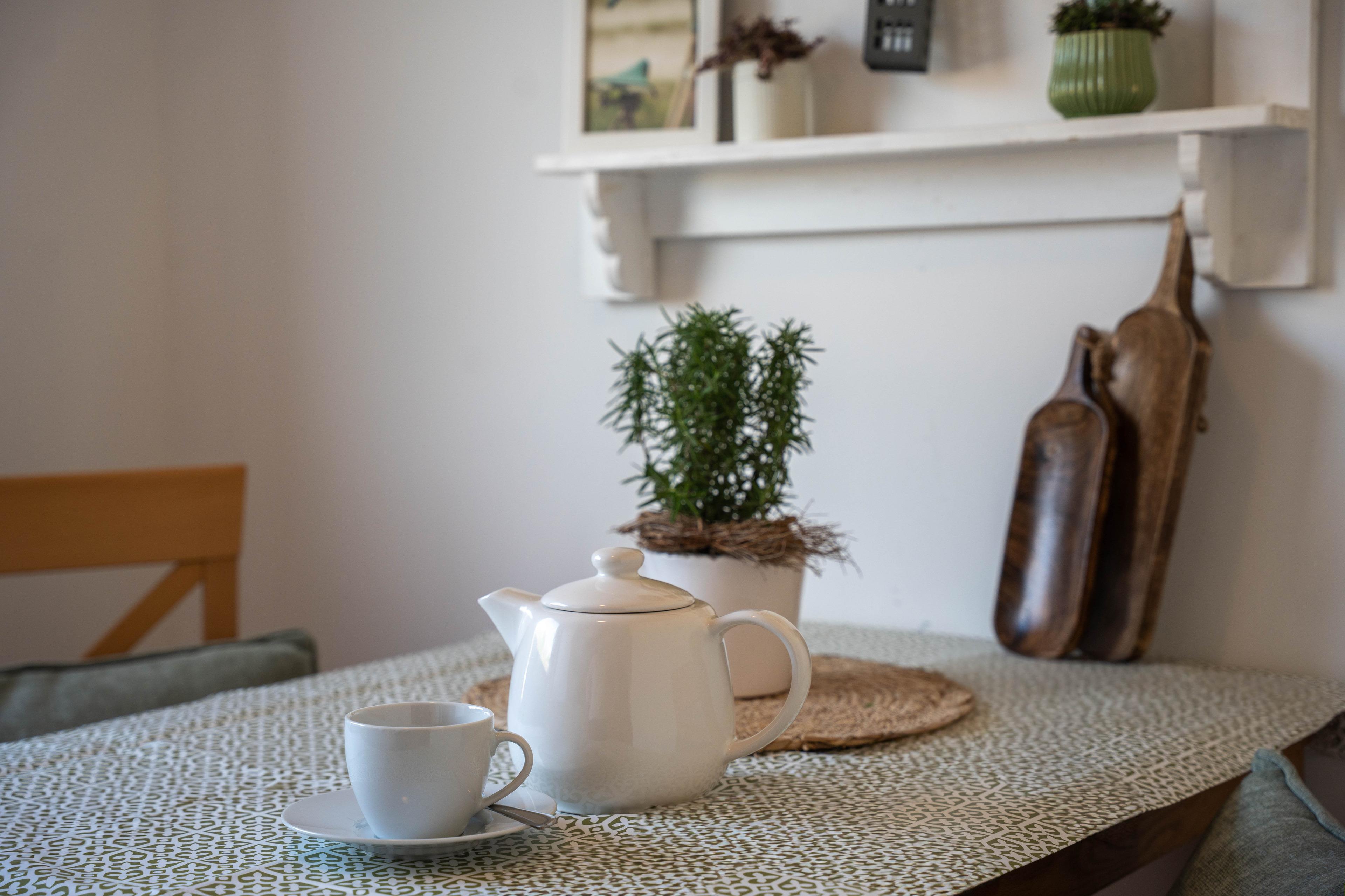 Die Aufteilung ist wie folgt. Wohnzimmer mit einem 2er Sofa und einem Sessel. Schlafzimmer mit Doppelbett, eine Panrty-Küche mit Essbereich sowie Bad mit Dusche und WC. Diese gemütliche und geschmackvoll eingerichtete Ferienwohnung ist für 2 Personen geeignet und bietet Ihnen viel Platz um den Urlaub zu geniessen. Die Pantry-Küche ist mit Herd, Backofen, Kaffeemaschine, Toaster und ausreichend Geschirr ausgestattet. Eine Terrasse bietet Ihnen im schönen Garten zusätlichen Platz und die Möglichkeit sich zu erholen. Haustiere sind auf Anfrage erlaubt. Ein Kfz Stellplatz ist vorhanden. Bettwäsche und Handtücher können hinzugebucht werden.