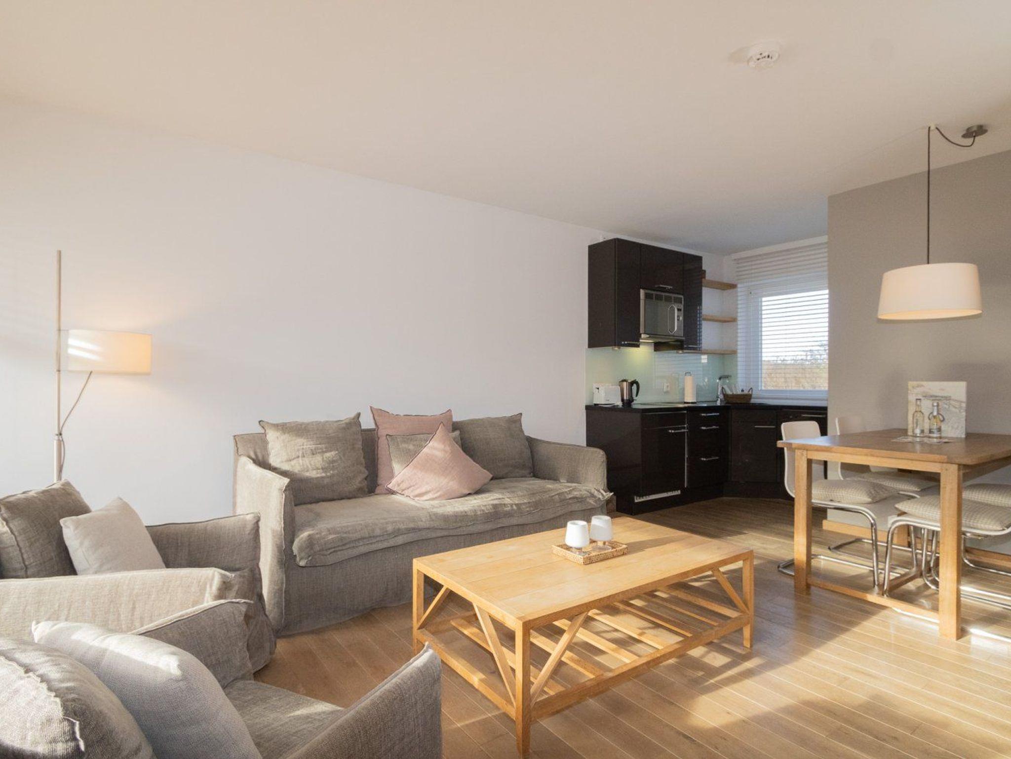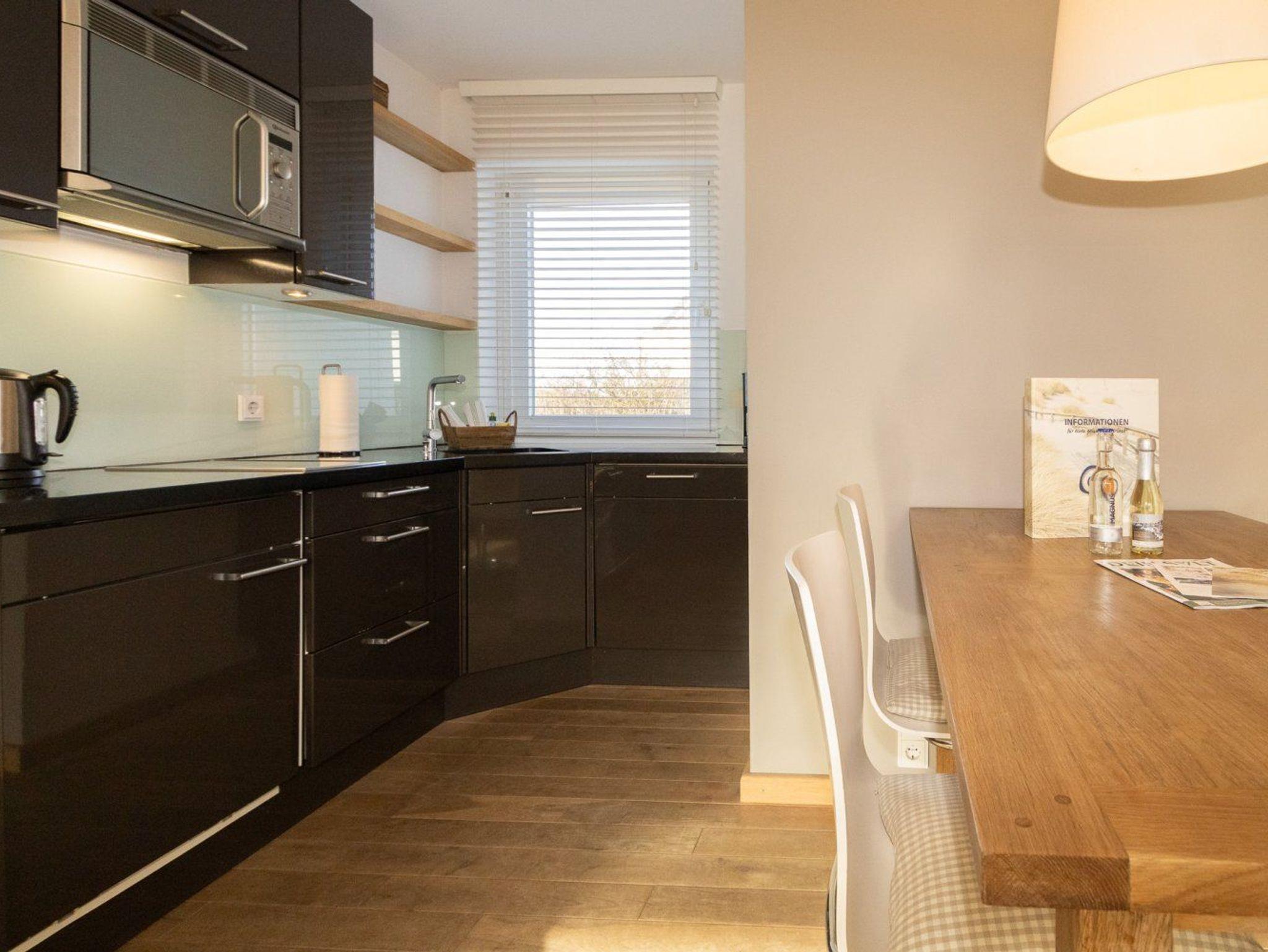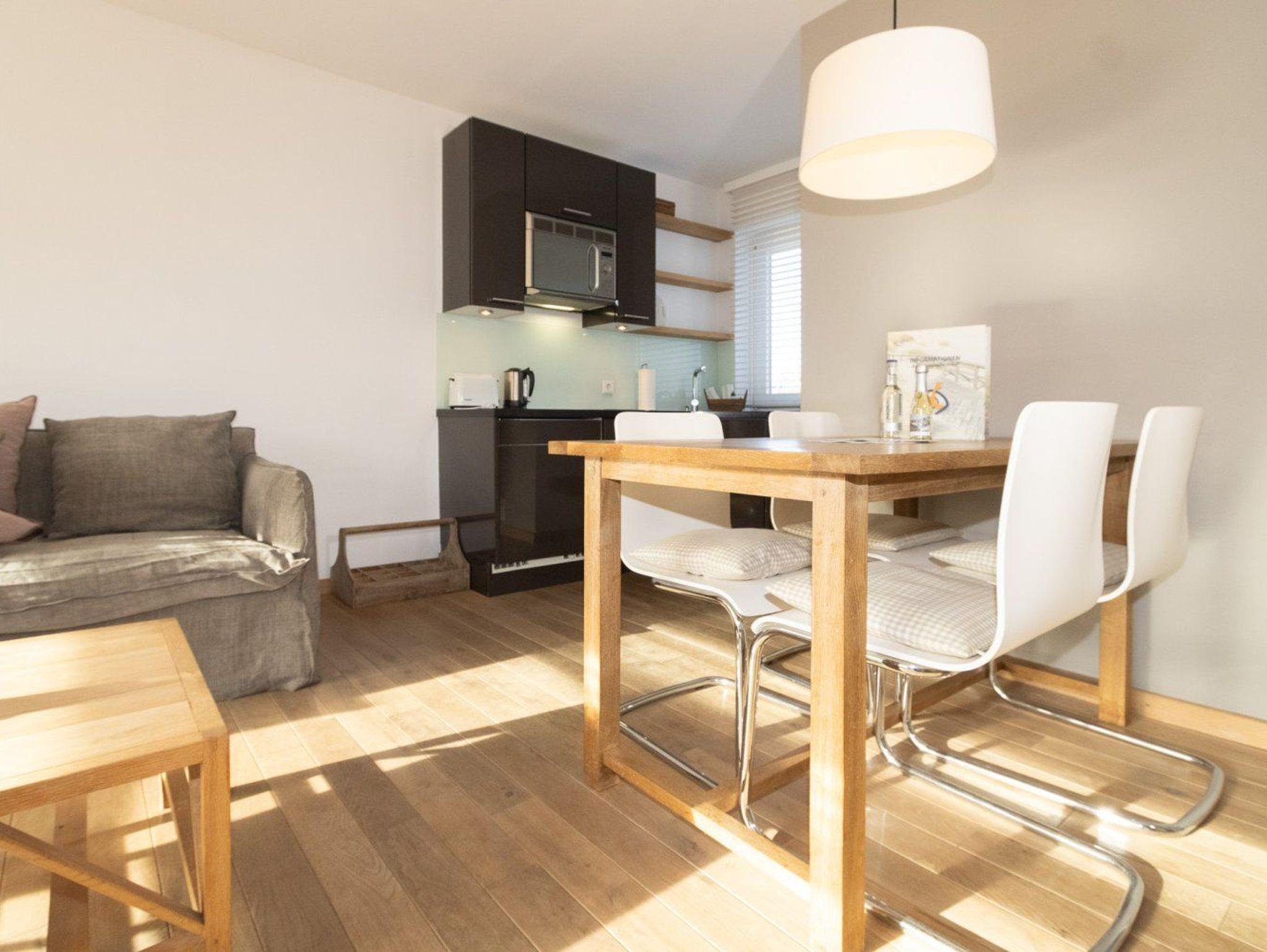 Ferienwohnung für bis zu 4 Personen (2 Erwachsene + 2 Kinder) in unmittelbarer Strandnähe zum Hauptbadestrand. Diese helle Erdgeschoßwohnung verfügt über 2 Schlafzimmer und einem großem Wohnbereich mit angrenzender Küchenzeile. Das Badezimmer ist modern und hell eingerichtet.