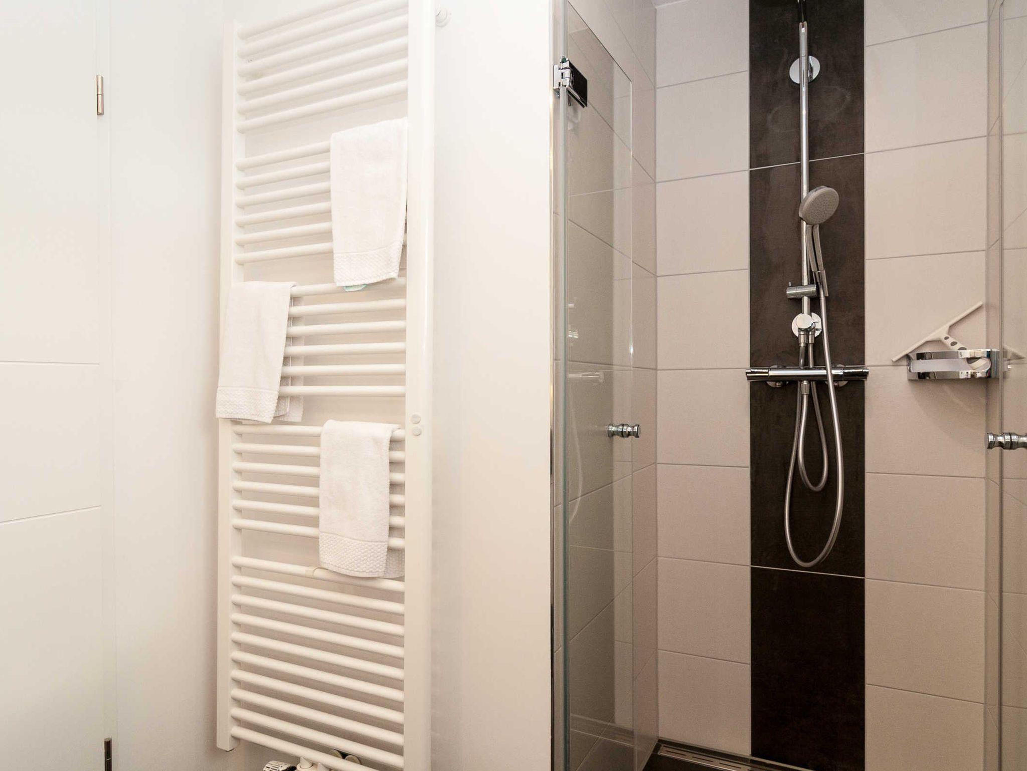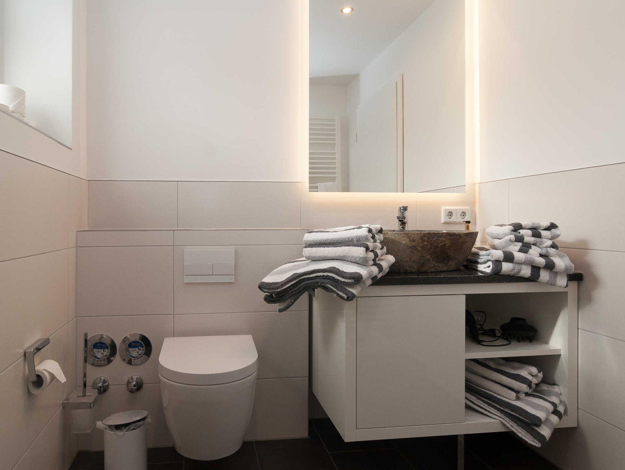 Das Badezimmer ist neu und modern eingerichtet.
