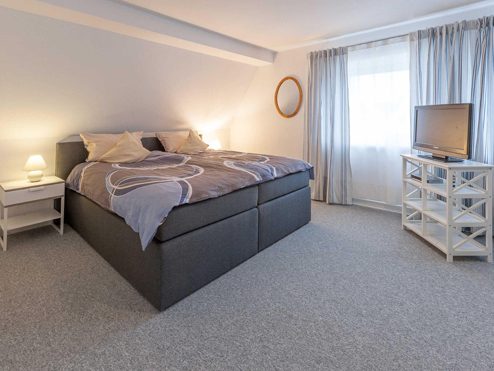 Im 1. OG befinden sich ein Doppelschlafzimmer, ein Einzelschlafzimmer und das geräumige Duschbad mit Doppelwaschbecken.