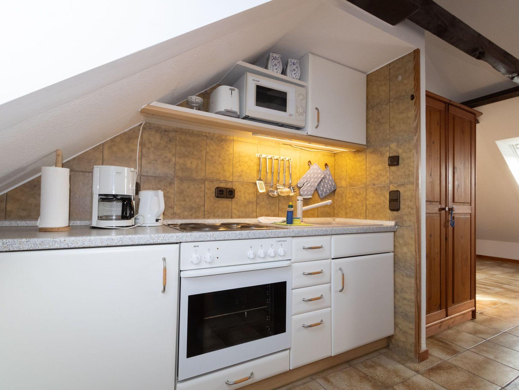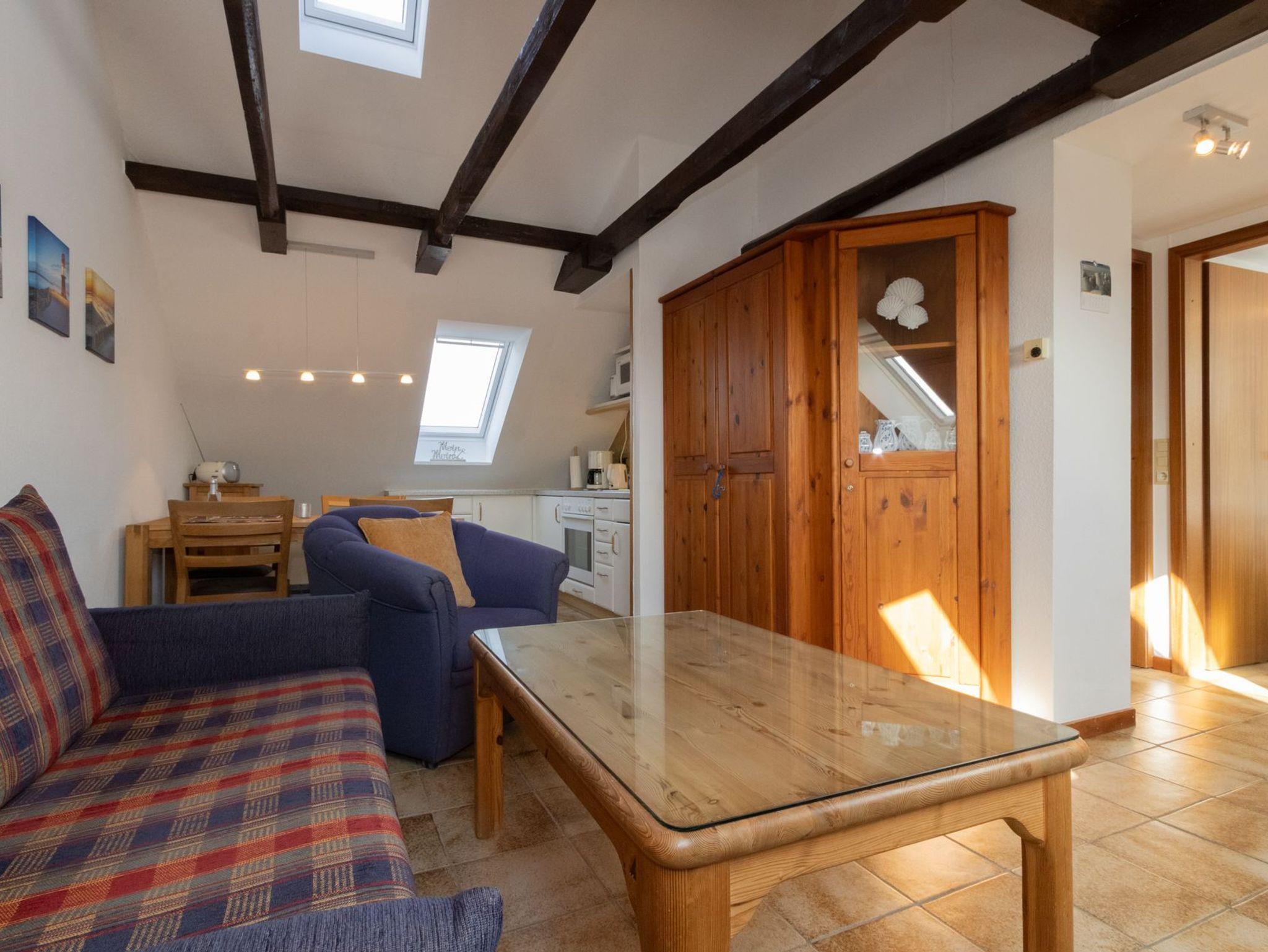 Diese gemütliche Dachgeschoßwohnung ist für bis zu 2 Personen geeignet und befindet sich im Haus Möwe.