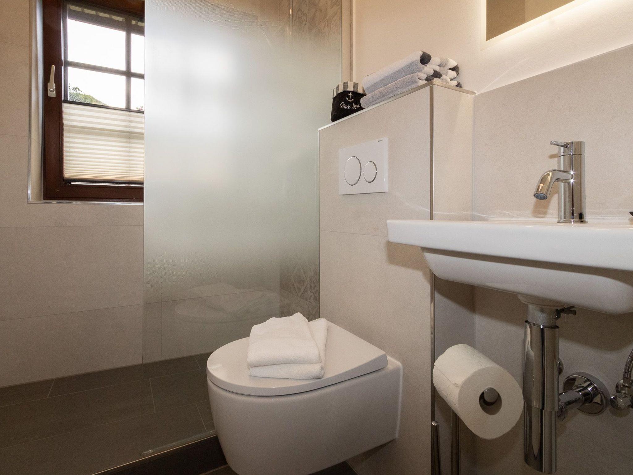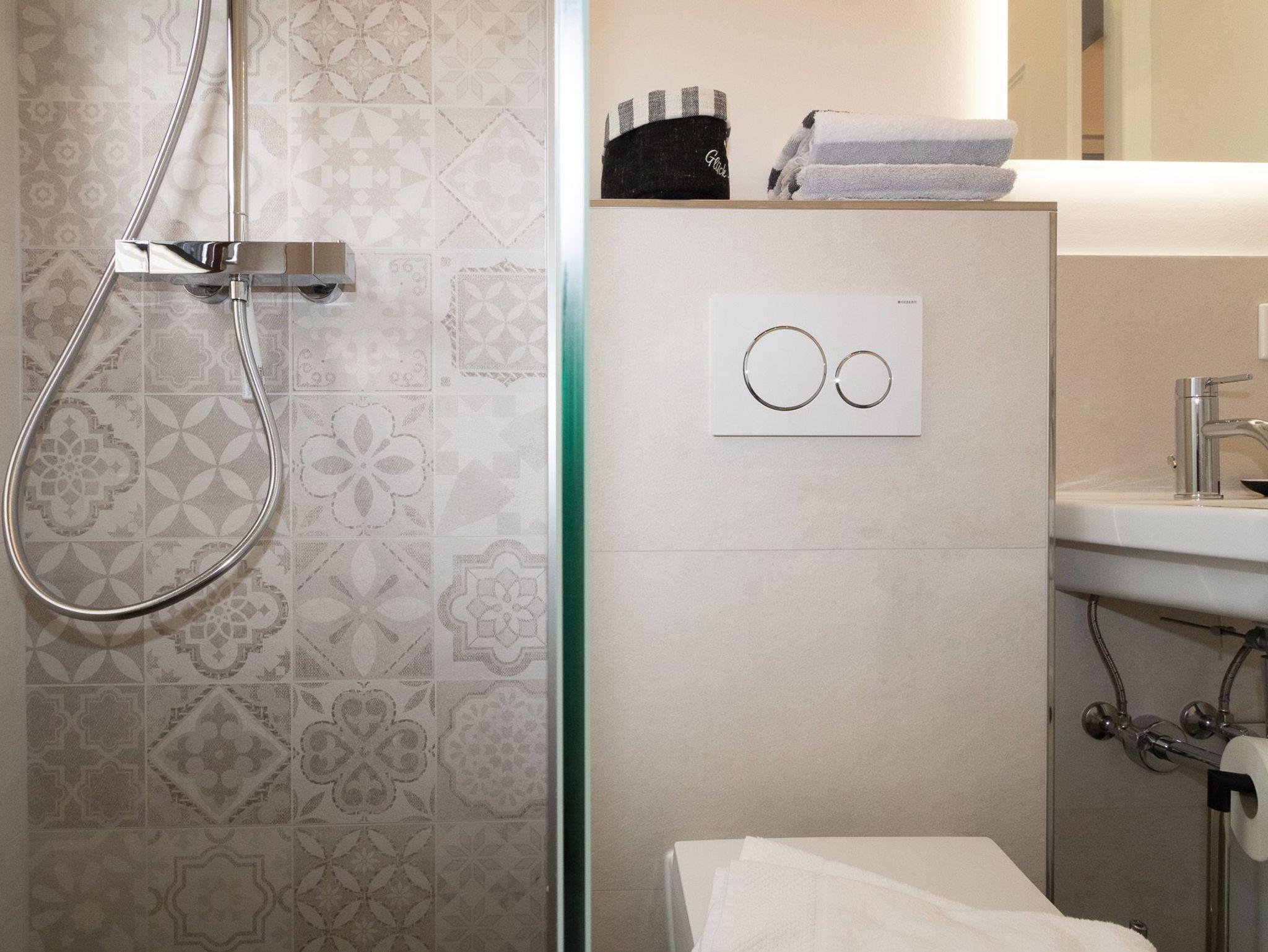 Ein weiteres Highlight der Wohnung ist das Badezimmer, das mit einer Dusche ausgestattet ist und durch Fußbodenheizung zusätzlichen Komfort bietet. Für weiteren Komfort sorgen eine Waschmaschine und ein Trockner, die Gemeinschaftlich genutzt werden können (im Nebenhaus).