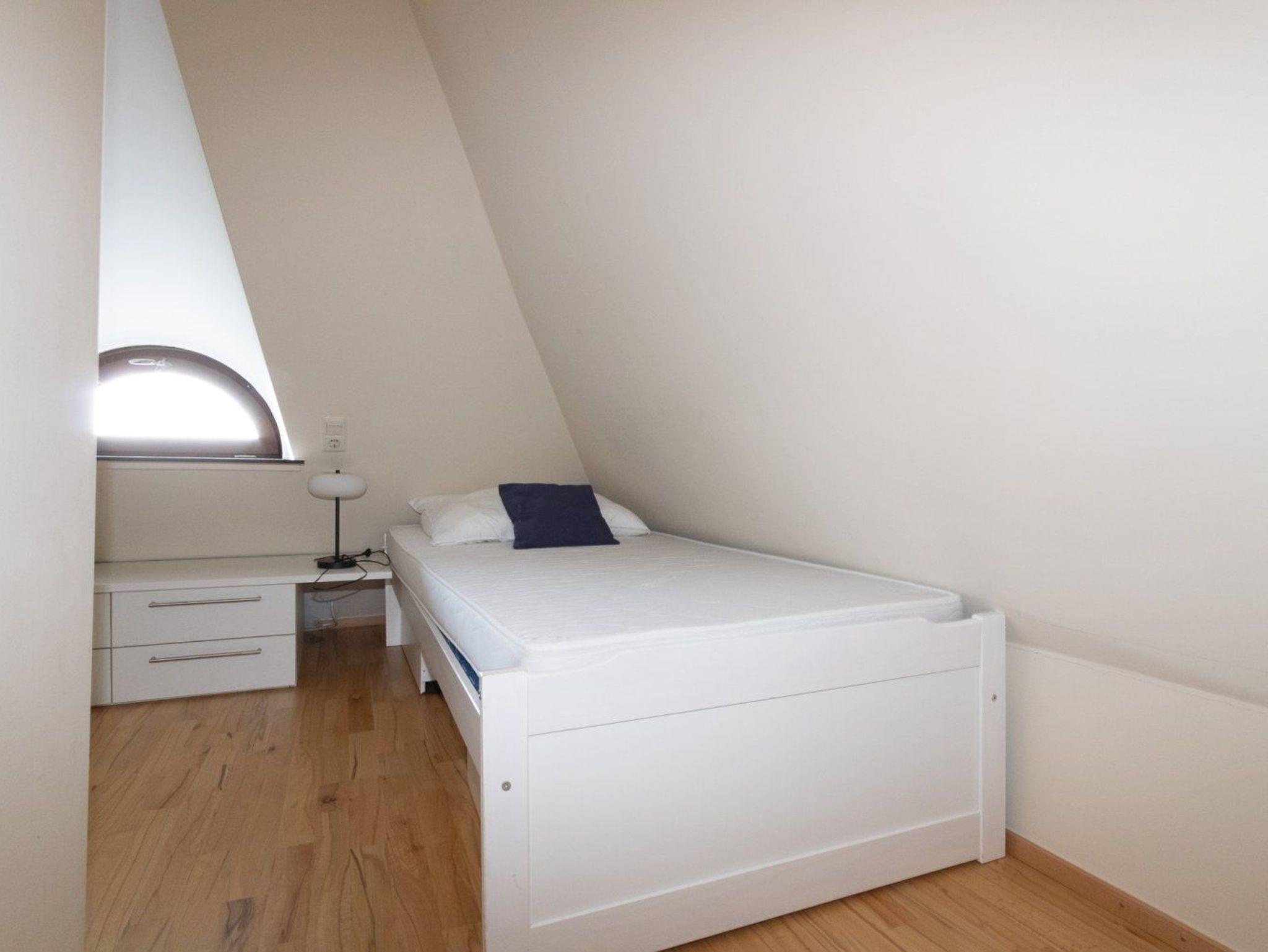 Das Schlafzimmer erreichen Sie über eine Treppe. Es ist mit zwei Einzelbetten ausgestattet.