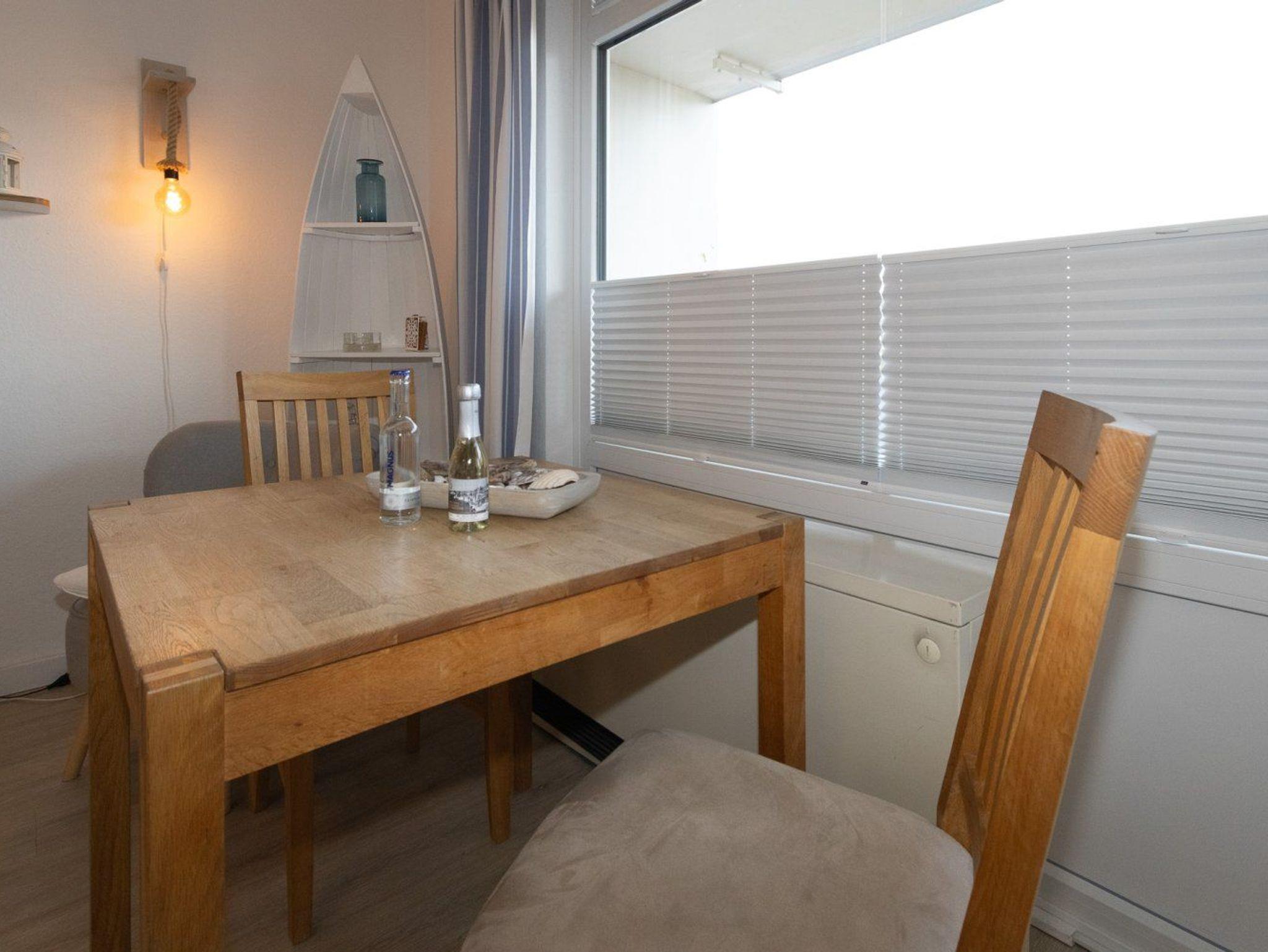 Bei der Einrichtung der Wohnung wurde auf Komfort und Wohnqualität sehr viel Wert gelegt. Das komfortable Schrankbett kann tagsüber ganz schnell verschwinden und der Wohnraum mit Esstisch wirkt wunderbar groß. Mit großem Flachbildschirm und WLAN, lässt diese Wohnung keine Urlaubswünsche offen.