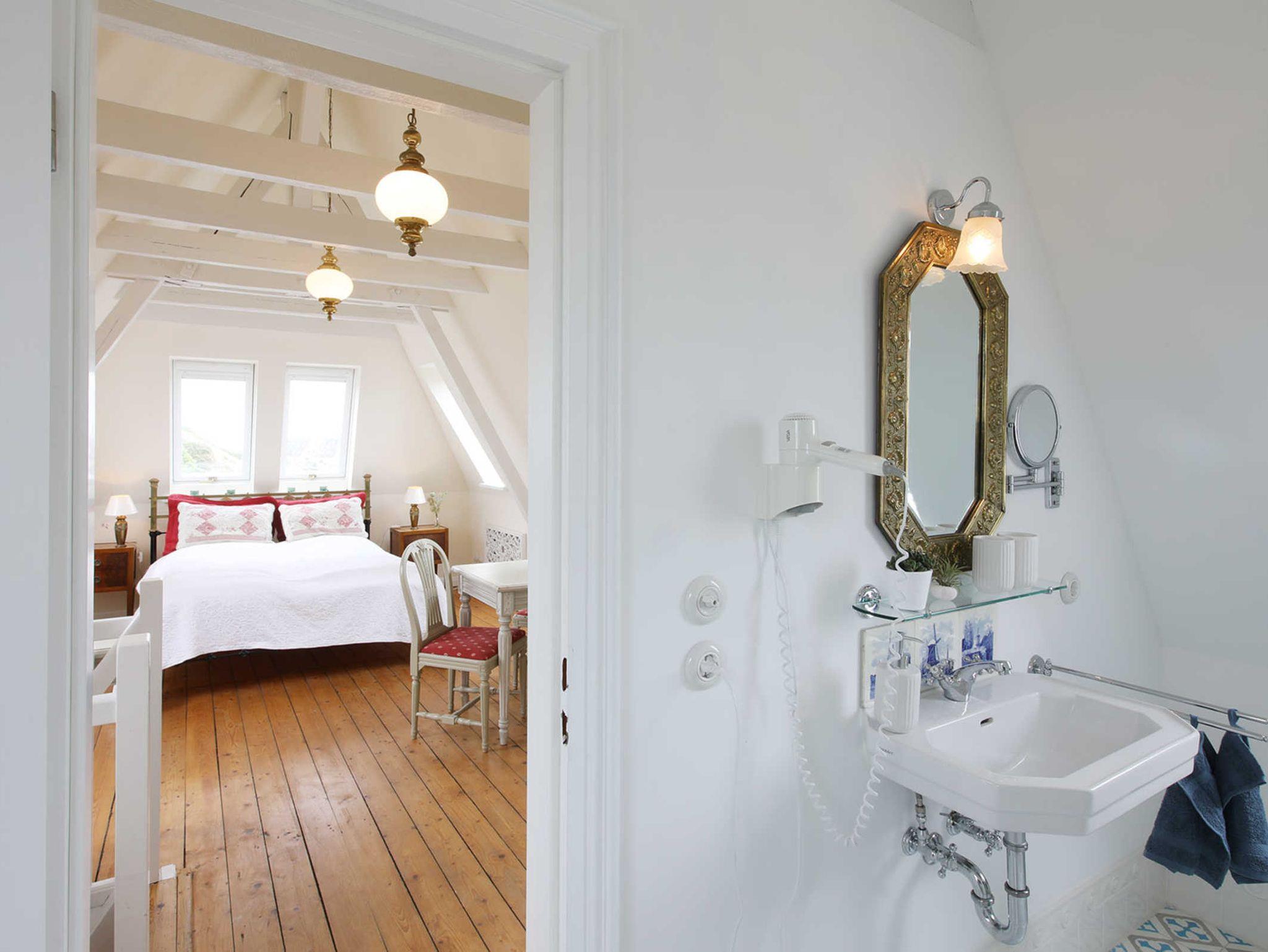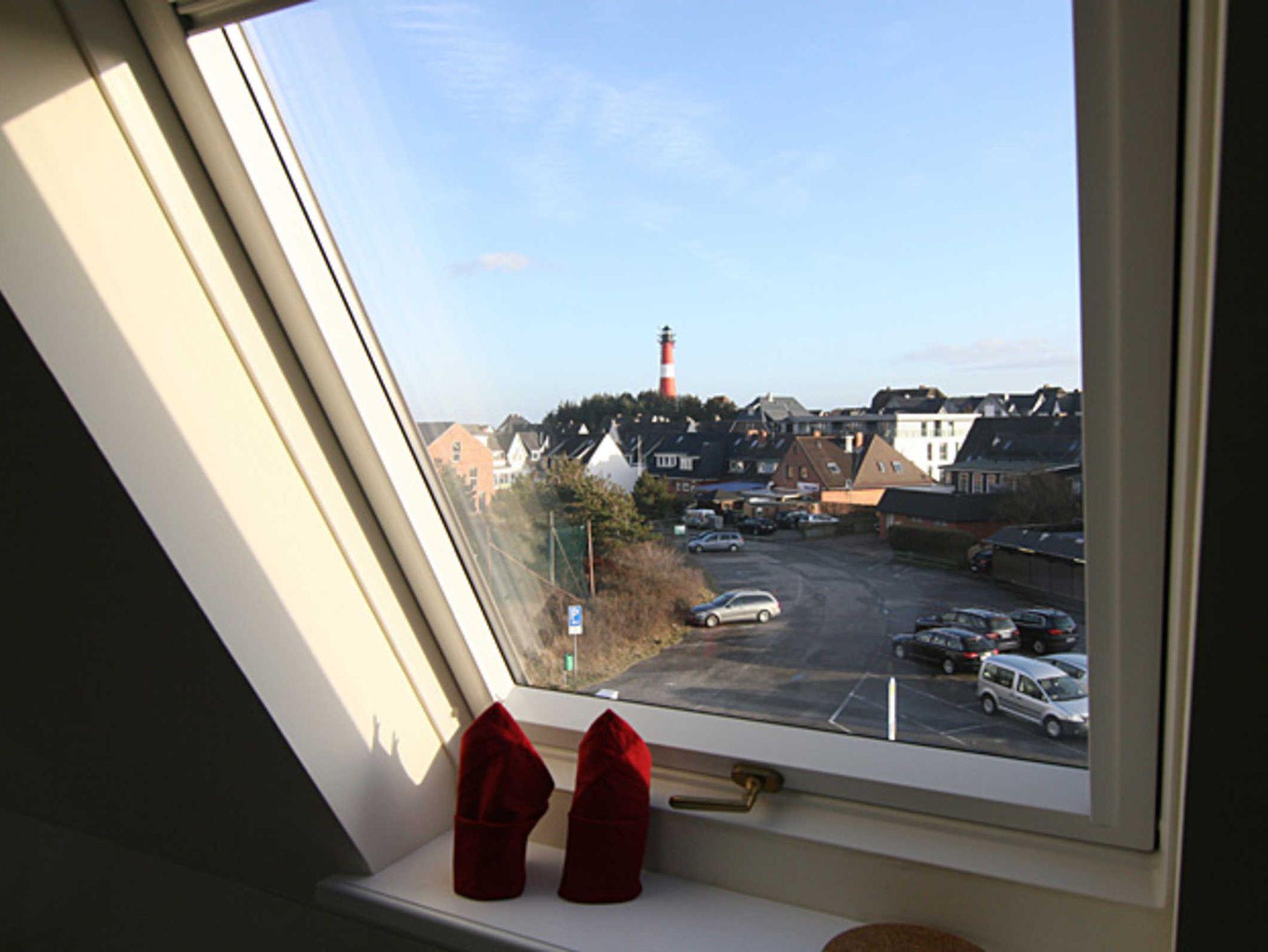 Über zwei, dem Charme des Hauses angepasste Holztreppen, gelangen Sie in Ihre Wohnung nah bei den Sternen. Ein traumhafter Blick erwartet Sie in dem kombinierten Wohn-/Schlafraum. Klein aber fein lässt diese Wohnung kaum einen Wunsch offen. Bestens geeignet für junge Leute und Junggebliebene. Der große Raum bietet neben dem Doppelbett eine Esstisch und eine kleine Küchenzeile. Vom Duschbad aus haben Sie ebenfalls einen Traumblick über den Ort bis zum Leuchtturm.