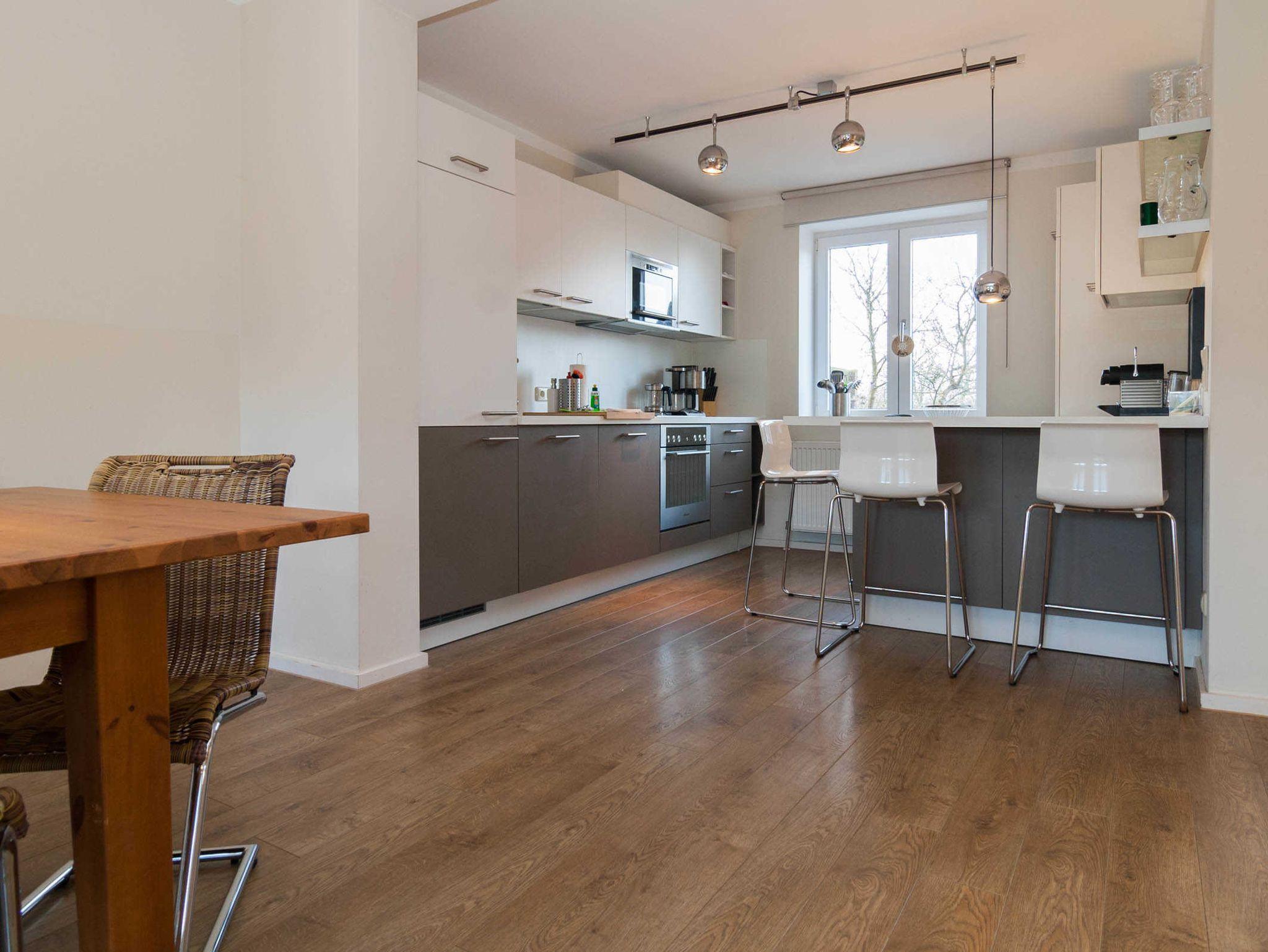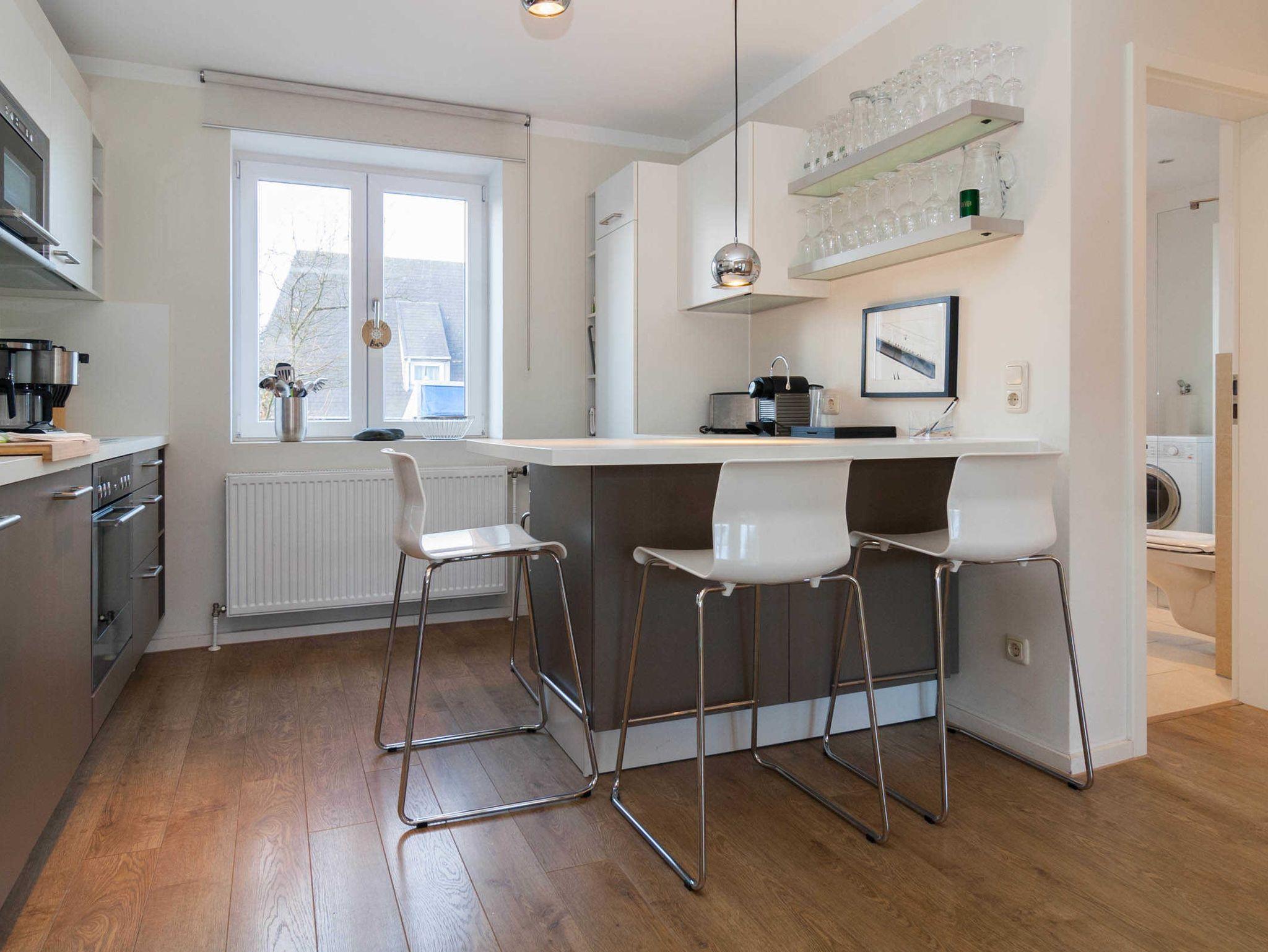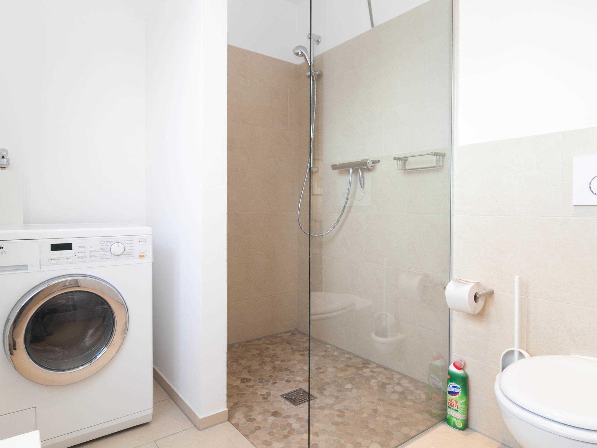 Das Haus bietet im Erdgeschoss eine moderne offene Küche mit Essbereich und Wohnbereich. Von hier aus kommen Sie in den Gartenbereich. Ein modernes Duschbad mit eigener Waschmaschine befindet sich ebenfalls im Erdgeschoss.