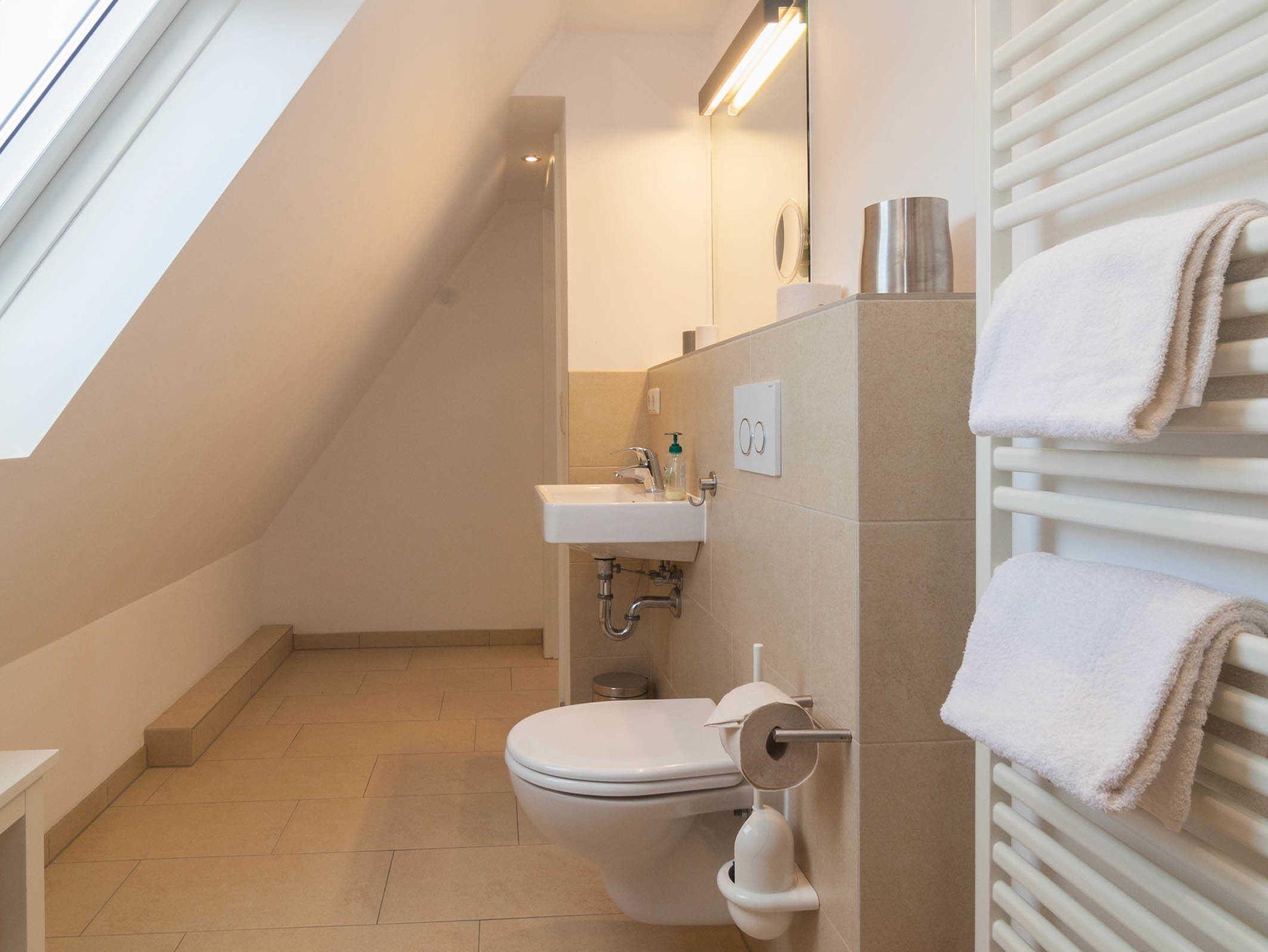 Im Obergeschoss/Dachgeschoss finden Sie 3 Schlafzimmer mit Doppelbetten und ein Schlafzimmer mit 2 Einzelbetten, sowie ein Duschbad und ein weiteres kleines Wohnzimmer, welches als Fernsehzimmer genutzt wird.