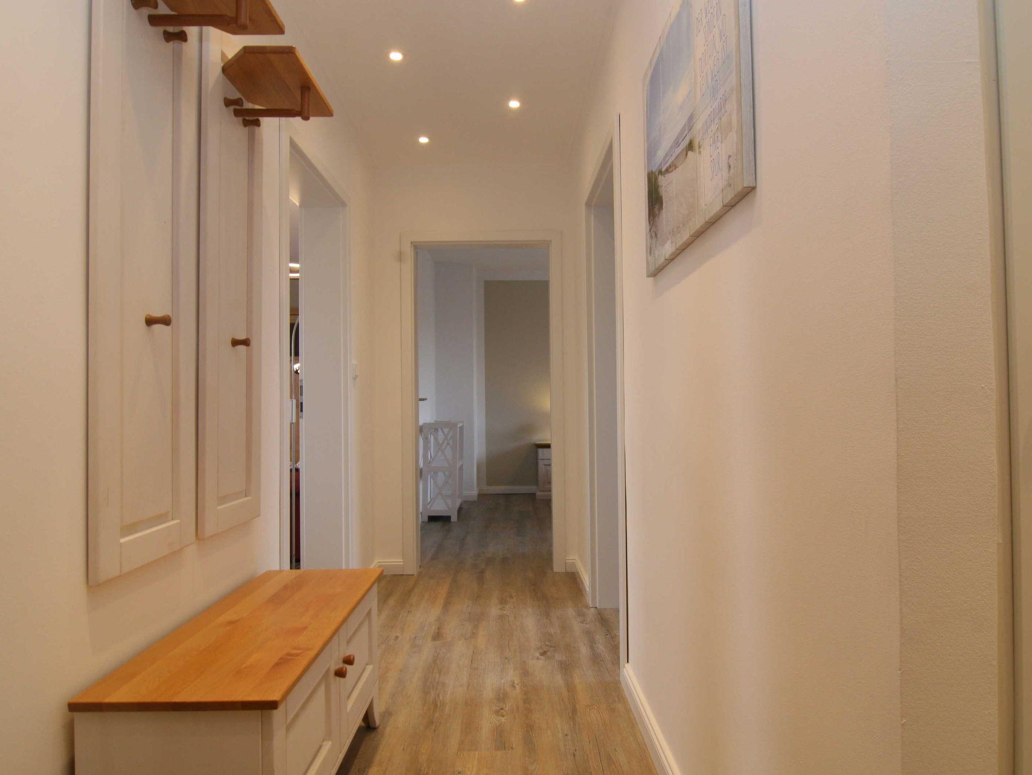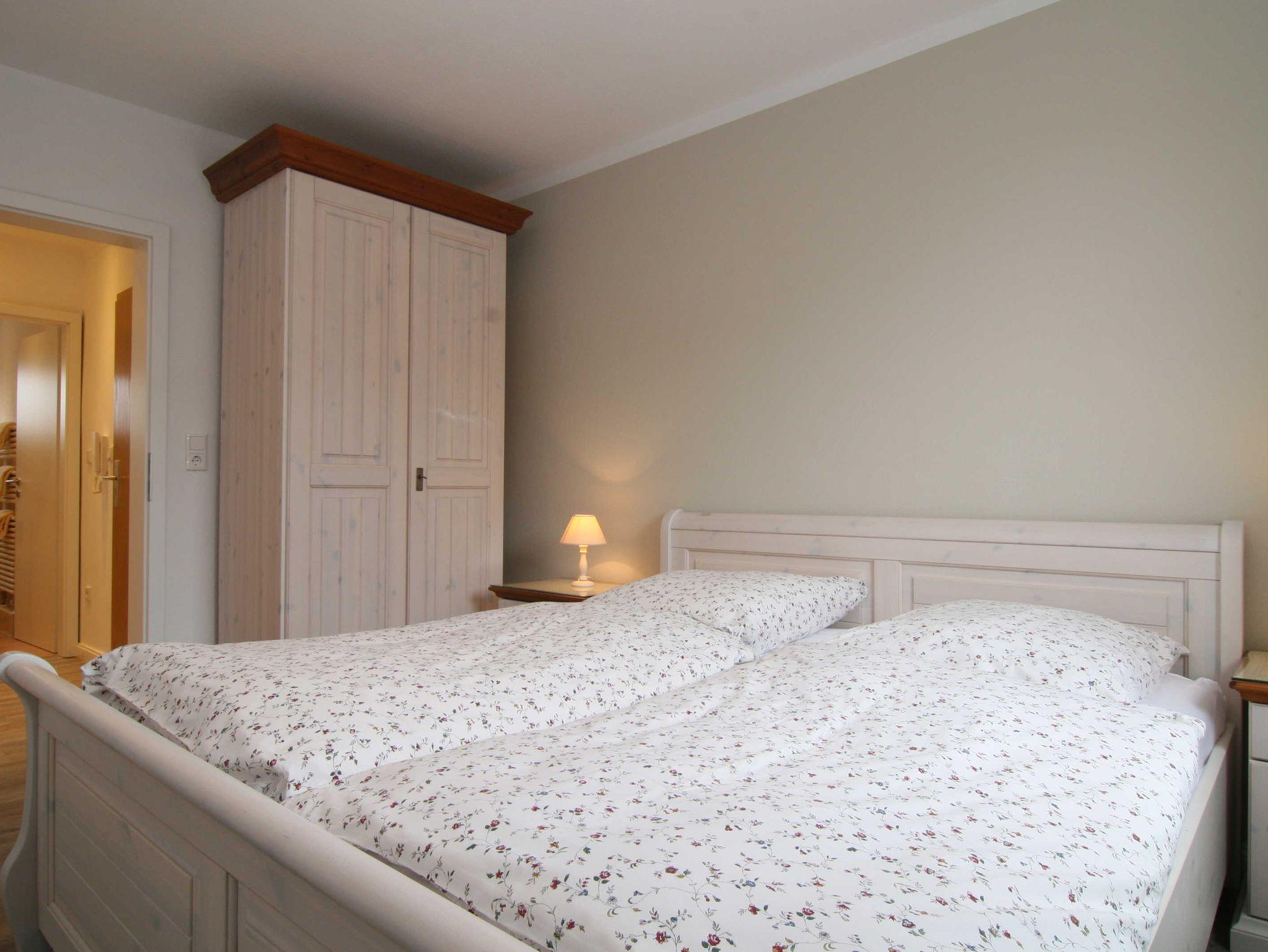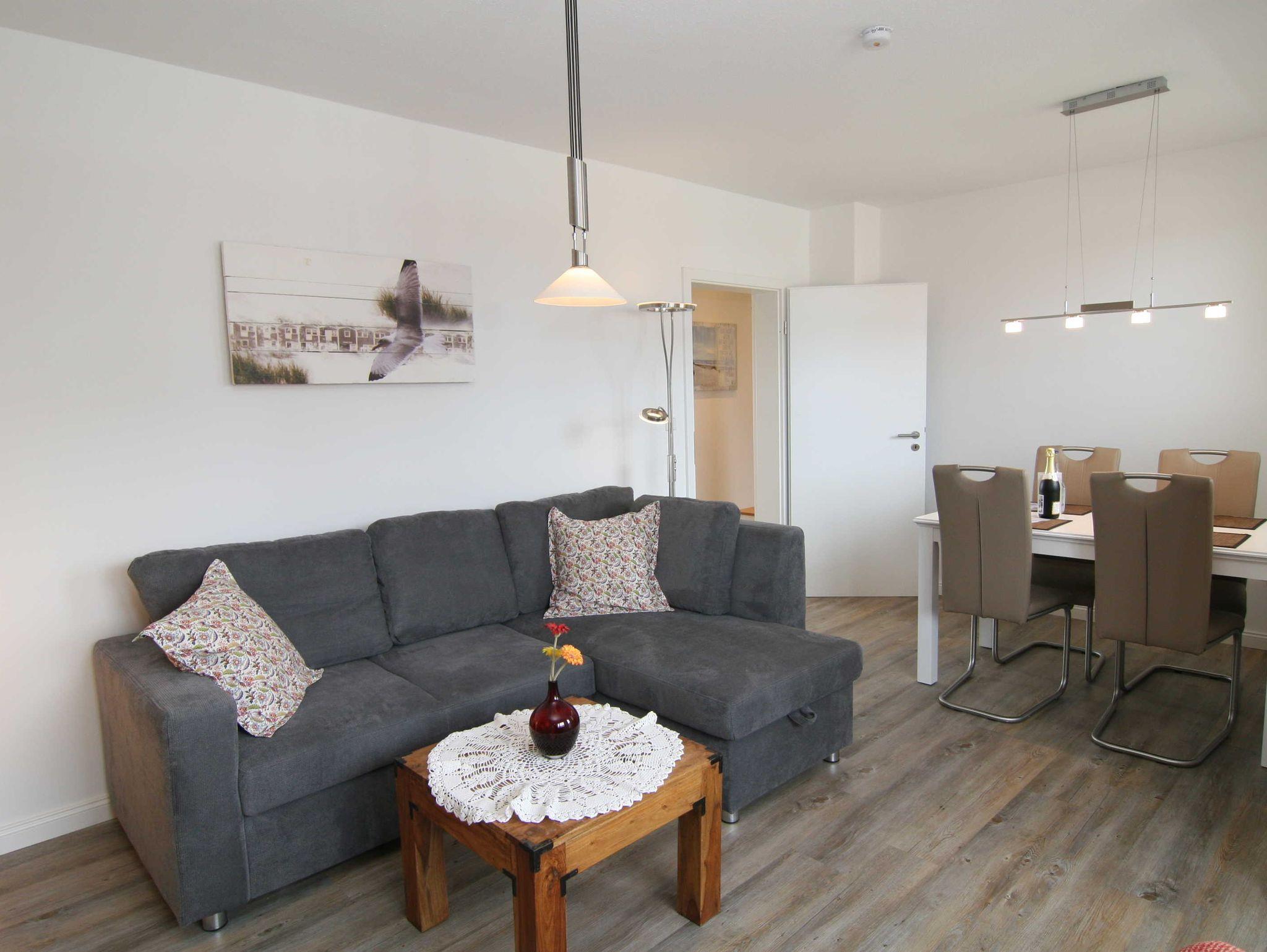 Die Ferienwohnung verfügt über zwei liebevoll eingerichtete Schlafzimmer, die für einen erholsamen Schlaf sorgen. Die angenehm gestaltete Wohnung ist rauchfrei und besticht durch eine gemütliche Atmosphäre, die sofort ein Gefühl von Zuhause vermittelt. Ihr Aufenthalt wird durch die komfortable Einrichtung, darunter ein einladendes Wohnzimmer mit einer Sofaecke und einem Fernseher, abgerundet. Hier können Sie nach einem langen Tag am Strand entspannen und die Geräusche des Meeres genießen.