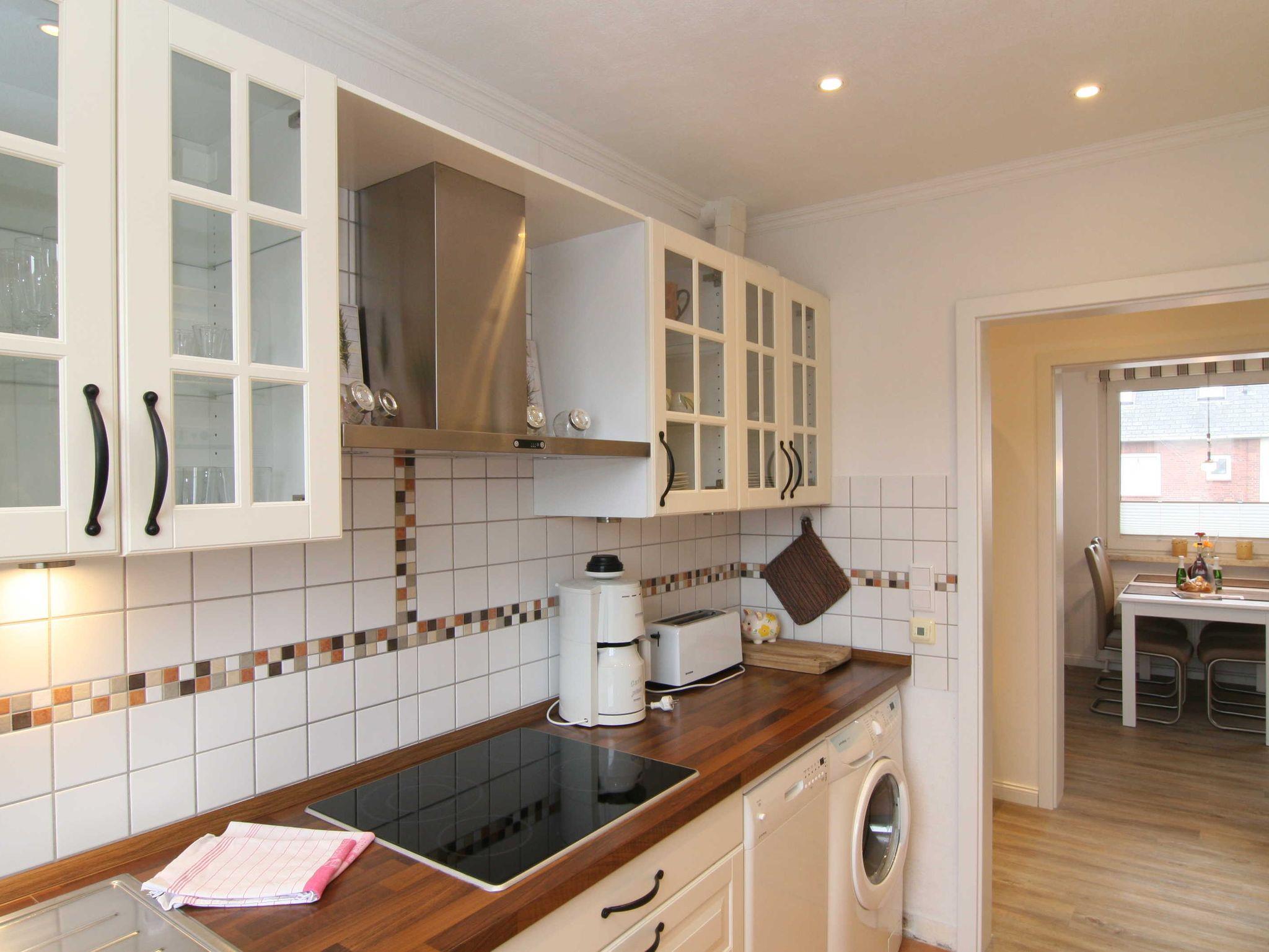 Die moderne, geschlossene Küche ist voll ausgestattet mit allem, was Sie für die Zubereitung der Mahlzeiten benötigen. Von einem Ceranherd über eine Spülmaschine bis hin zu einer Mikrowelle und Lebensmittelvorräten ? hier finden Sie alles, um ein köstliches Frühstück oder ein romantisches Dinner für zwei zu kreieren. Der angrenzende Essbereich mit einem großen Esstisch lädt zu gemeinsamen Mahlzeiten ein und bietet einen Ort für gesellige Abende.