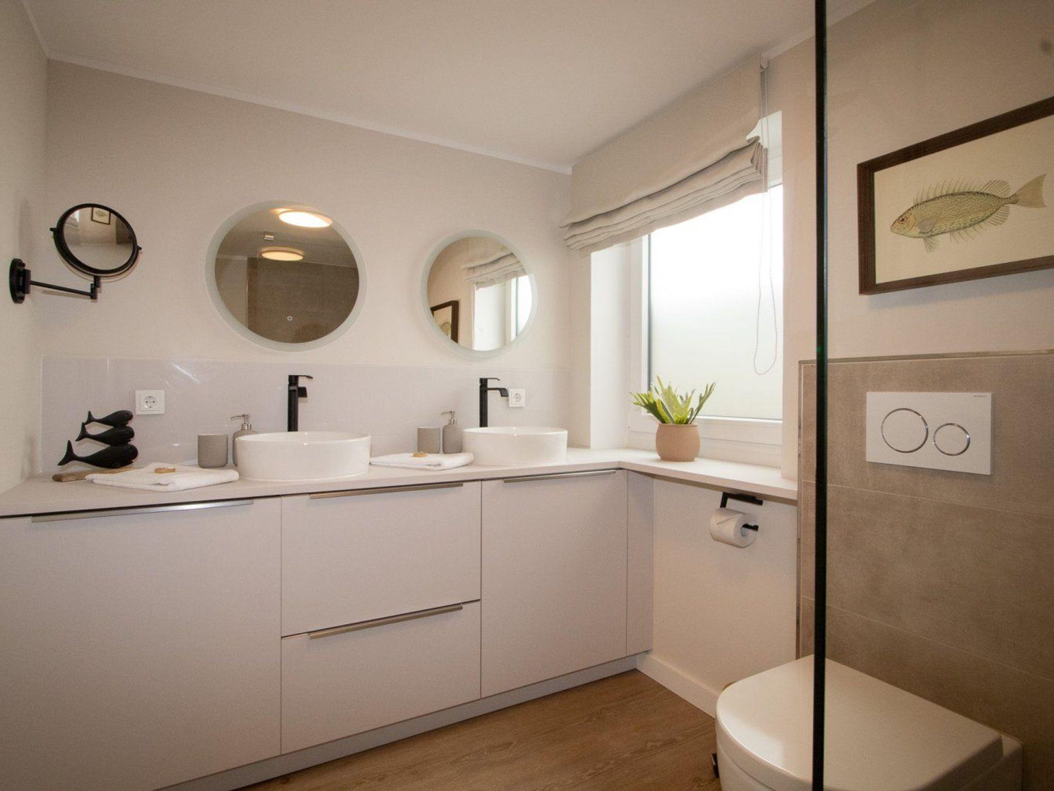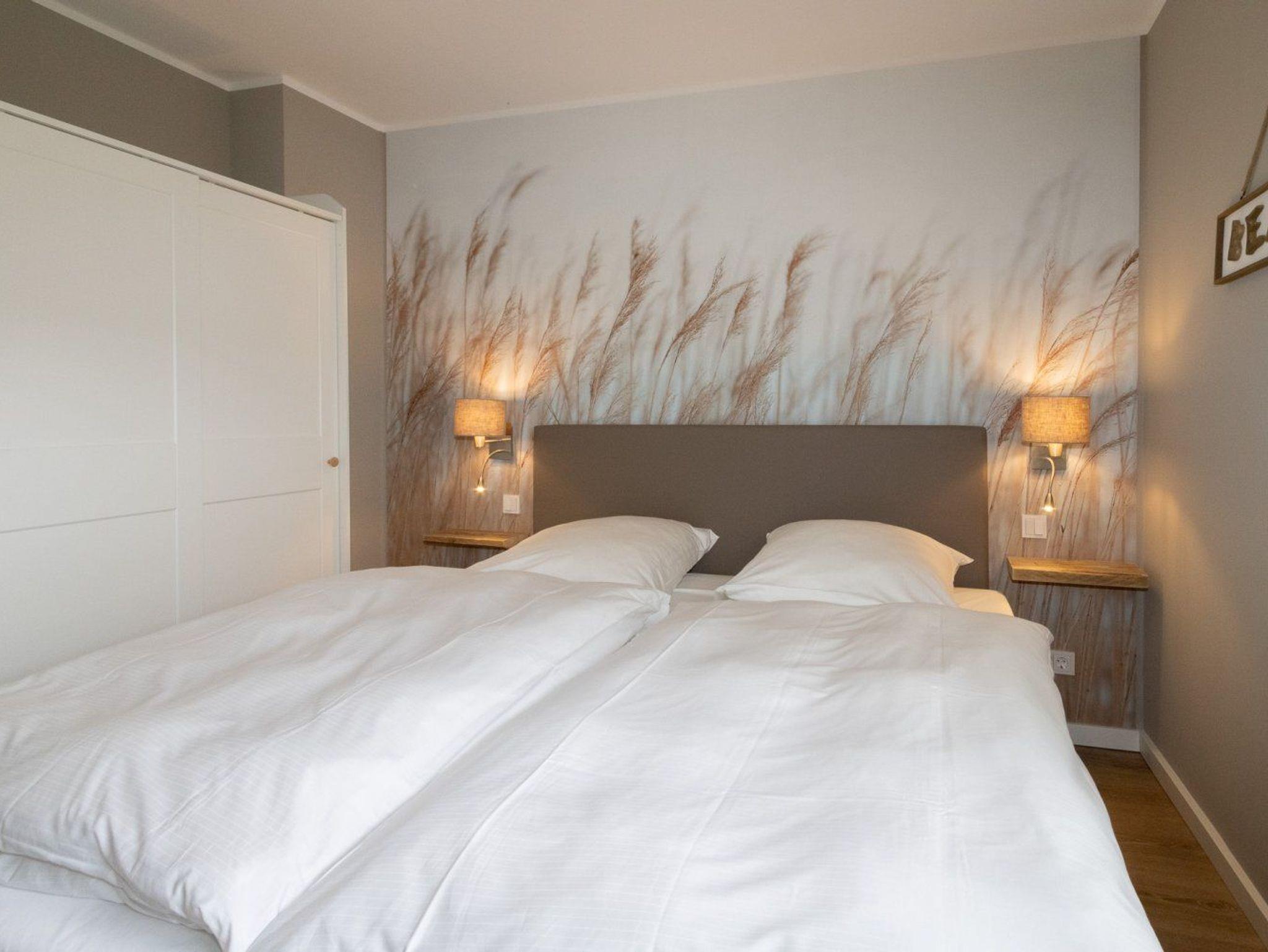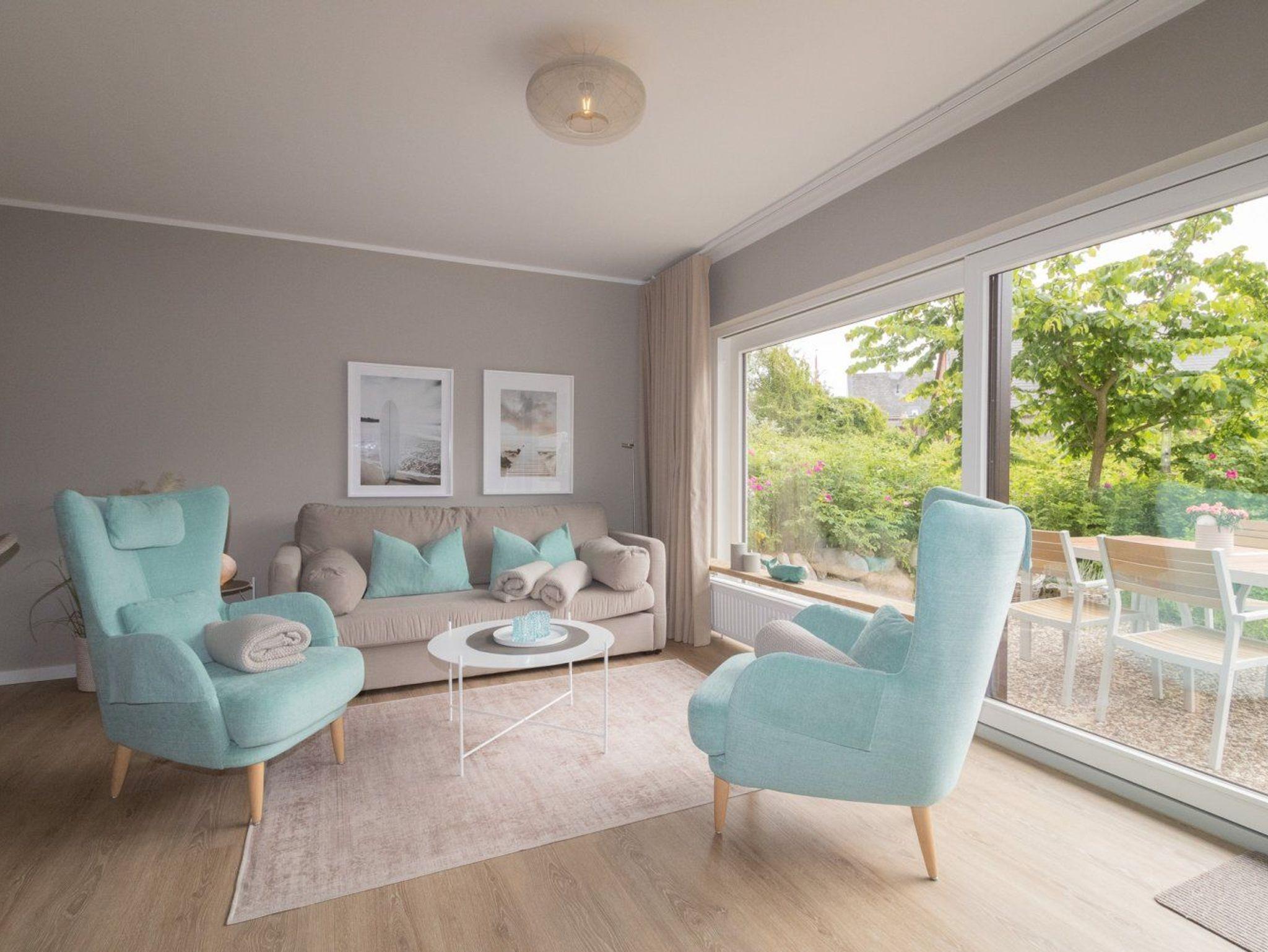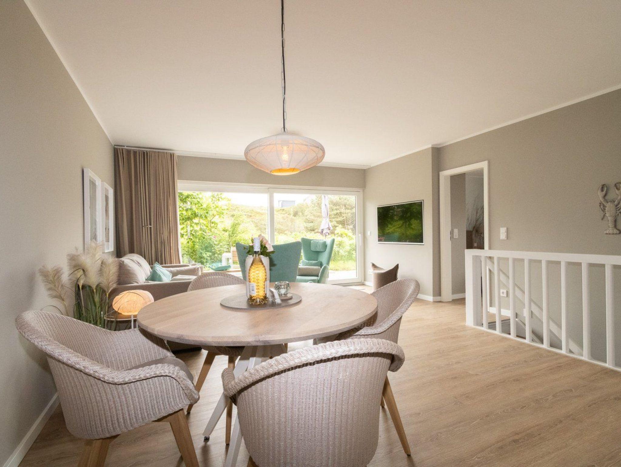 Die Ferienwohnung ist gemütlich eingerichtet und bietet Platz für 4 Personen. Im unteren Bereich der Wohnung finden Sie ein Schlafzimmer und das Duschbad. Angrenzend an den großzügigen Wohnbereich liegt die offene Küche, die modern für den alltäglichen Bedarf eingerichtet ist. Ein besonderes Highlight ist die große Terrasse, die zum Südwesten ausgerichtet ist und die viel Platz für einen sommerlichen Essplatz und einen Strandkorb bietet. Hier kann man die absolute Ruhe mit Blick ins Grüne genießen und die Seele baumeln lassen.