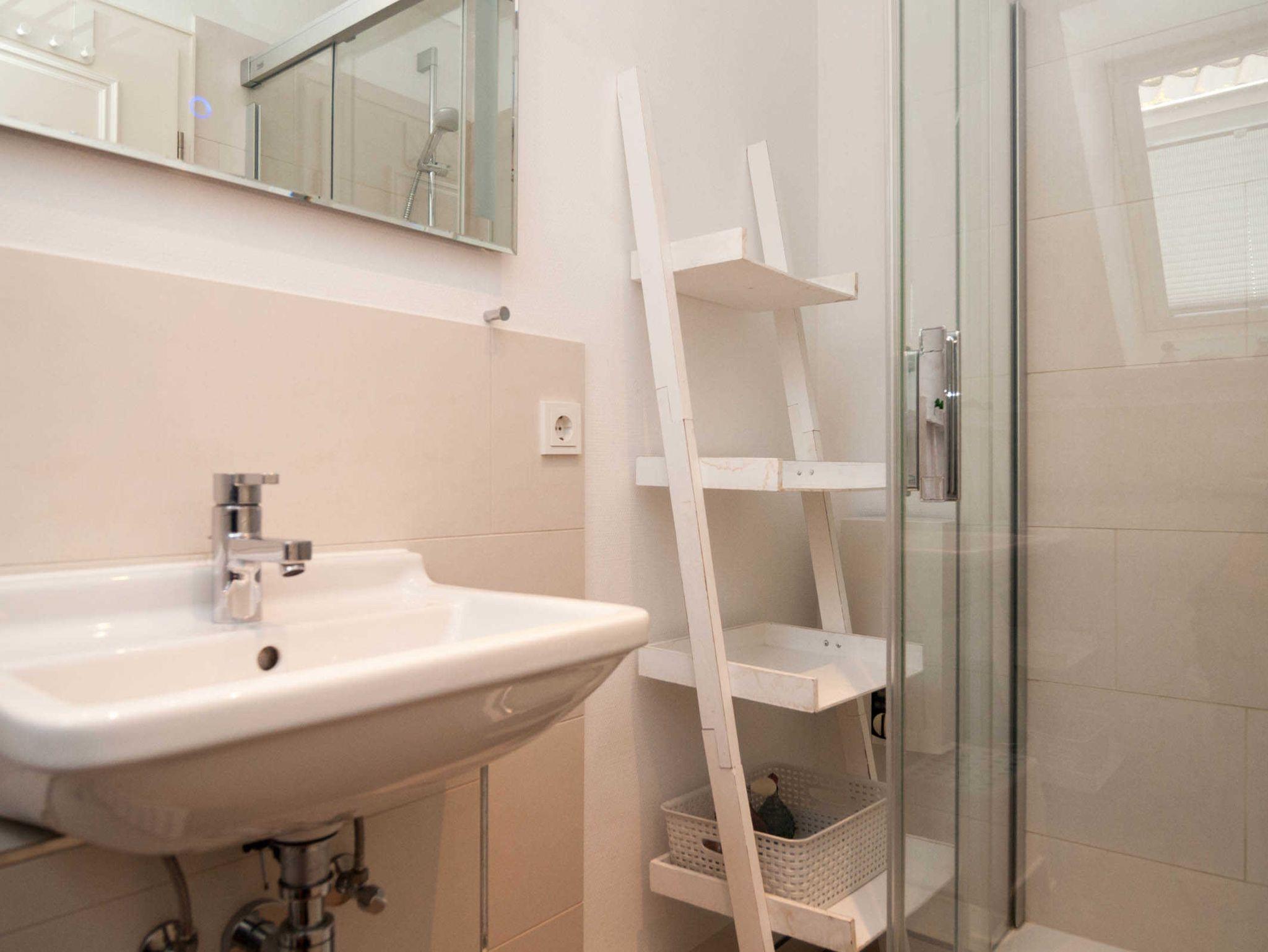 Desweiteren ist die Küche mit Wasserkocher, Toaster, Nespresso-Kapselmaschine, Milchschäumer, WMF Kaffeemaschine, Mixer, Pürierstab und Küchenwaage ausgestattet. Weiterhin stehen Ihnen in der Wohnung ein Föhn, Bügeleisen, Bügelbrett, Wäscheständer und Staubsauger zur Verfügung.