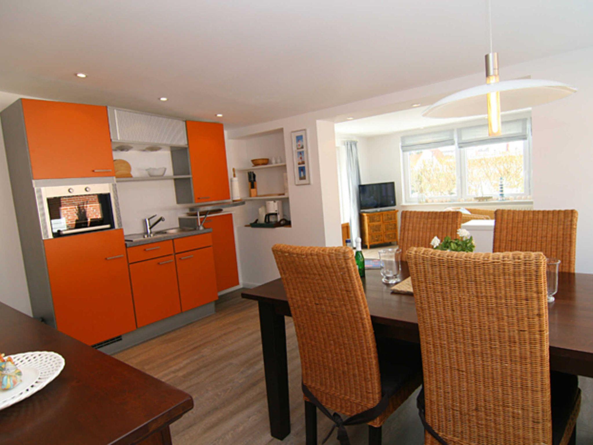 Gepflegtes 2 Zi.-Appartement im EG mit ca. 48 m², Wohnzimmer mit Doppelschlafcouch, Tisch und 2 Rattansessel, Sat-TV, Kompaktanlage mit CD-Player, Süd-/Westterrasse mit Bestuhlung, Schlafzimmer mit Doppelbett, separate Einbauküche mit Mikrowelle, Esstisch mit Rattanstühlen. Duschbad/WC. Das Appartment ist komplett neu mit Laminat verlegt worden.