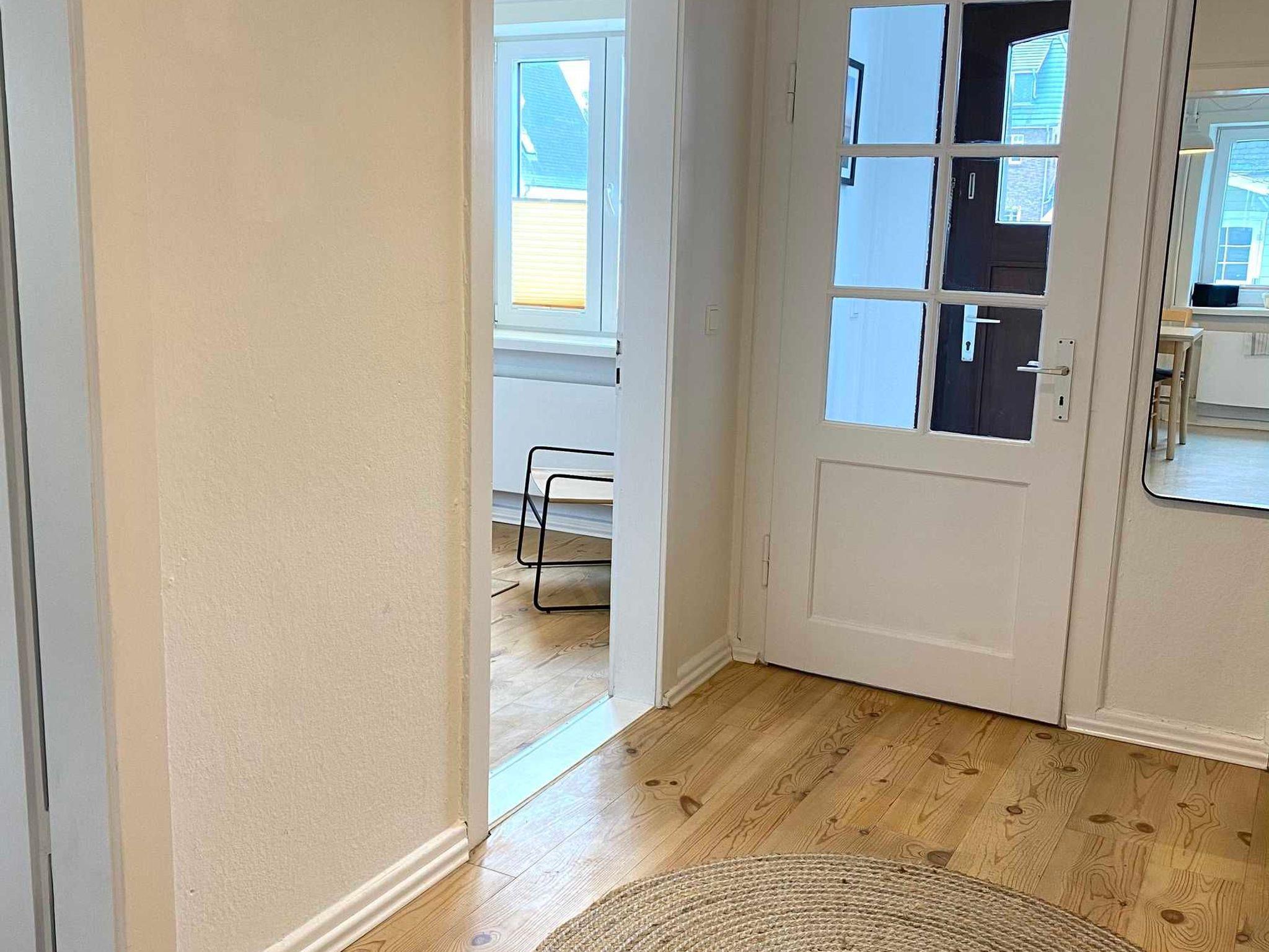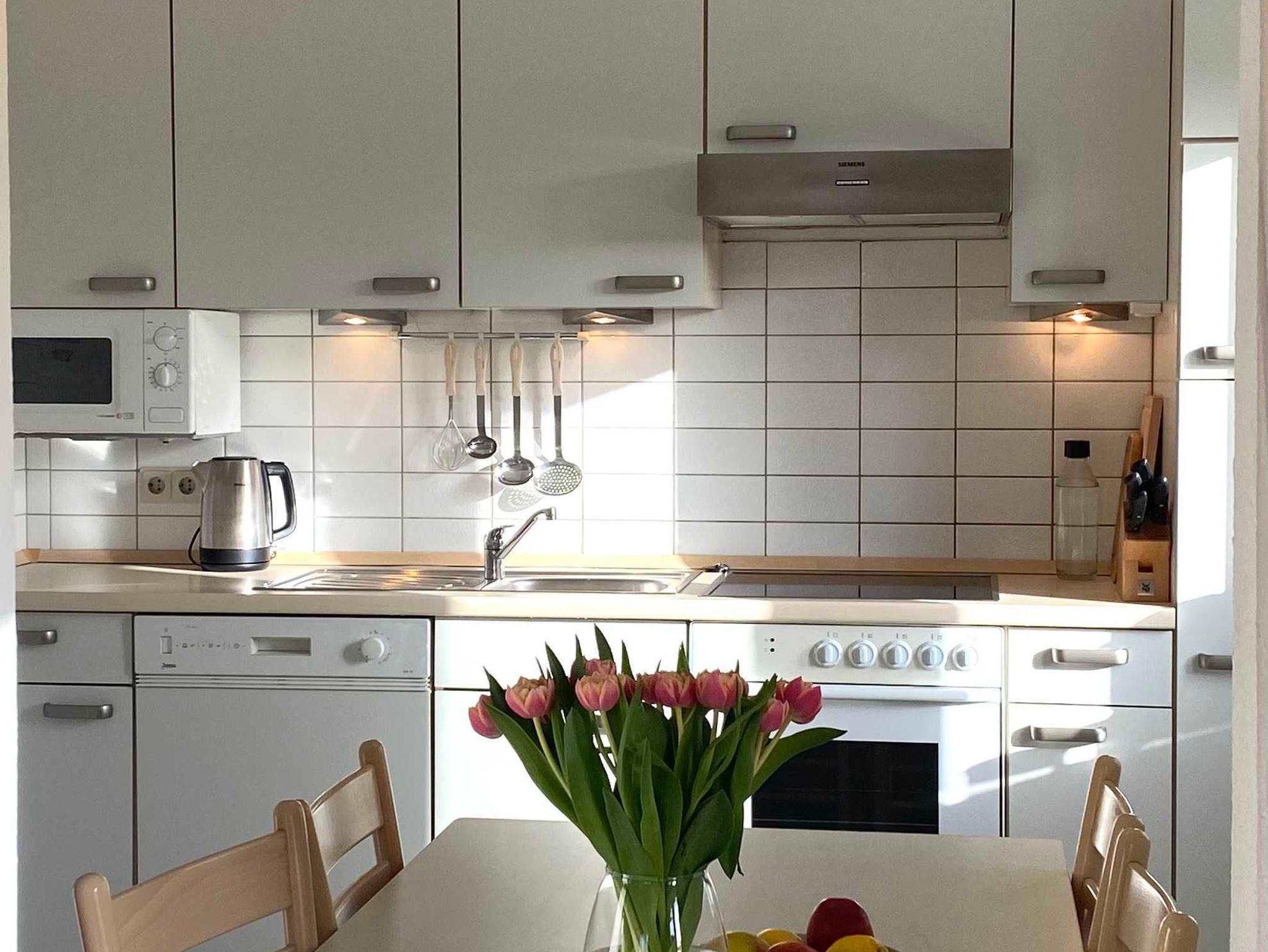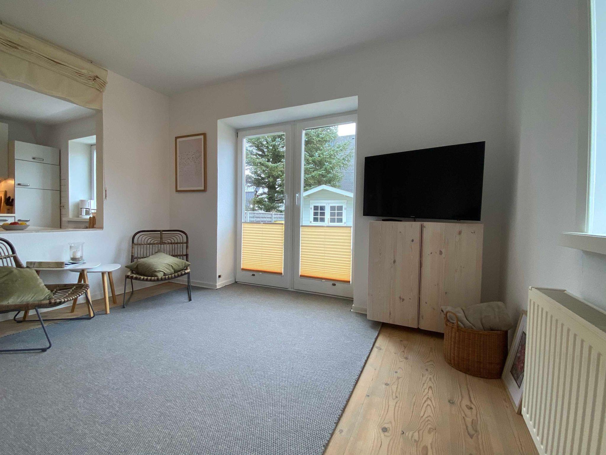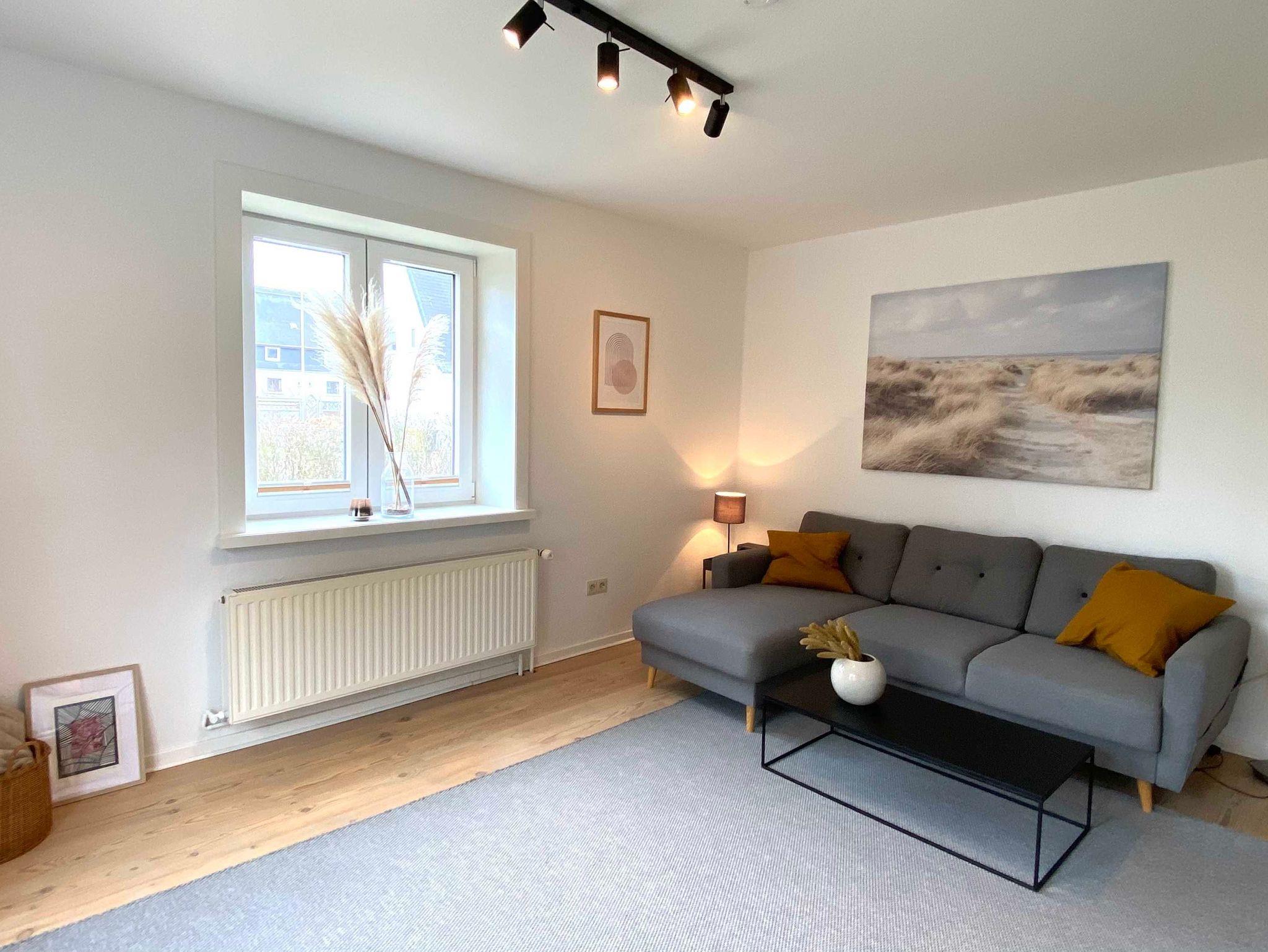 Das Ferienhaus ist modern eingerichtet. Im Erdgeschoss finden Sie den Wohnraum mit Öffnung (Durchreiche) zur Küche, eine komplett eingerichtete Küche, ein Schlafzimmer mit Doppelbett und ein Gäste-WC. Vom Wohnzimmer gelangen Sie in den Garten, vom dem aus der Leuchtturm zu sehen ist. Ein Frühstück können Sie bei morgendlicher Sonne im Freien geniessen.