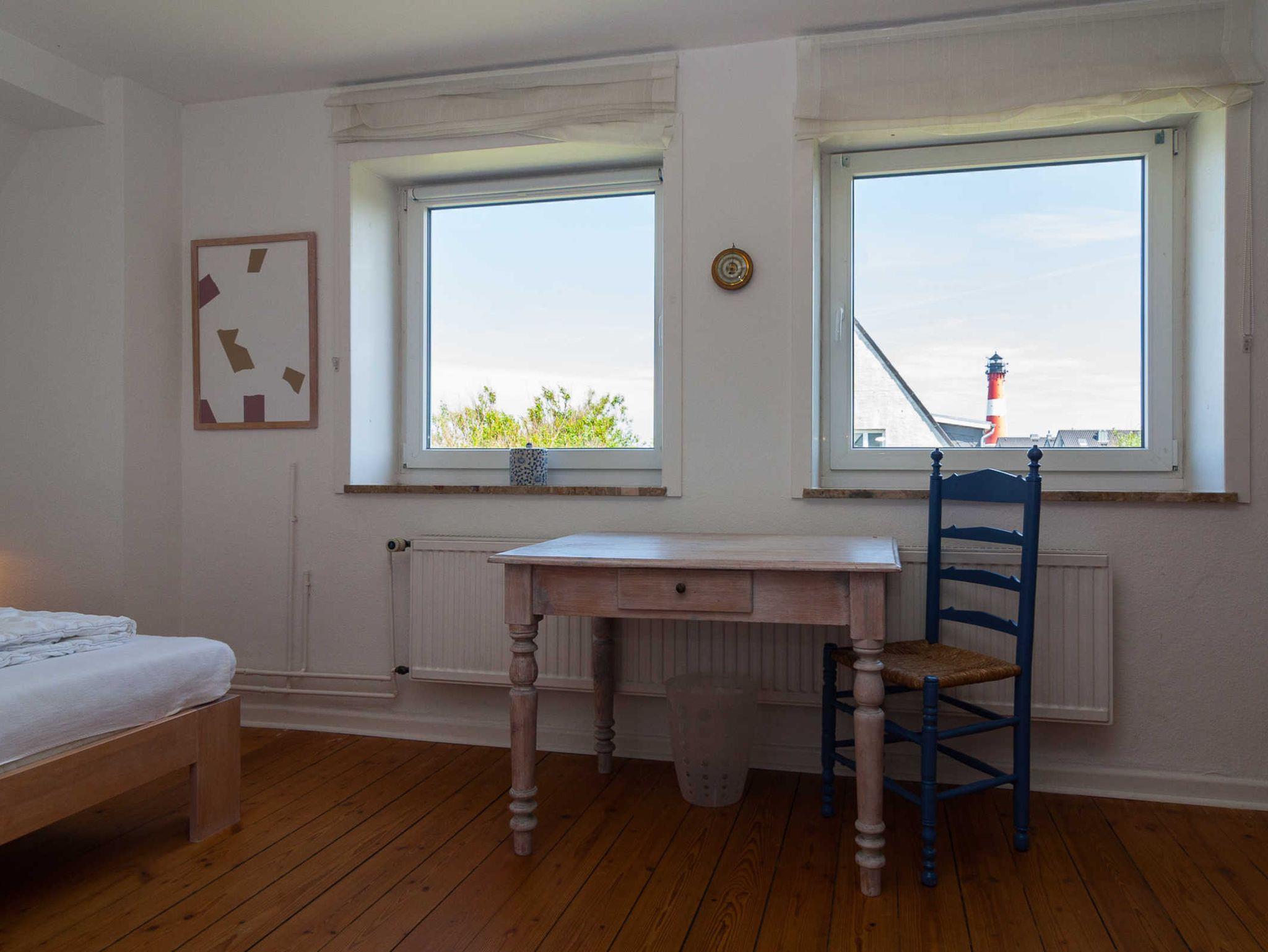 Stilvolle Doppelhaushälfte (ca. 90 qm) mitten in Hörnum und doch ruhig gelegen, oben auf dem Kamm einer Düne (Zugang über eine Treppe) , mit Blick auf Leuchtturm und Meer.