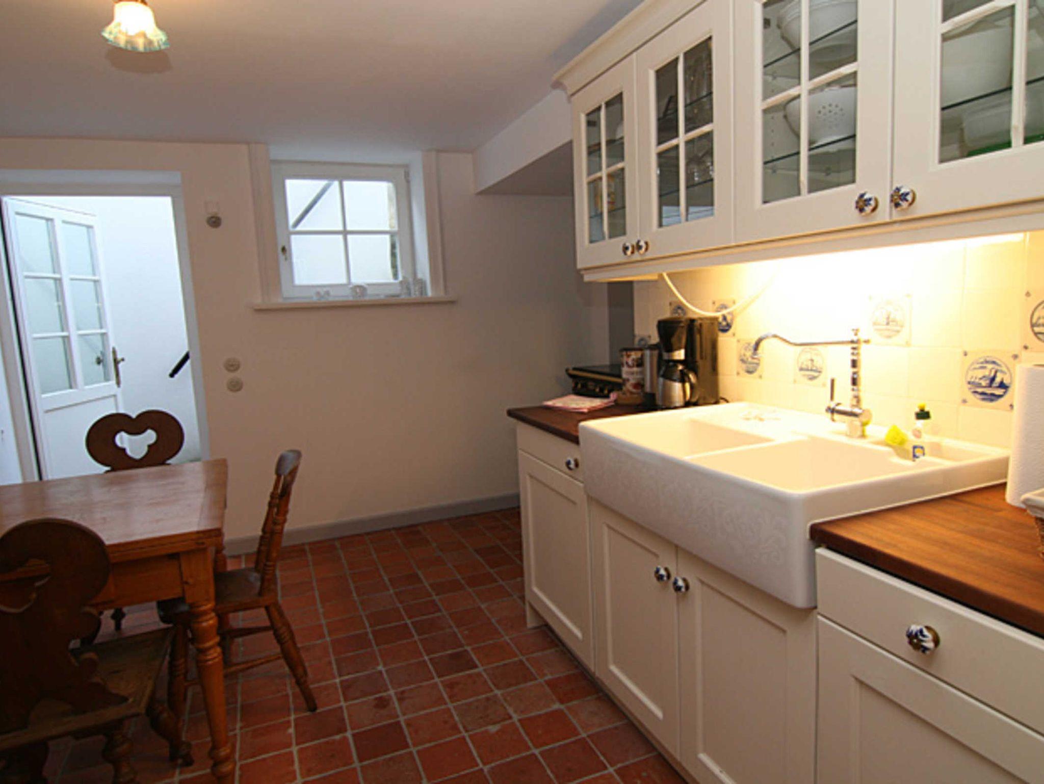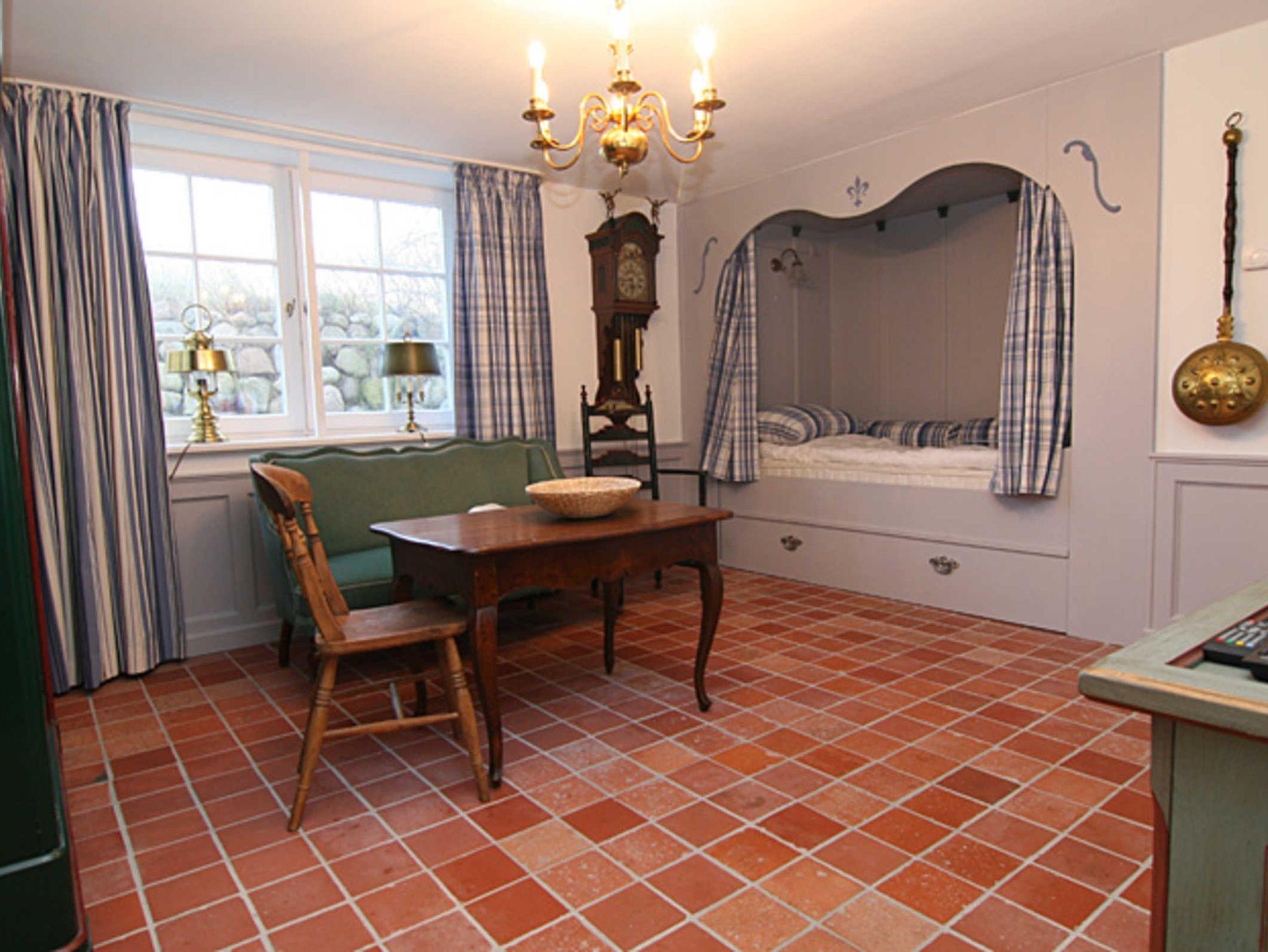 Vom hinteren Bereich des Hauses führt Ihre Wohnungstür direkt in die Küche mit Essecke. Von dort aus gelangen Sie in den Wohnraum mit Alkovenbett (1m x 2m) und Sat-TV. Desweiteren gehört ein Schlafzimmer mit einem Doppelbett aus dem 18. Jahrhundert (1,40m x 1,95m) und ein auf die Antiquitäten abgestimmtes Duschbad mit zur Ausstattung. Hier fühlen Sie sich zurückversetzt in die Zeit der alten Friesen.