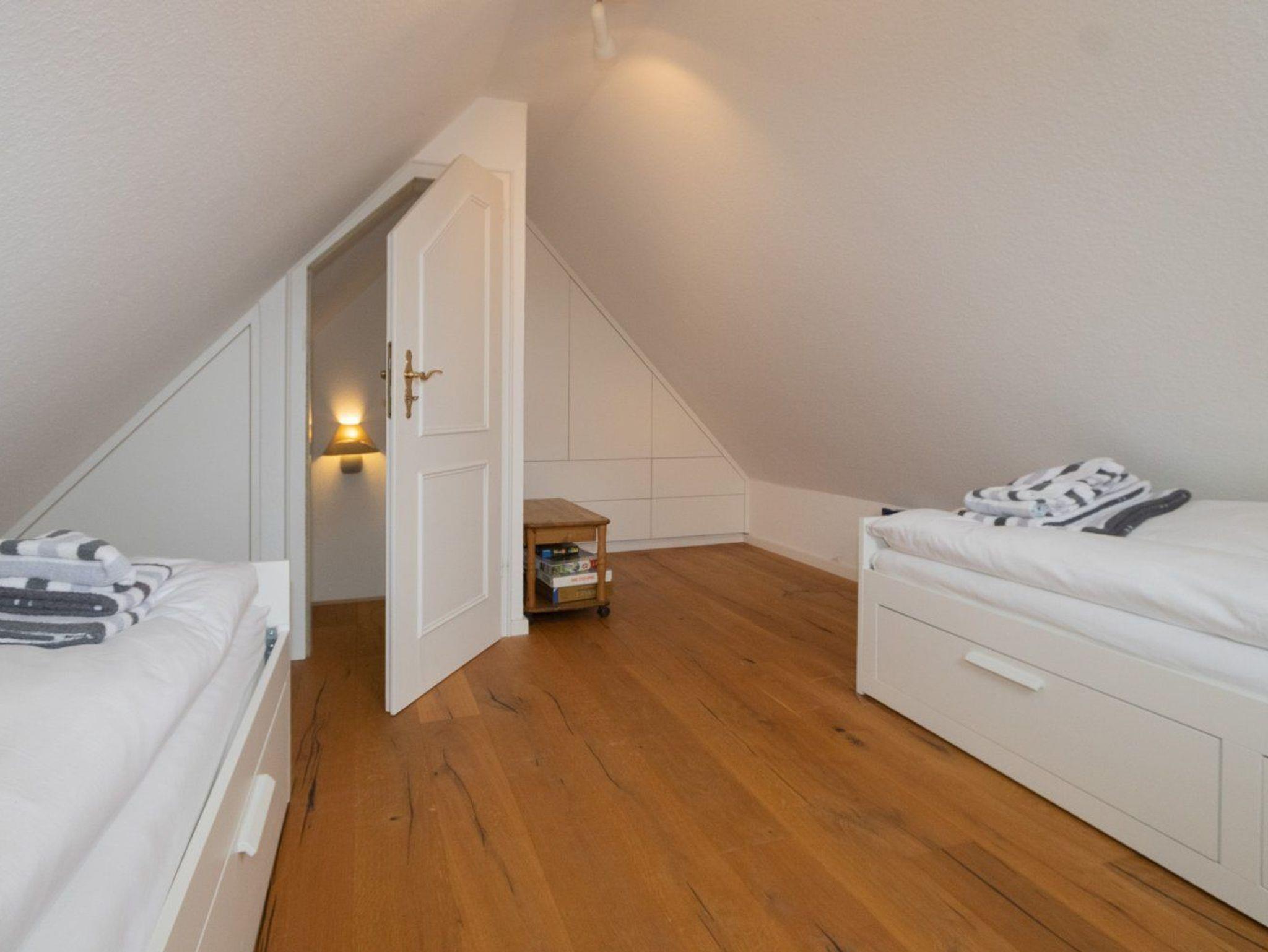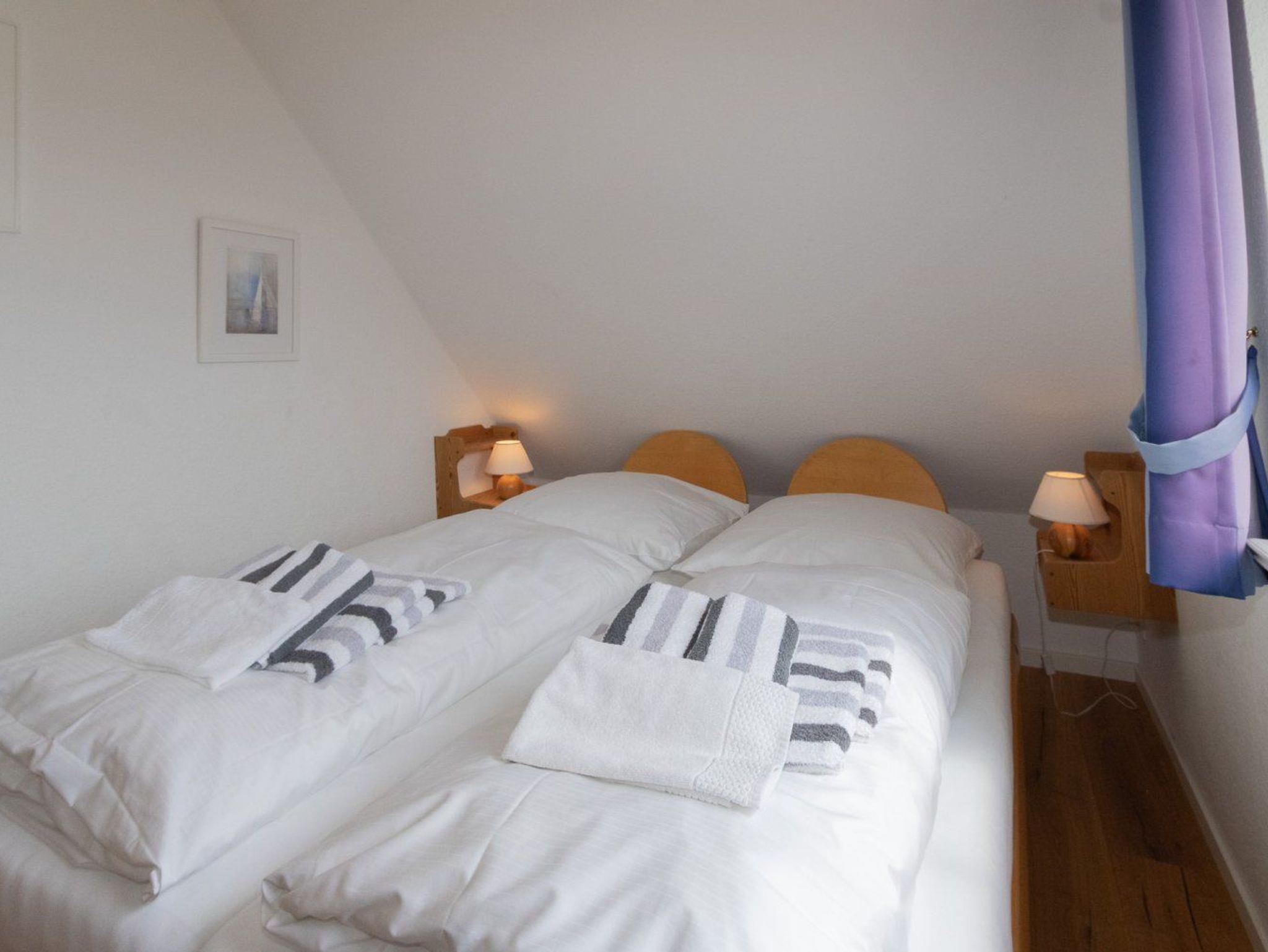 Die Ferienwohnung ist hell und modern eingerichtet und bietet mit seinen 2 Schlafzimmern Platz für bis zu 4 Personen. Ein Schlafzimmer ist mit einem Doppelbett (1.OG) und das 2.Schlafzimmer mit 2 Einzelbetten ausgestattet. Vom Wohnzimmer aus haben Sie direkten Zugang zum Süd - Balkon um herrlich die Sonne genießen zu können
