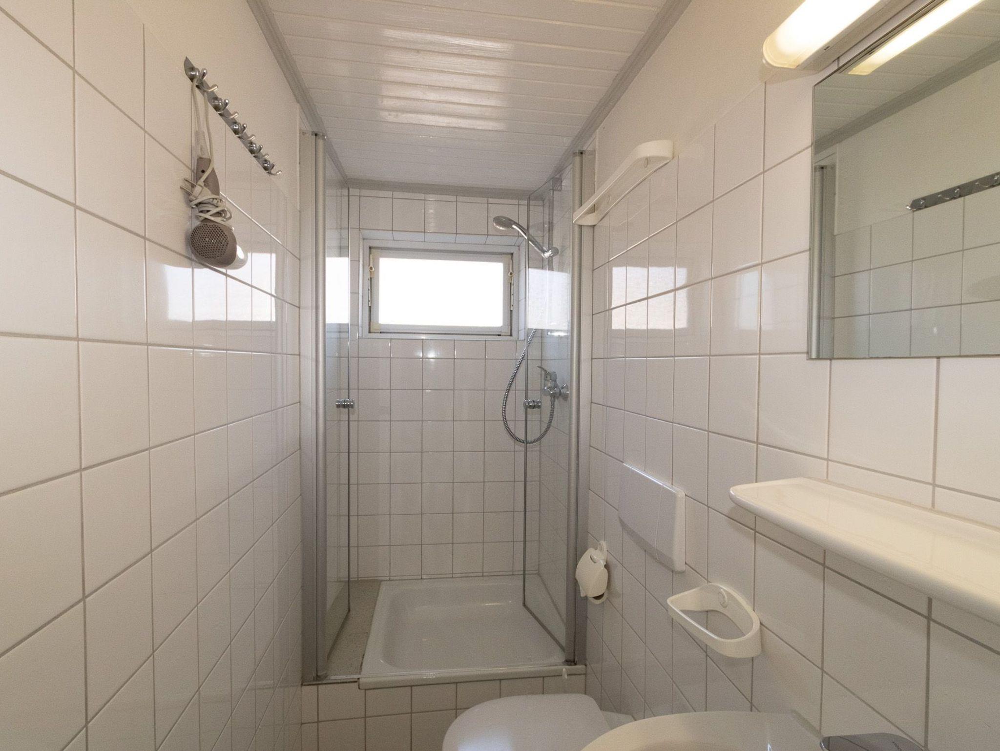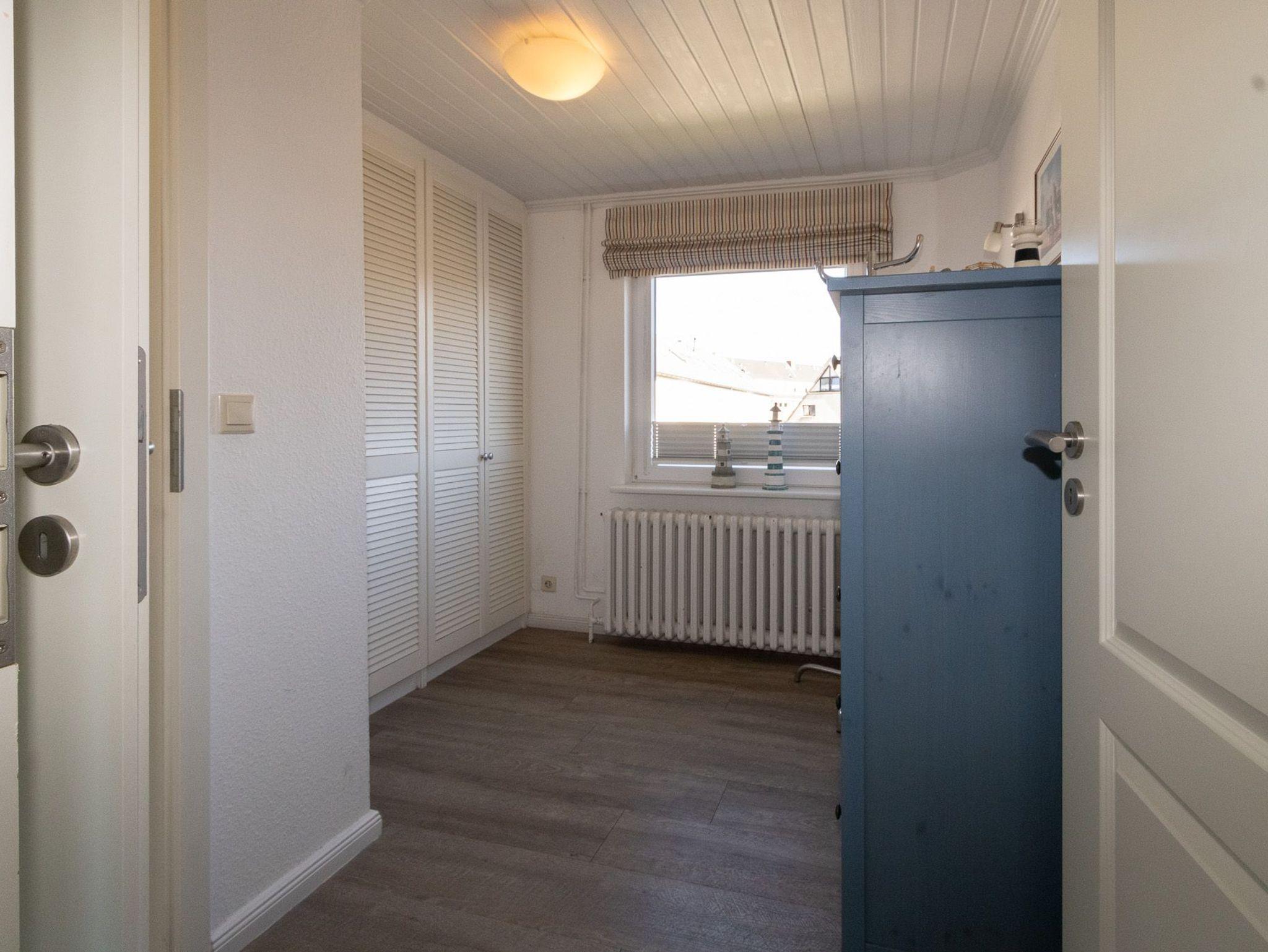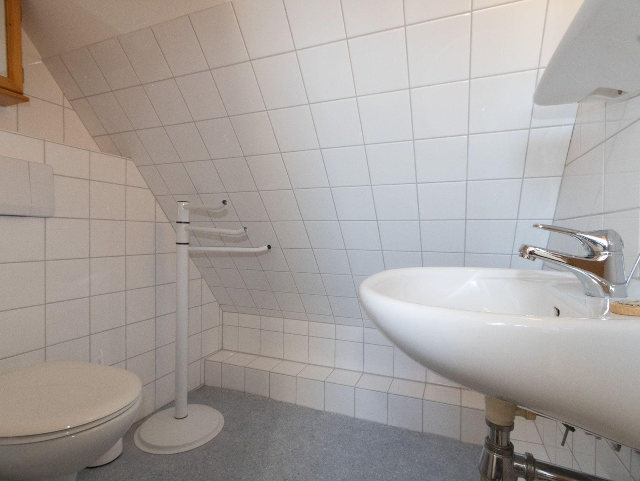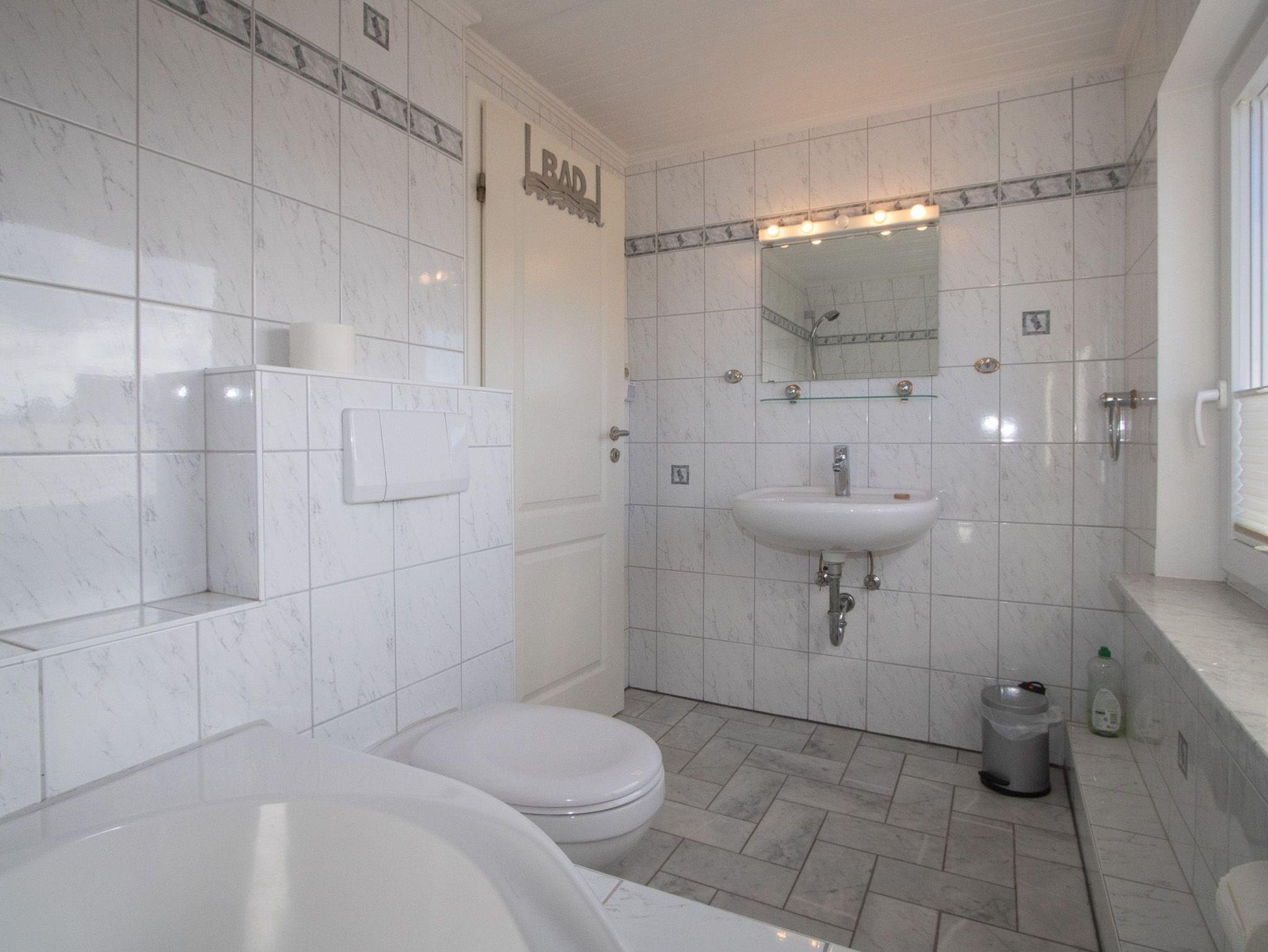 Gepflegtes 5 Zi.-Appartement über OG/DG mit ca. 100 m²; im OG: 1 Wohnzimmer mit Schlafcouch, Tisch, Sidebord und Sat-TV; 1 Schlafzimmer mit Doppelbett und Sat-TV, Ankleidezimmer, Duschbad/WC; 1 Wohnzimmer mit Doppelschlafcouch, Tisch, Couch und Sat-TV; 1 Badezimmer mit Eckbadewanne und WC; Flur mit Gardrobe; separate Einbauküche mit Ceranfeld, Backofen, Mikrowelle, Geschirrspüler, Essplatz für 8 Personen, Radio mit CD-Player, Zugang zur Ost-/Westterrasse mit Bestuhlung; steile Treppe ins DG: 1 Duschbad; 1 separates WC; 1 Schlafzimmer mit Doppelbett und Sat-TV; ein Schlafzimmer mit zwei Einzelbetten.