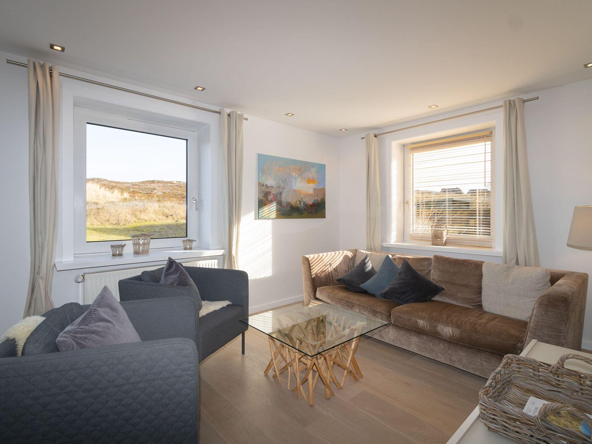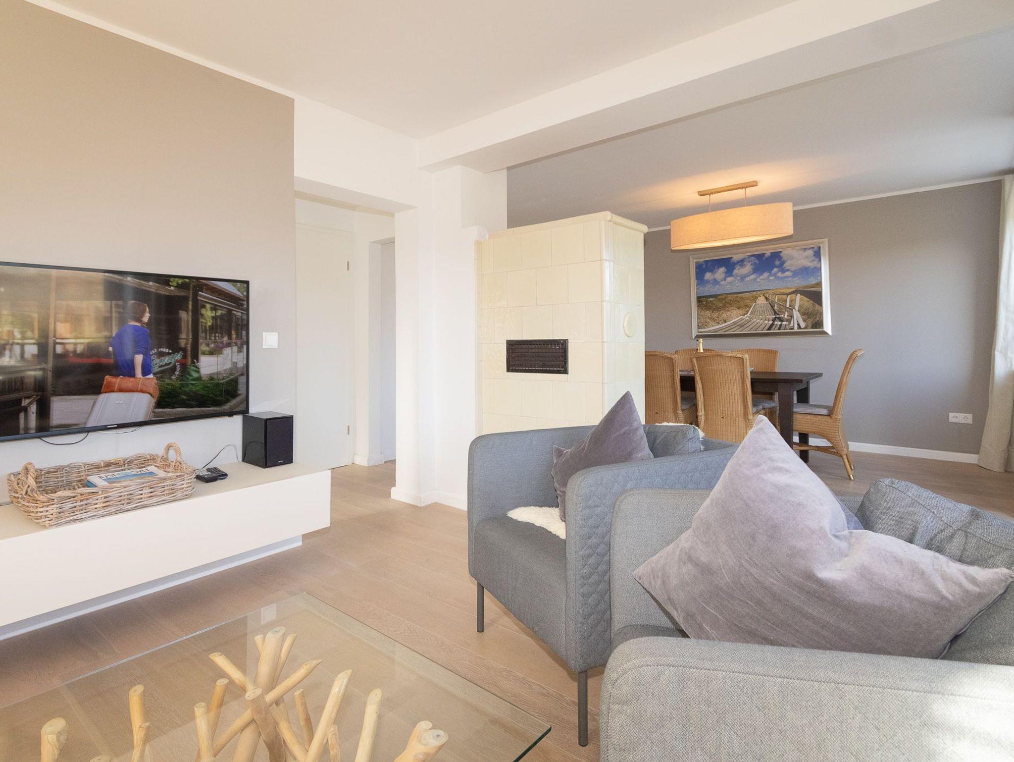 Das 140 qm große Haus verfügt über 3 Schlafzimmer mit Boxspringbetten, 2 Bäder mit Dusche und Badewanne, ein separates Gäste WC, sowie einen großzügigen Sauna- und Wellnessbereich mit Regendusche. Die exklusive Küche ist mit edlen Materialien, hochwertigen Geräten und allem Zubehör ausgestattet. Sie liegt offen zum Ess- und Wohnzimmer mit dem Original Kachelofen. Die Wohn- und Schlafbereiche sind mit gekalkten Eichendielen ausgelegt, die Eingangs- und Nassbereiche mit grauem Feinstein. Flatscreen TV im Wohnbereich gehören ebenso zur technischen Ausstattung wie Blue Ray-DVD-Player, CD, Receiver und ein Highspeed-W-Lan Anschluss.
