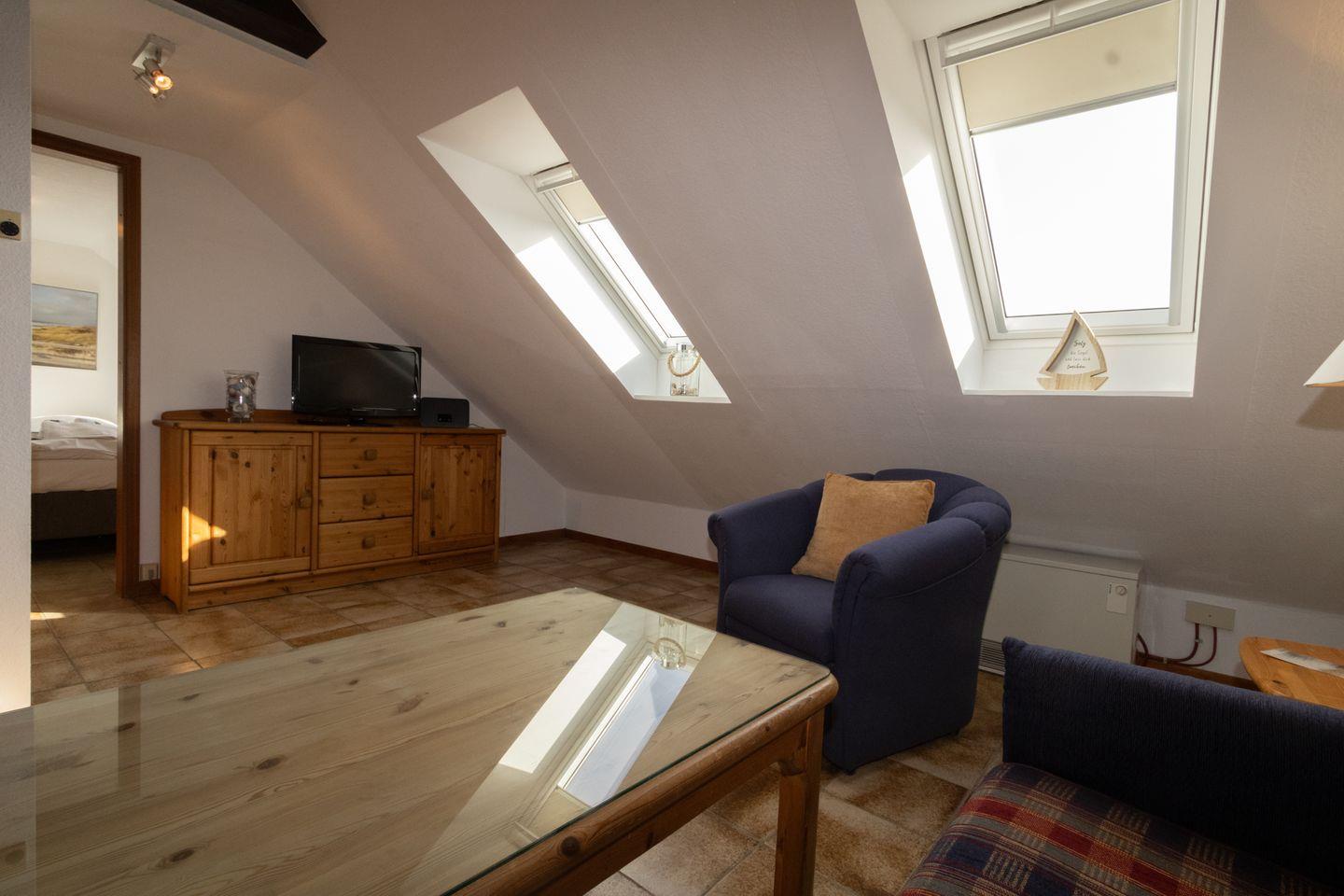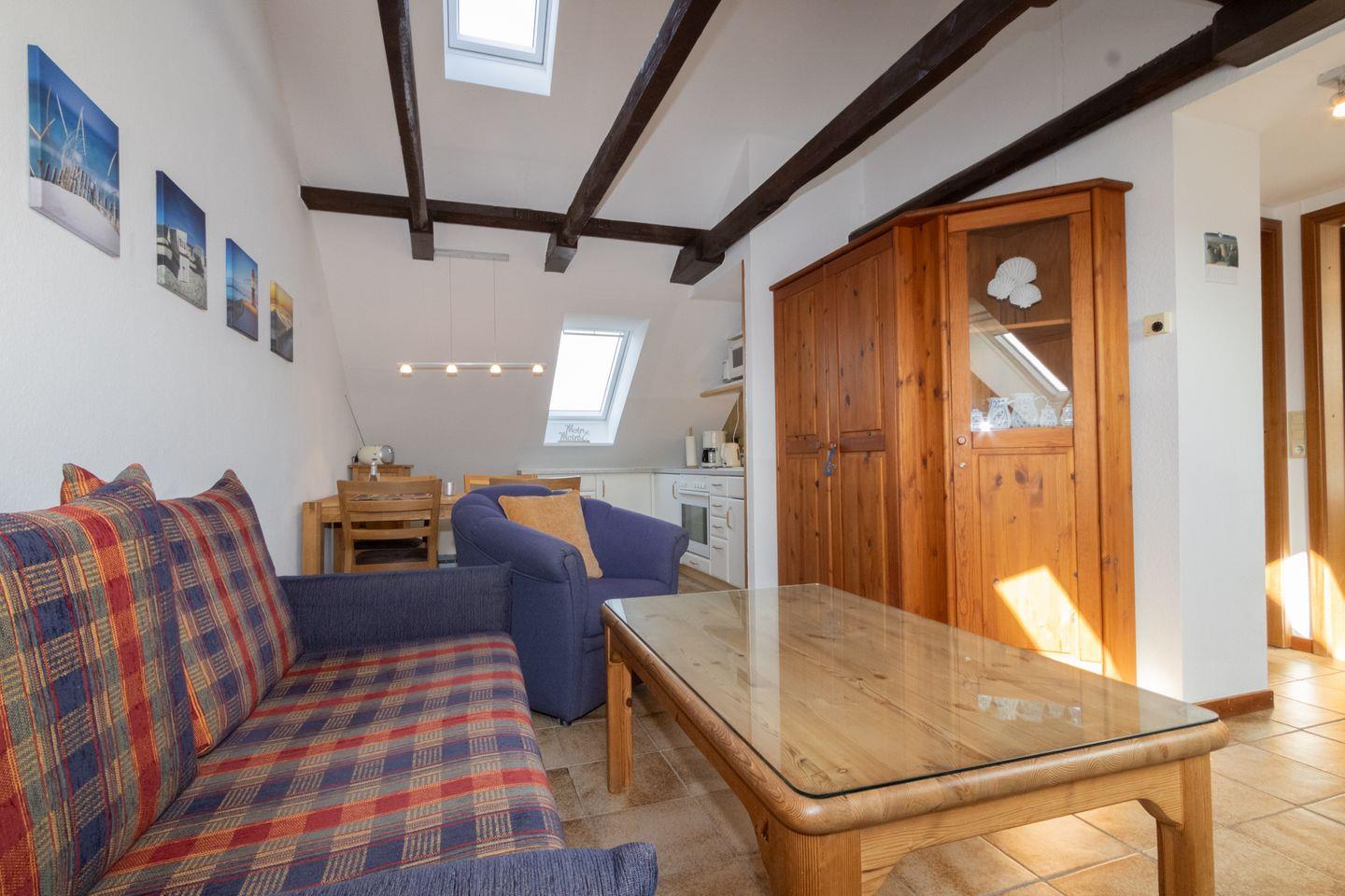 Diese gemütliche Dachgeschoßwohnung ist für bis zu 3 Personen (Kind bis 12 Jahre) geeignet und befindet sich im Haus Möwe.