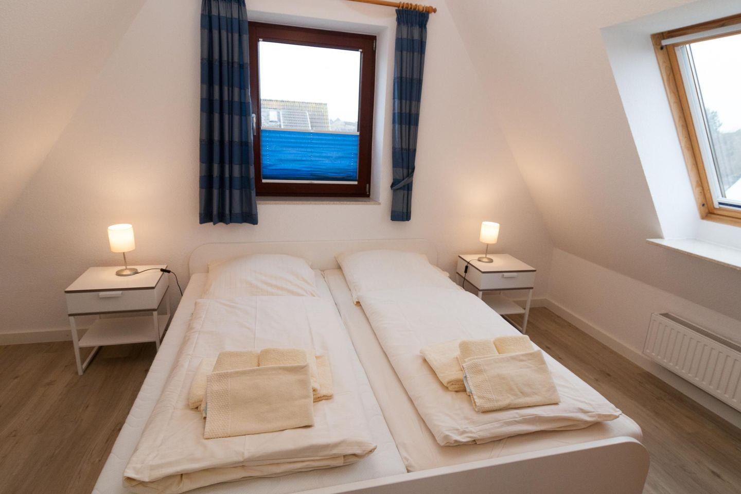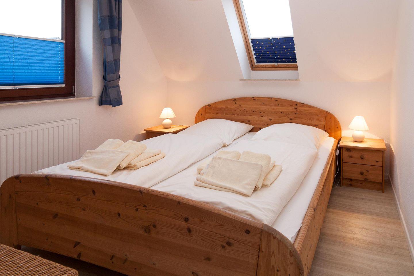 Großzügige 4-Zimmer-Ferienwohnung in einem Wohnhaus mit 2 Einheiten. Die Wohnung ist für 6 Personen geeignet. Vom geräumigen Wohnraum mit offener Treppe zum Obergeschoss und angrenzender Küche mit großem Esstisch gelangen Sie auf den Ostbalkon, der komplett mit Gartenmöbeln ausgestattet ist.