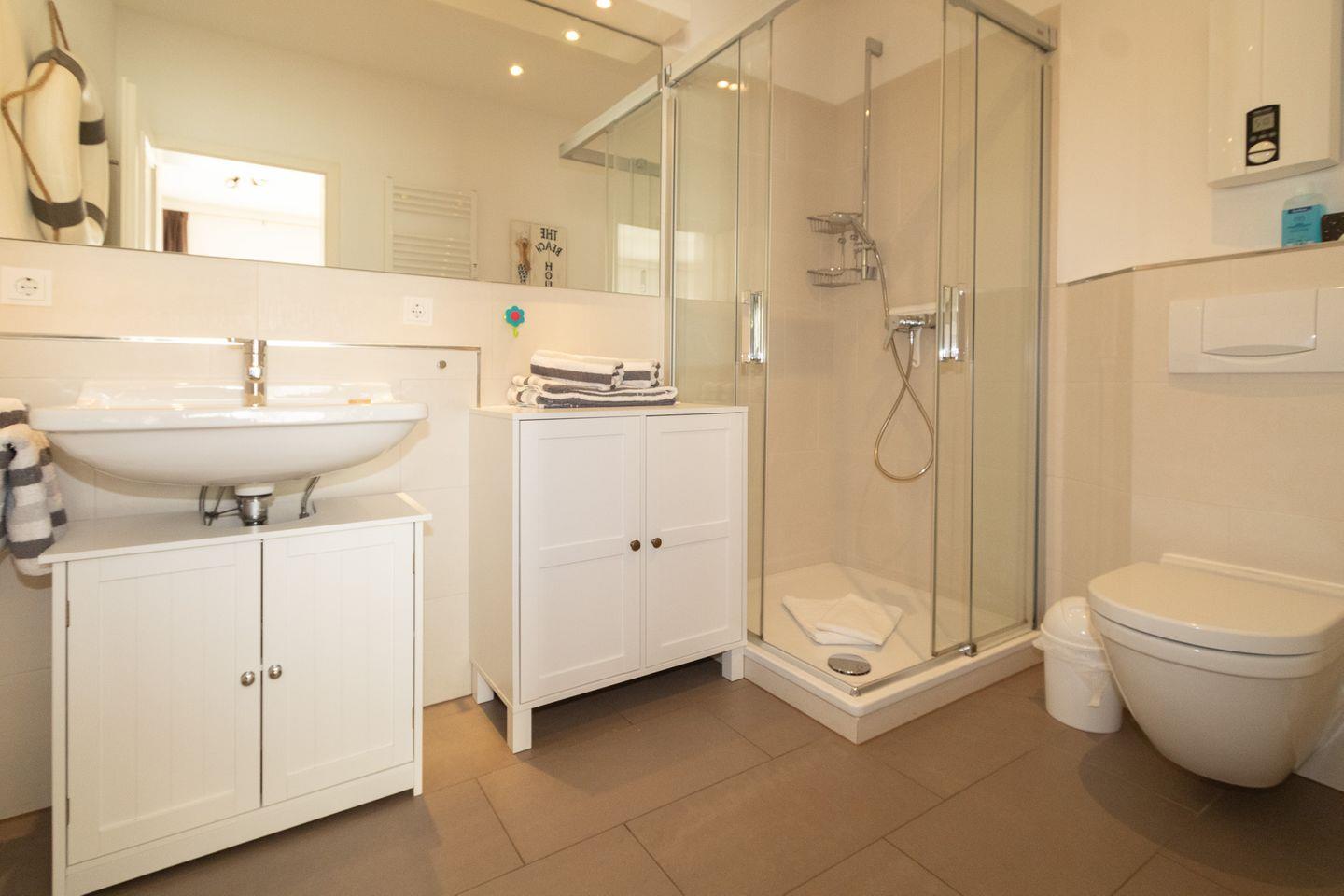 Die hell eingerichtete Ferienwohnung hat einen Wohn-/Schlafraum mit einer Schlafcouch (für 3. und 4.Person) und einen Esstisch sowie einen Fernseher für die gemütlichen Abende. In der offenen Einbauküche mit Geschirrspüler können Sie nach Herzenslust kochen. Das seperate Schlafzimmer befindet sich im hinteren Teil der Ferienwohnung. Nachttische, ein Regalschrank, ein Vitrinenschrank und ein Kleiderschrank bieten ausreichend Stauraum. Im neuen Duschbad steht Ihnen eine kostenfreie Waschmaschine zur Verfügung.