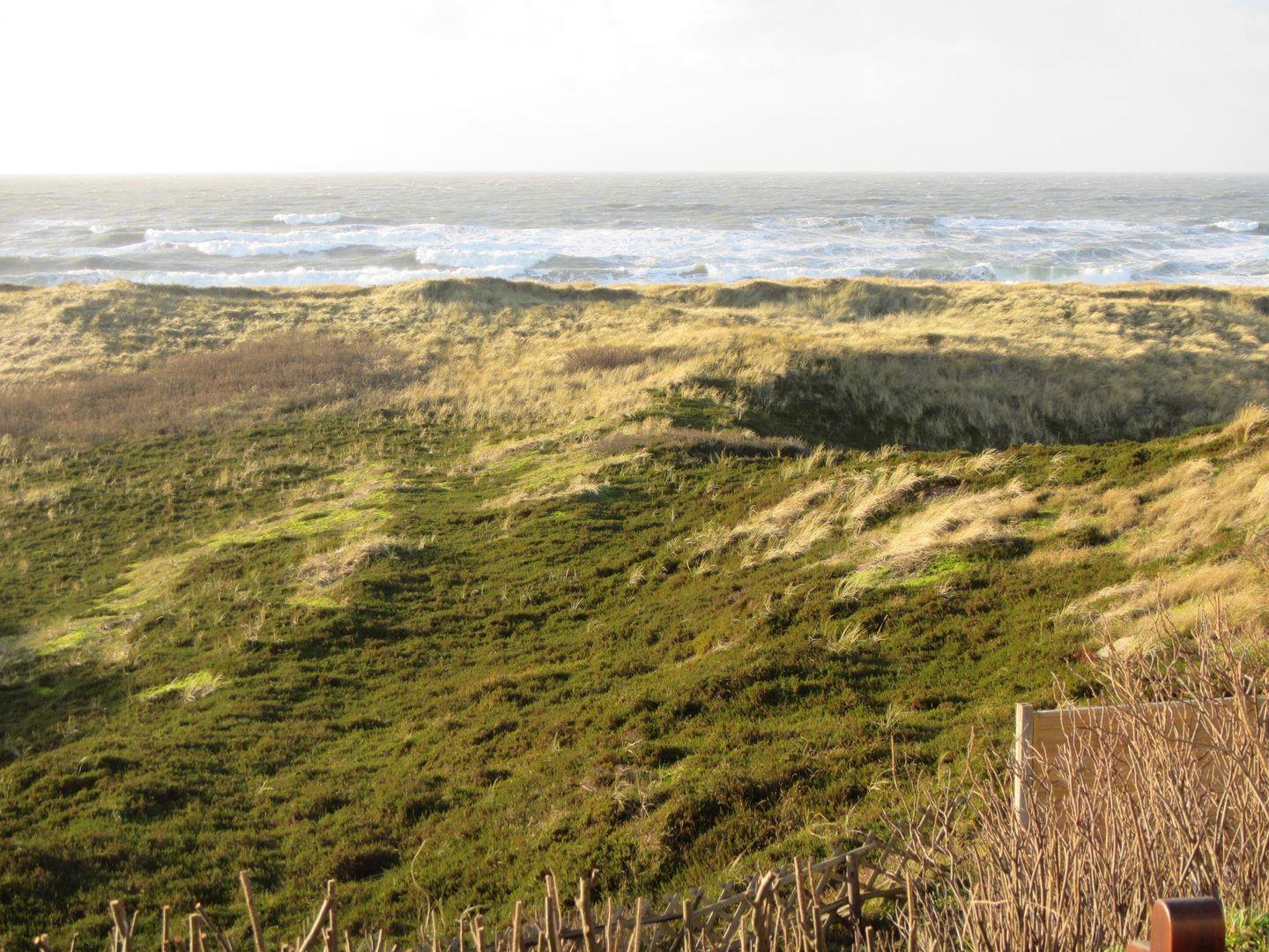 Gepflegte, helle, gemütliche 2-Zi.-Terrassenwohnung auf hoher Küstendüne mit großartigem Panorama-Nordseeblick. Nur wenige Schritte zum Brandungsstrand und zur Bushaltestelle „Hörnum-Nord“. Haus am Ende einer Sackgasse, Wohnung daher absolut ruhig bis auf das (gelegentliche) Raunen des Windes und Rauschen des Meeres.