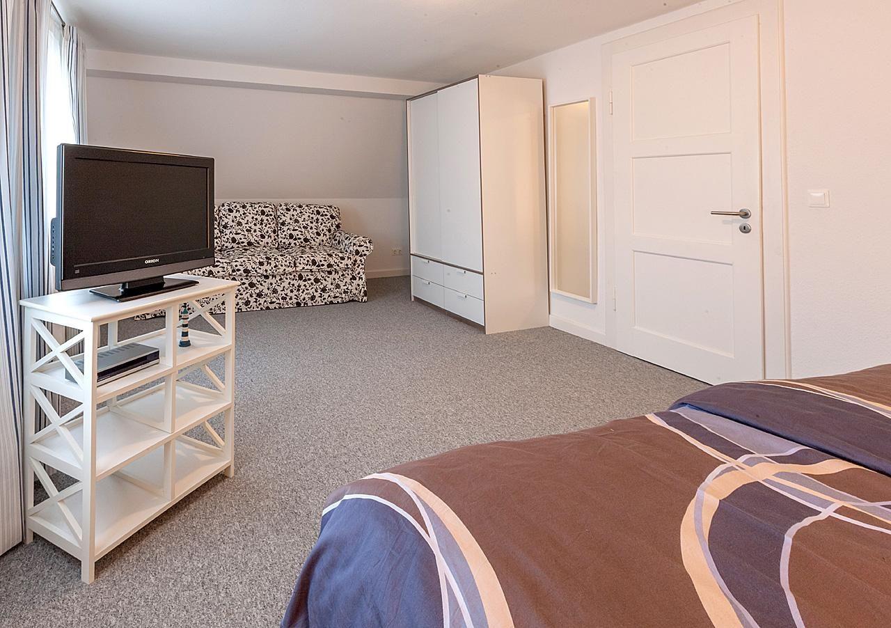 Das Ferienhaus ist modern und hell eingerichtet. Es verfügt über 2 Schlafzimmer mit Doppelbetten, 1 Schlafzimmer mit Einzelbett und im Wohnbereich sowie im Schlafzimmer im 1. OG befindet sich jeweils eine Schlafcouch. Im Erdgeschoss finden Sie den geräumigen Wohn-/Essraum, eines der Doppelschlafzimmer, eine komplett eingerichtete separate Küche und ein Gäste-WC. Vom Essbereich gelangen Sie in den Garten, vom dem aus der Leuchtturm zu sehen ist. Ein Frühstück können Sie bei morgendlicher Sonne im Freien geniessen.