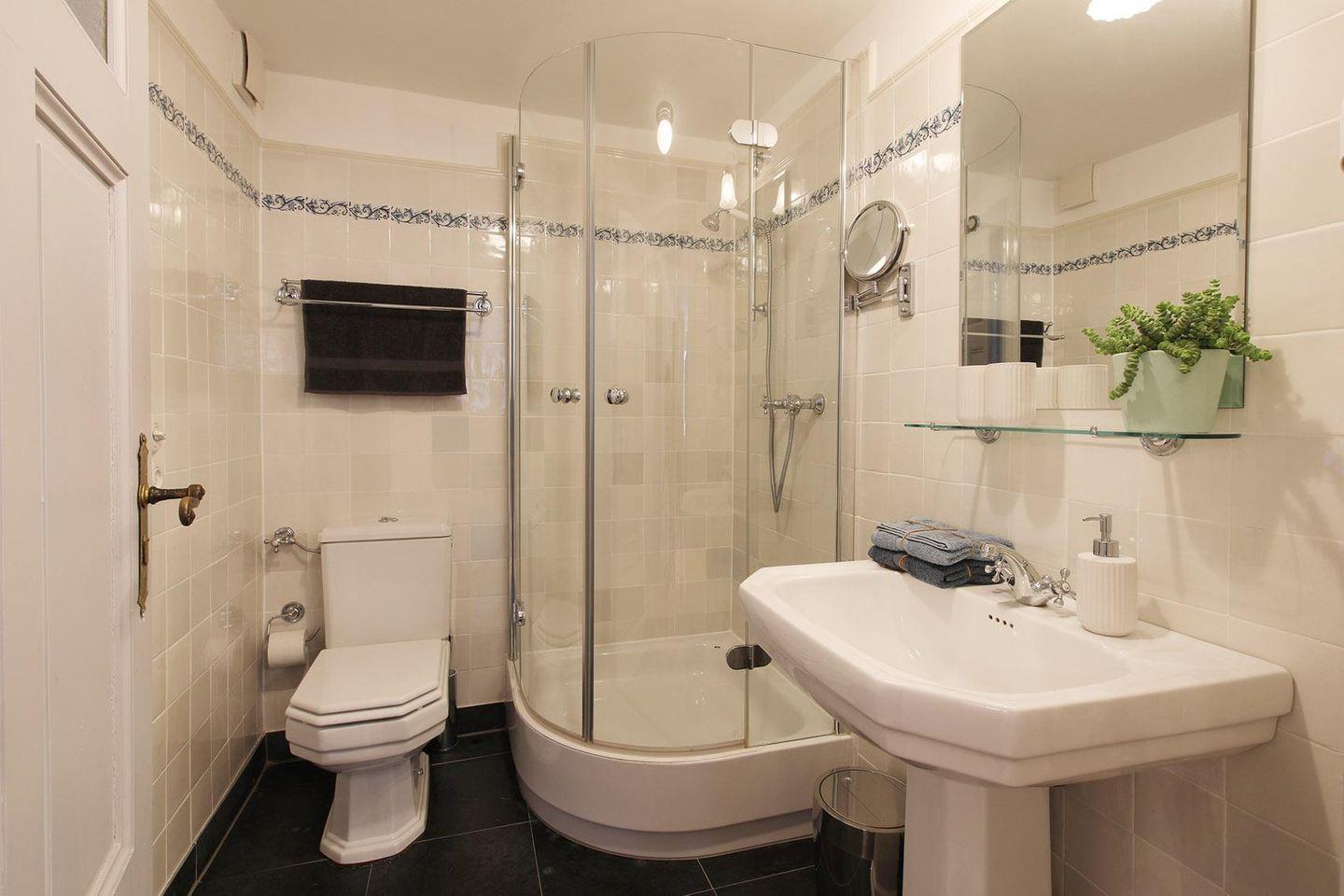 Über den hinteren Bereich des Hauses gelangen Sie in den im Souterrain liegende Wohnung. Direkt von der Haustür aus, geht man in die Küche mit Essecke. Von dort aus gelangen Sie in das Wohnzimmer mit Alkovenbett (1m x 2m) und Sat-TV (Flachbildschirm). Direkt neben dem Wohnzimmer liegt das Schlafzimmer mit angrendem Duschbad.
