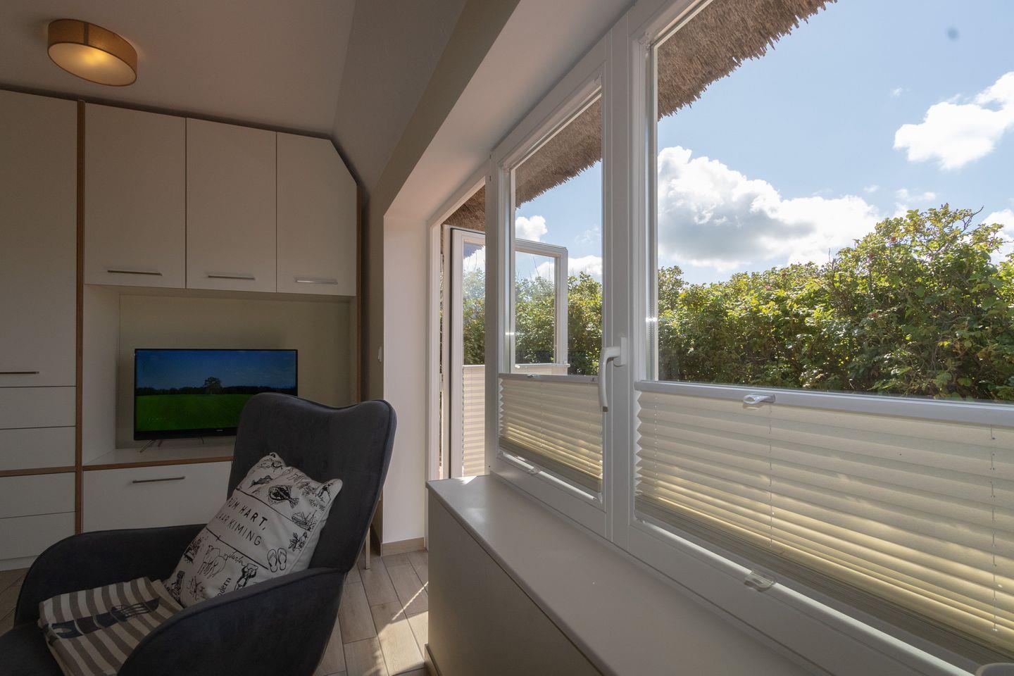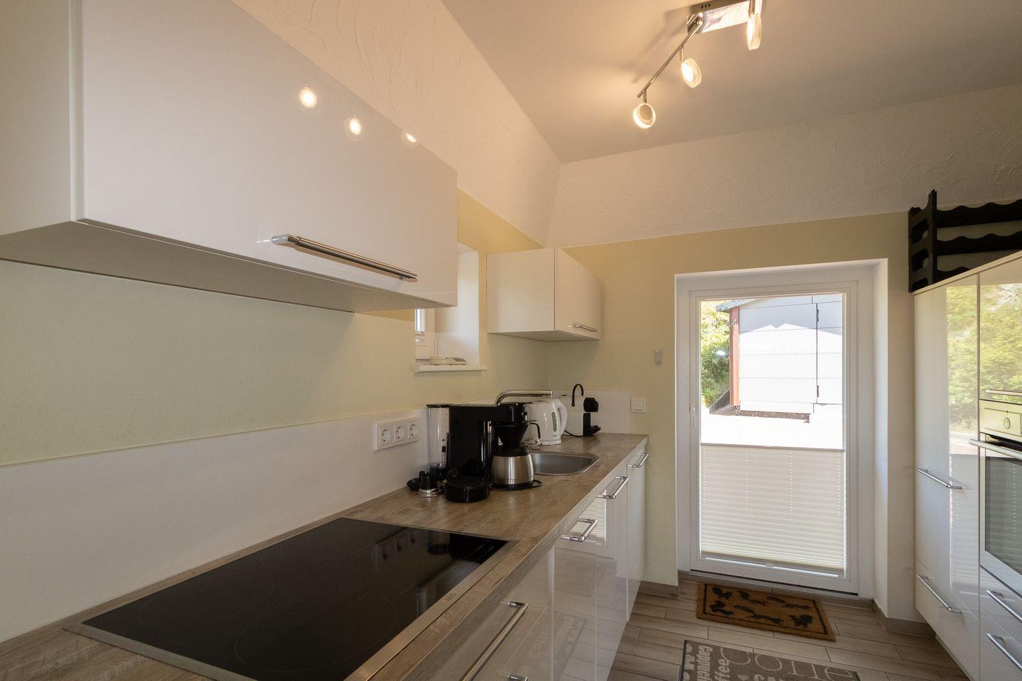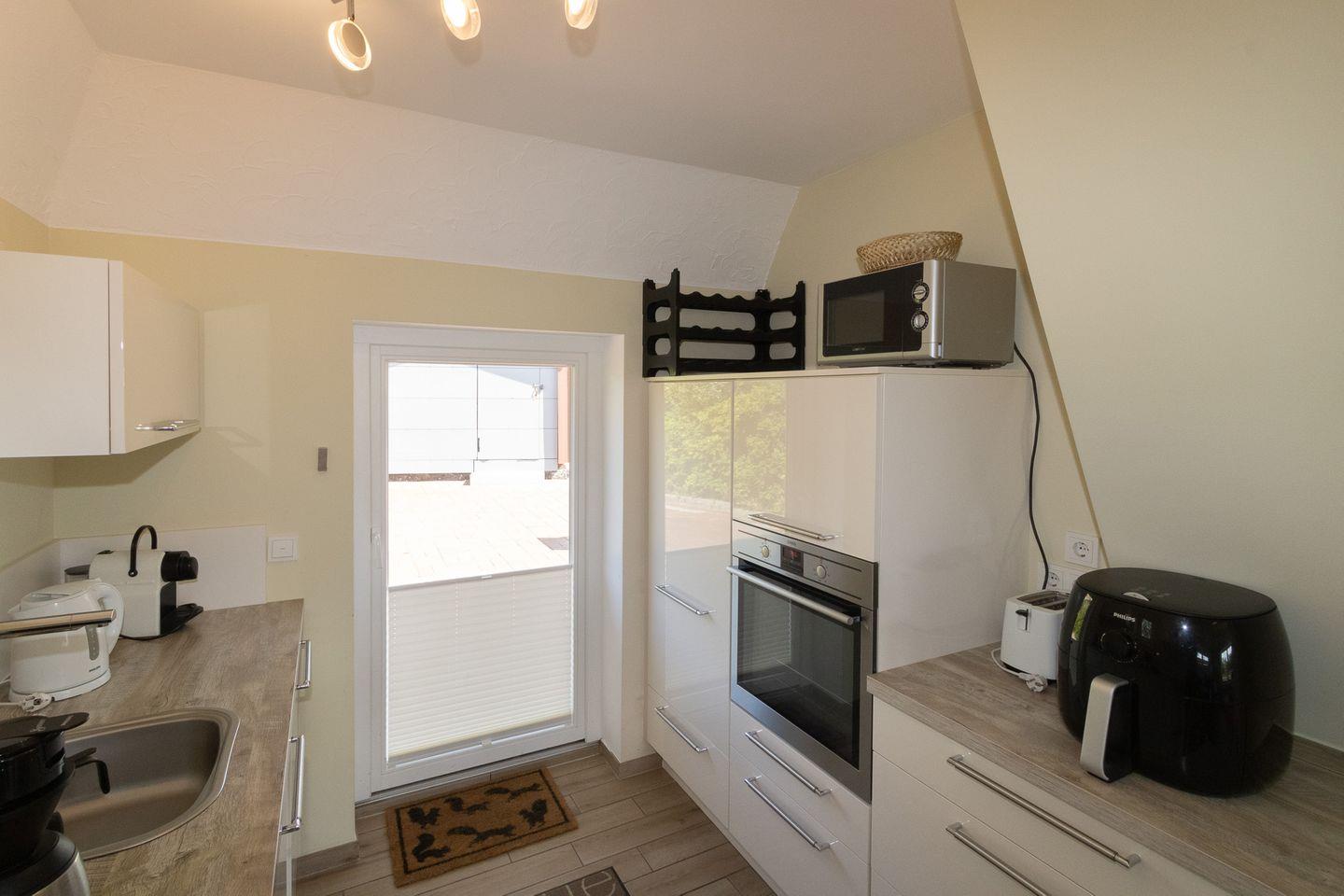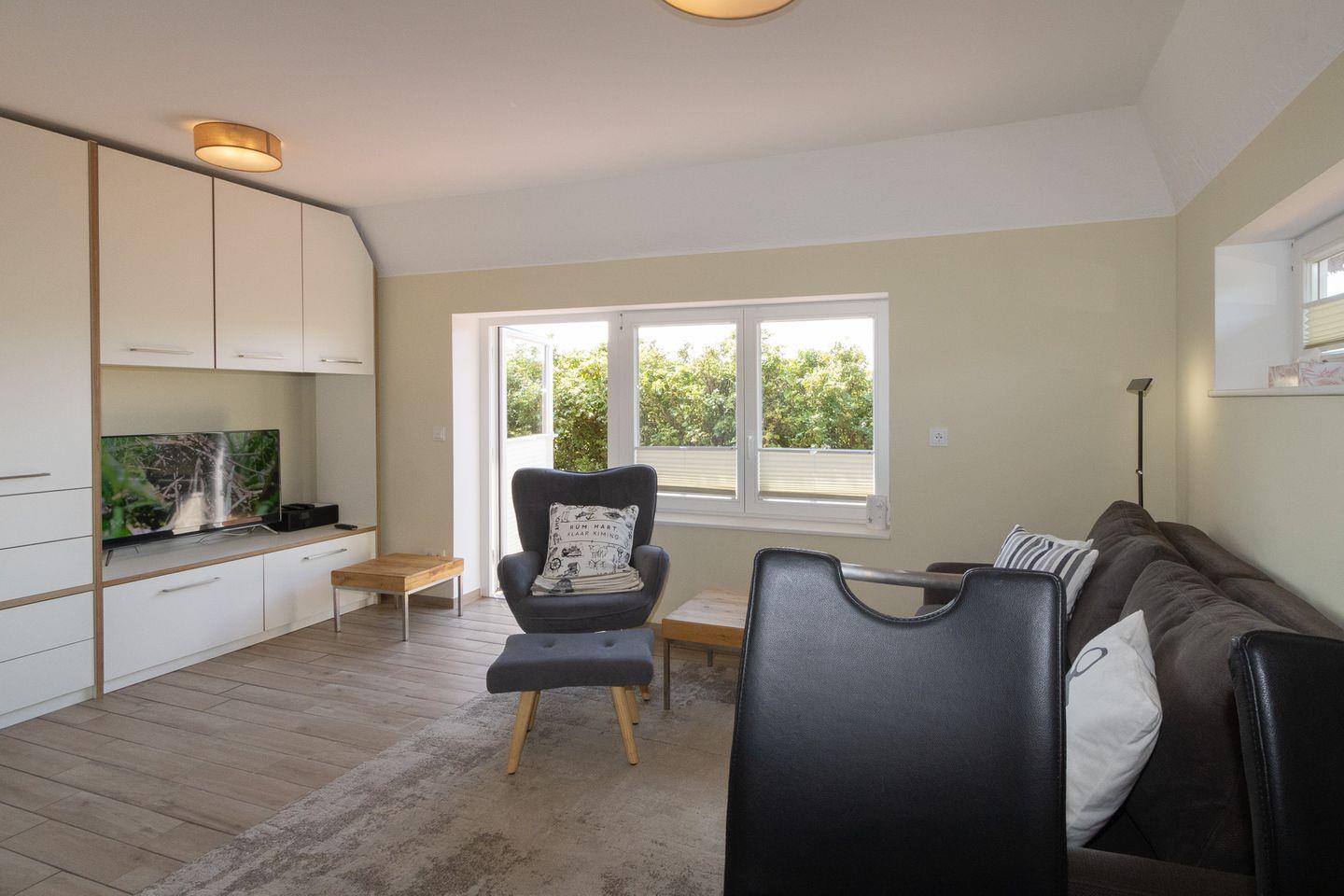 Eine hochwertige Einbauküche mit Spülmaschine und guter Ausstattung steht zur Benutzung zur Verfügung. Der schöne Wohnraum im Erdgeschoss verfügt über eine gemütliche Couch und liegt offen zur Küche. Die stilvolle Ausstattung ist modern. Im Wohnraum finden Sie auch den Kamin, der zusätzlich zur Fußbodenheizung für eine wohlige Wärme sorgt.