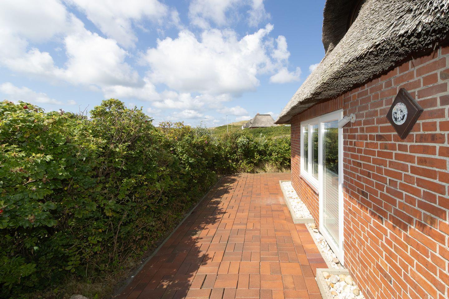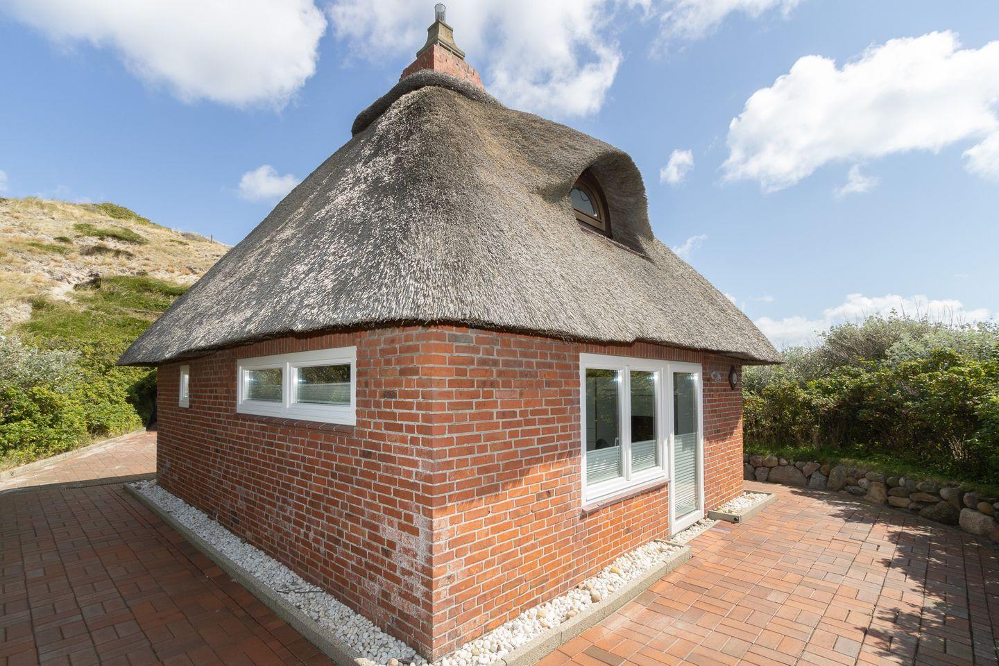 Das reetgedeckte Klinkerhaus liegt in den Dünen von Hörnum