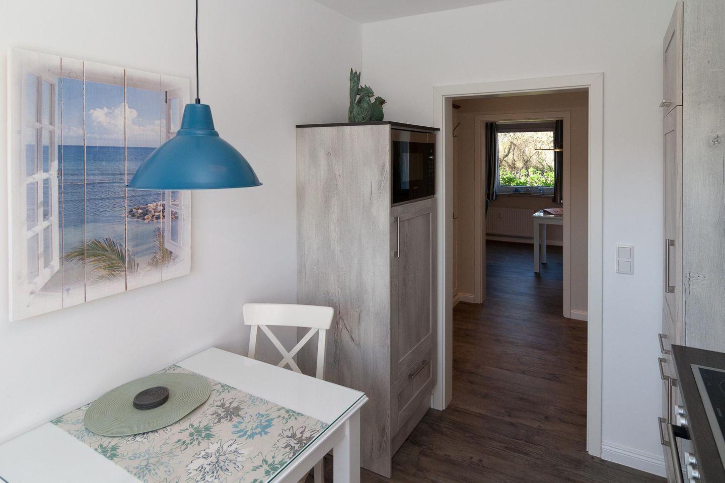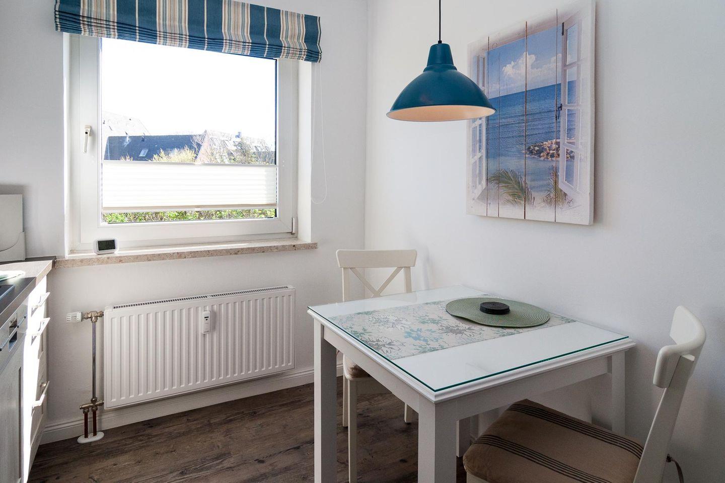 Die gemütliche, geschlossene Küche ist mit allem ausgestattet, was Sie brauchen: einem Cerankochfeld, Backofen, Spülmaschine und Mikrowelle. Hier können Sie leckere Mahlzeiten zubereiten und sich am Gartentisch auf dem Balkon erholen, während Sie den Blick ins Grüne genießen. Der Balkon ist der ideale Ort, um die frische Nordseeluft zu inhalieren oder ein gutes Buch zu lesen.