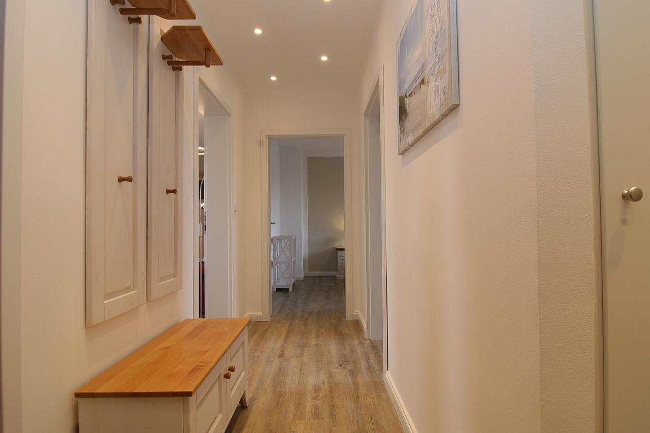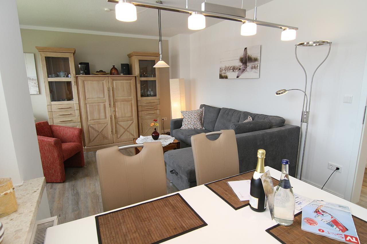 Die Ferienwohnung verfügt über zwei liebevoll eingerichtete Schlafzimmer, die für einen erholsamen Schlaf sorgen. Die angenehm gestaltete Wohnung ist rauchfrei und besticht durch eine gemütliche Atmosphäre, die sofort ein Gefühl von Zuhause vermittelt. Ihr Aufenthalt wird durch die komfortable Einrichtung, darunter ein einladendes Wohnzimmer mit einer Sofaecke und einem Fernseher, abgerundet. Hier können Sie nach einem langen Tag am Strand entspannen und die Geräusche des Meeres genießen.