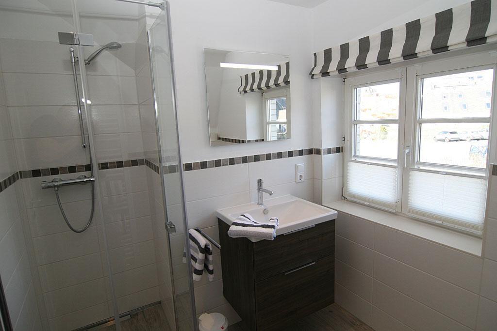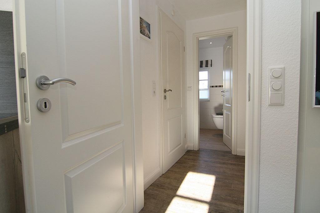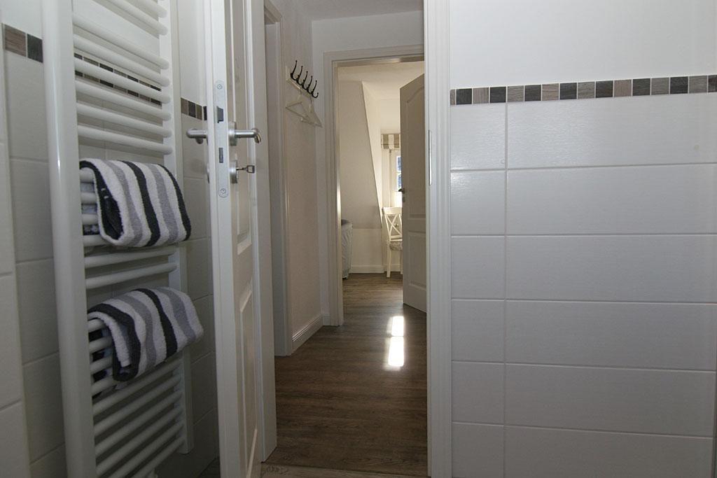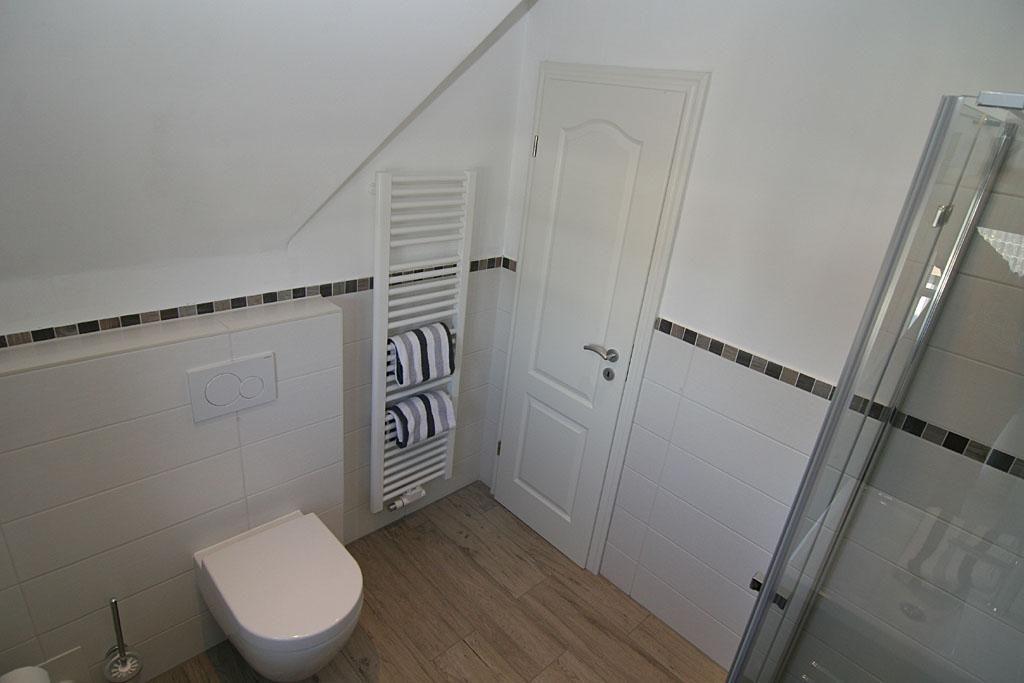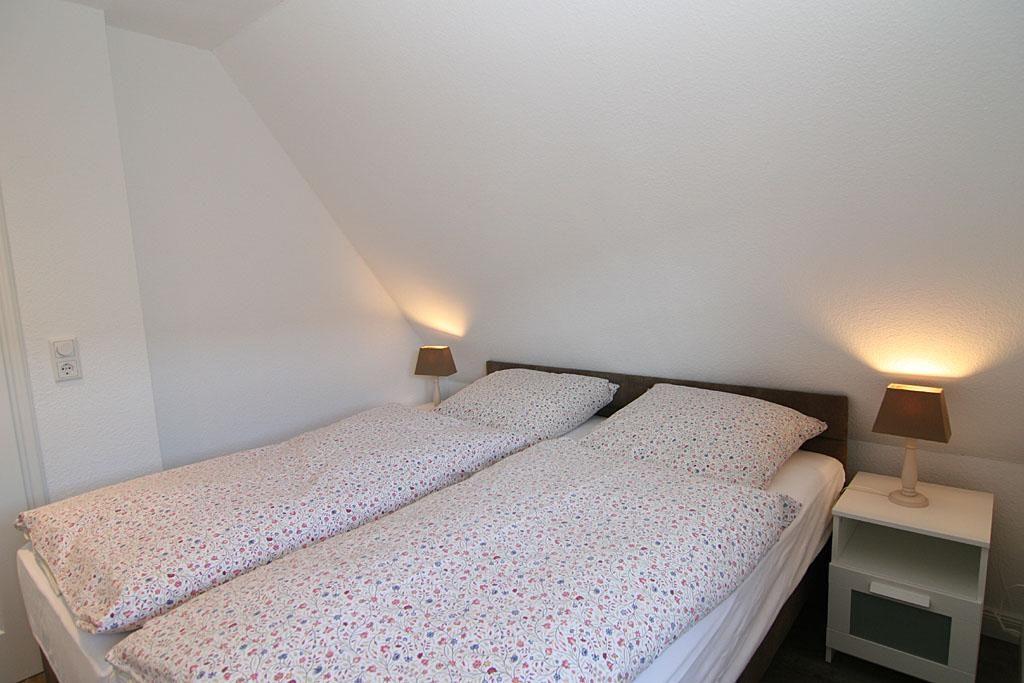 Die Wohnung verfügt über ein einladendes Schlafzimmer mit Schlafmöglichkeiten für bis zu zwei Personen. Hier können Sie in Ruhe erholsame Nächte verbringen und am Morgen erfrischt in den neuen Tag starten. Das Badezimmer ist mit einer bodengleichen Dusche sowie den üblichen Annehmlichkeiten wie Waschbecken und WC ausgestattet.