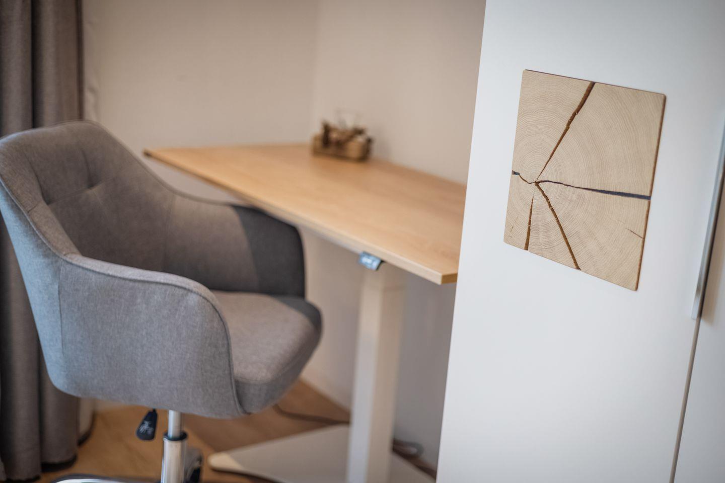 Mittelpunkt der Wohnung ist der offen gestaltete Wohn- und Essbereich mit hochwertigen Möbeln und einem Gaskamin, der auch an verregneten Tagen für Gemütlichkeit sorgt. Zum Wohnbereich gehört außerdem eine moderne Küchenzeile mit Geschirrspülmaschine, Backofen und Induktionskochfeld. Vom Wohnbereich aus erreichen Sie Ihre Terrasse von der aus Sie sowohl das Wattenmeer als auch den Weststrand der Insel bewundern können.