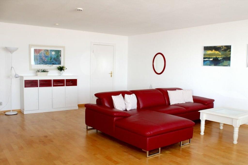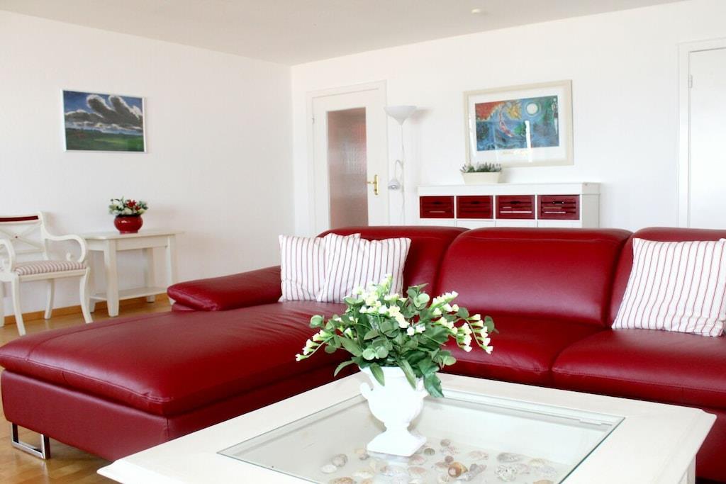 Ferielejligheden ligger på første sal i et velholdt boligkompleks direkte ved øststranden. Den er rummelig indrettet og udstyret med et moderne køkken og et rummeligt badeværelse med håndklædetørrer og et stort bruseområde. Den store stue med parketgulv er lys og indbydende. Lejligheden har to smukke soveværelser: et med to enkeltsenge (90x200) og et med en dobbeltseng (160x200) og havudsigt. Et stort vindue giver dig mulighed for at nyde den fantastiske udsigt over havet til de omkringliggende øer. Denne attraktive lejlighed tilbyder fire personer alt, hvad de kan ønske sig til en dejlig, afslappende ferie på Sild. Fra den møblerede balkon kan du nyde den storslåede panoramaudsigt over havet og slappe af og se livet på den nydesignede Hörnum strandpromenade og de passerende udflugtsbåde.
