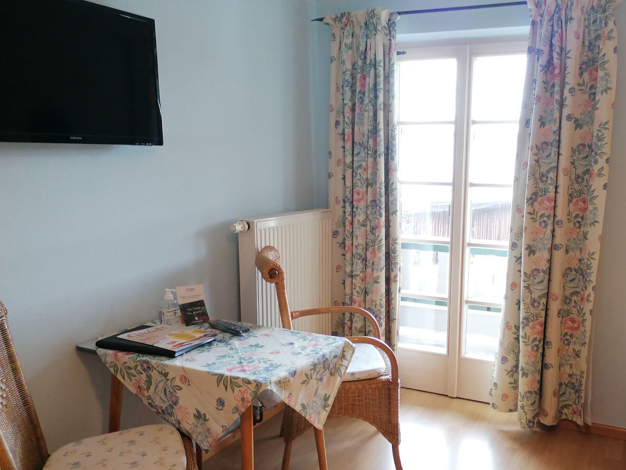 Helles, geräumiges Zimmer im 2. Stock. Zur Ostseite mit Balkon. Ausgestattet mit Dusche/WC, TV, Föhn und Wasserkocher.Zusatzbett auf Anfrage möglich.