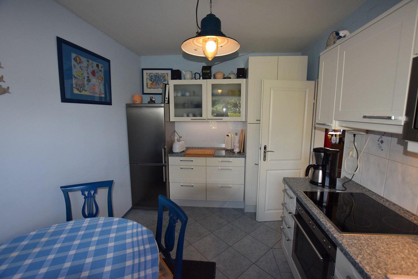 Die Küche ist ausgestattet mit Herd, Backofen, Toaster, Mikrowelle, Geschirrspüler und Kühlschrank sowie komplettes Inventar.