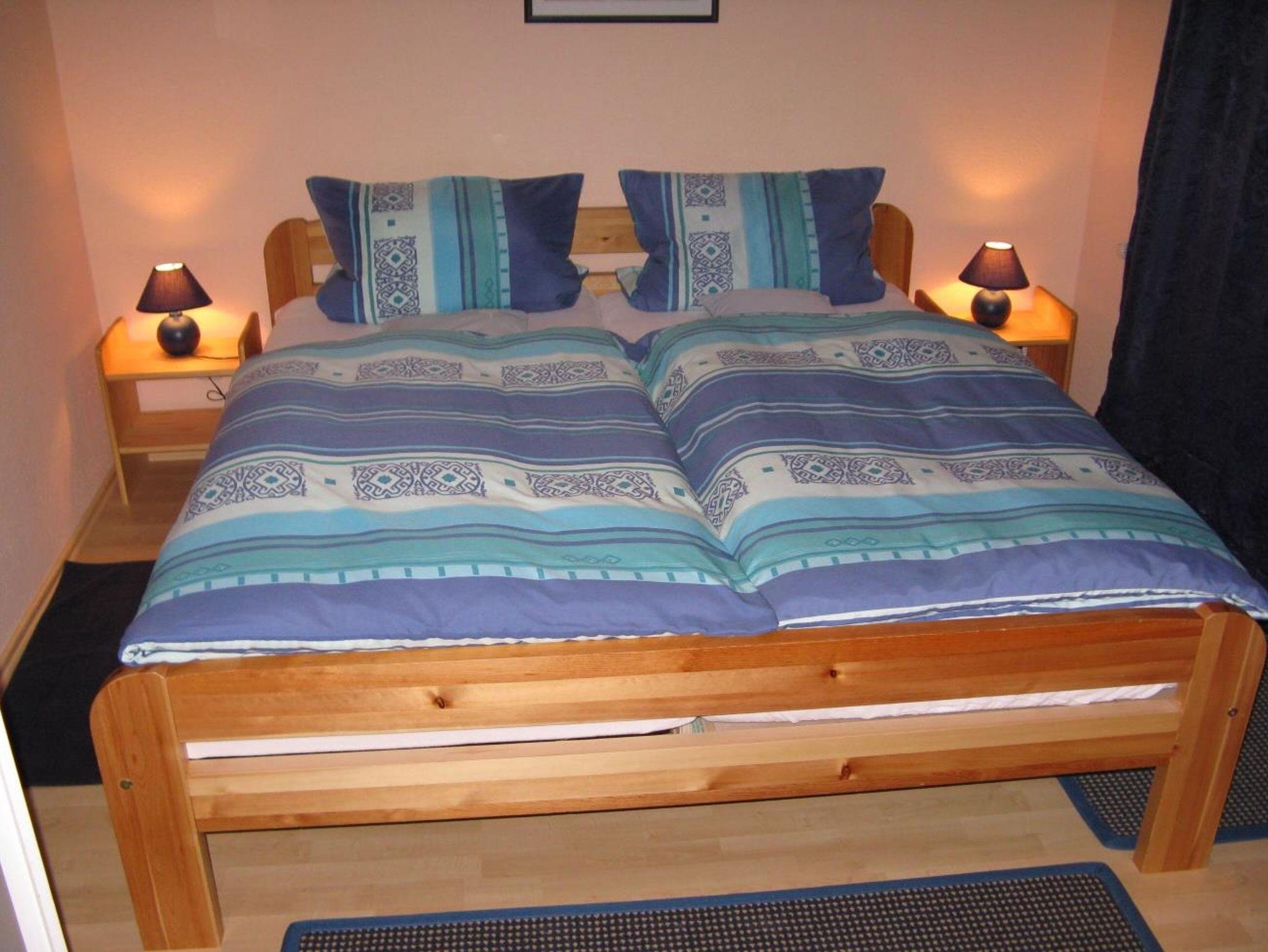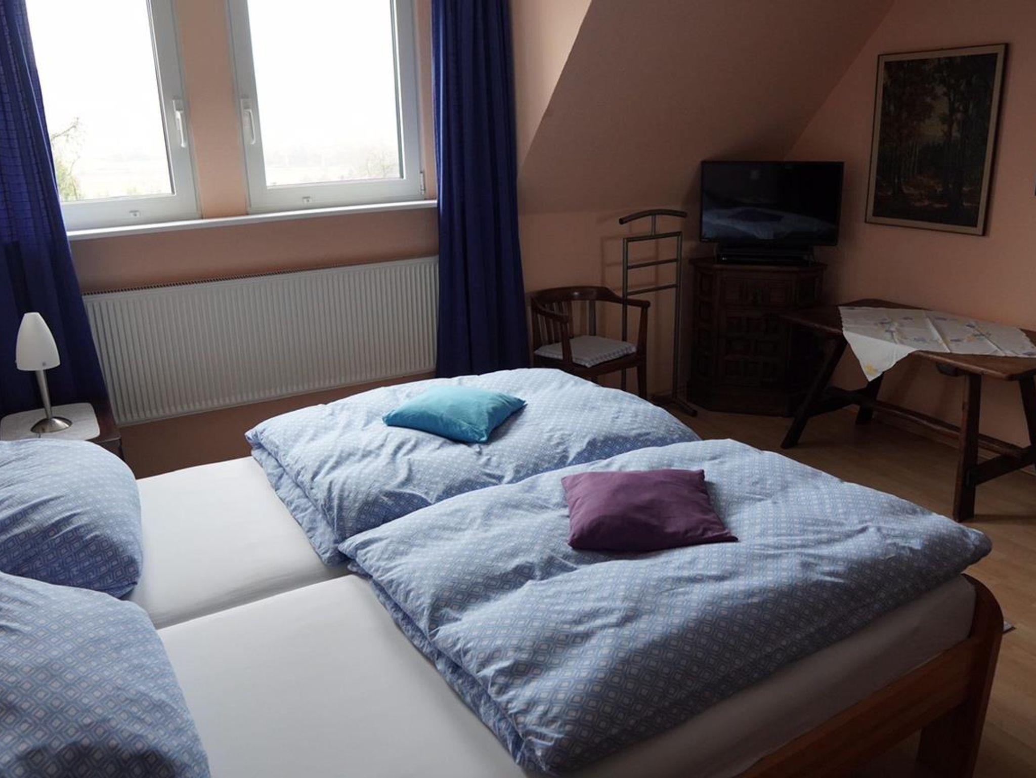 Das Gästehaus vefügt über 2 Doppelzimmer mit Doppelbetten, 1 Einzelzimmer mit Einzelbett/Ausziehbett, 1 Wohn/Schlafraum mit Einzelbett und 2 Badezimmer, separat eine Waschmaschine.