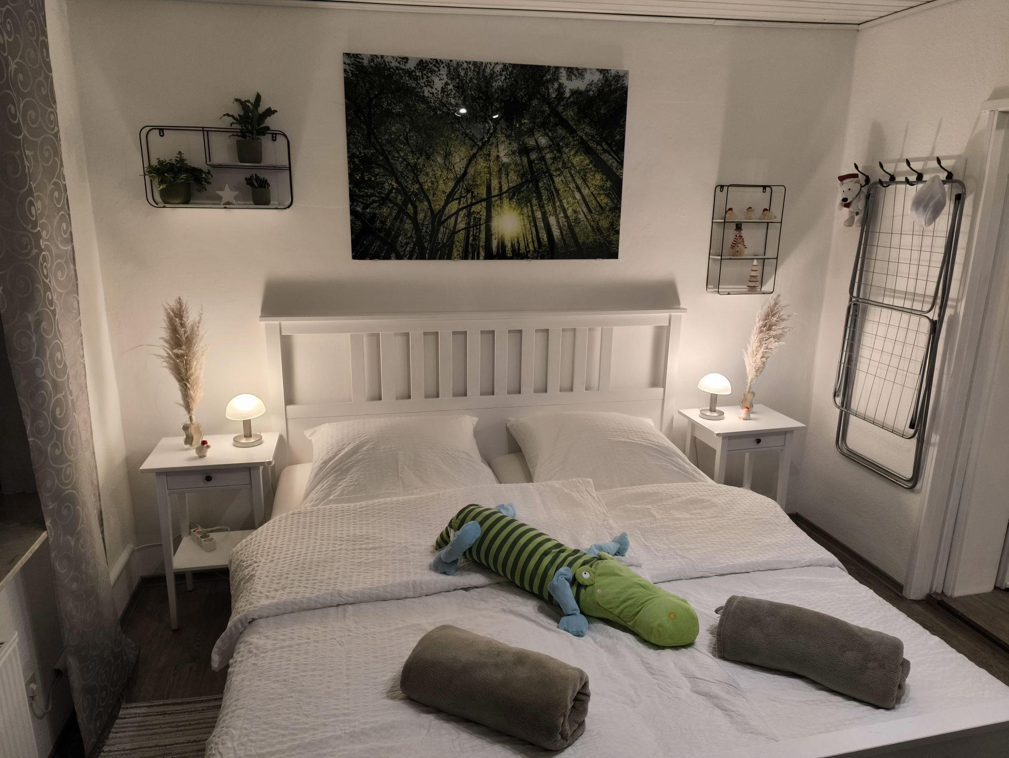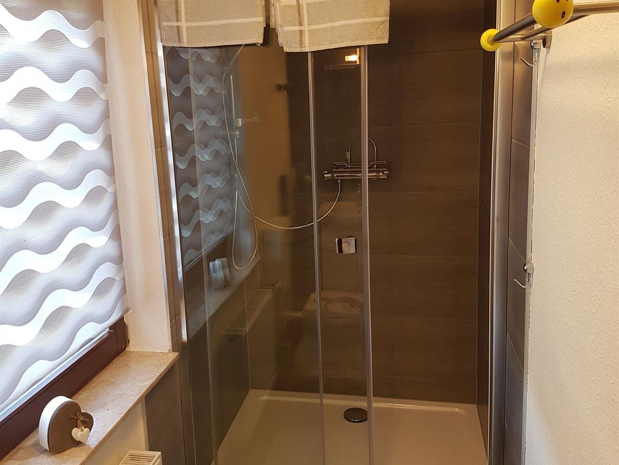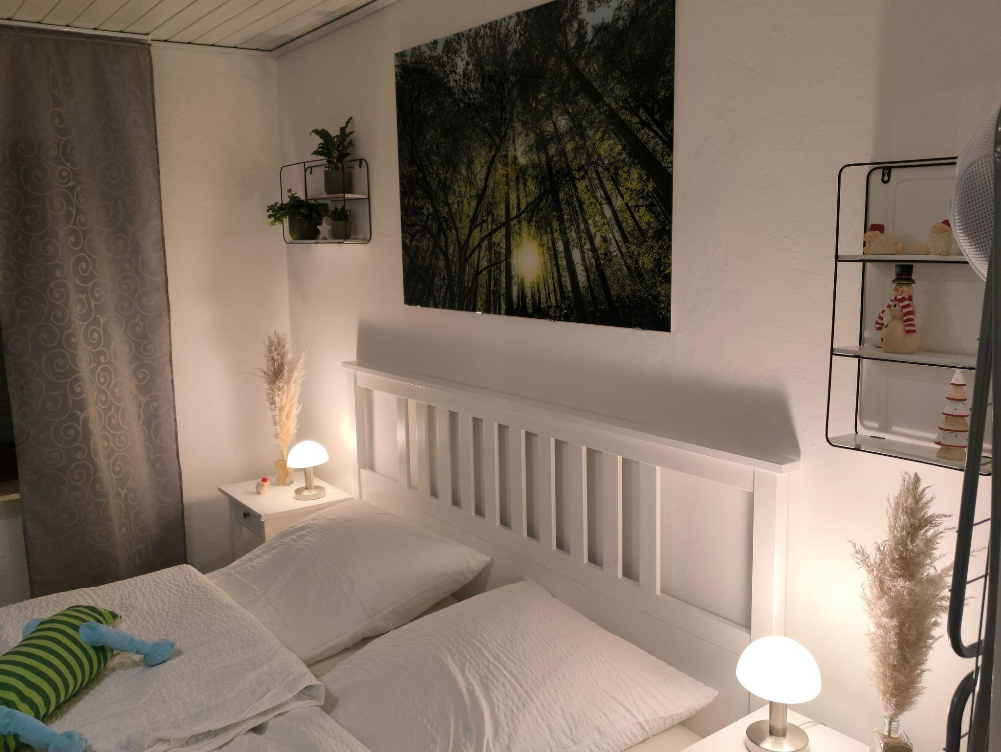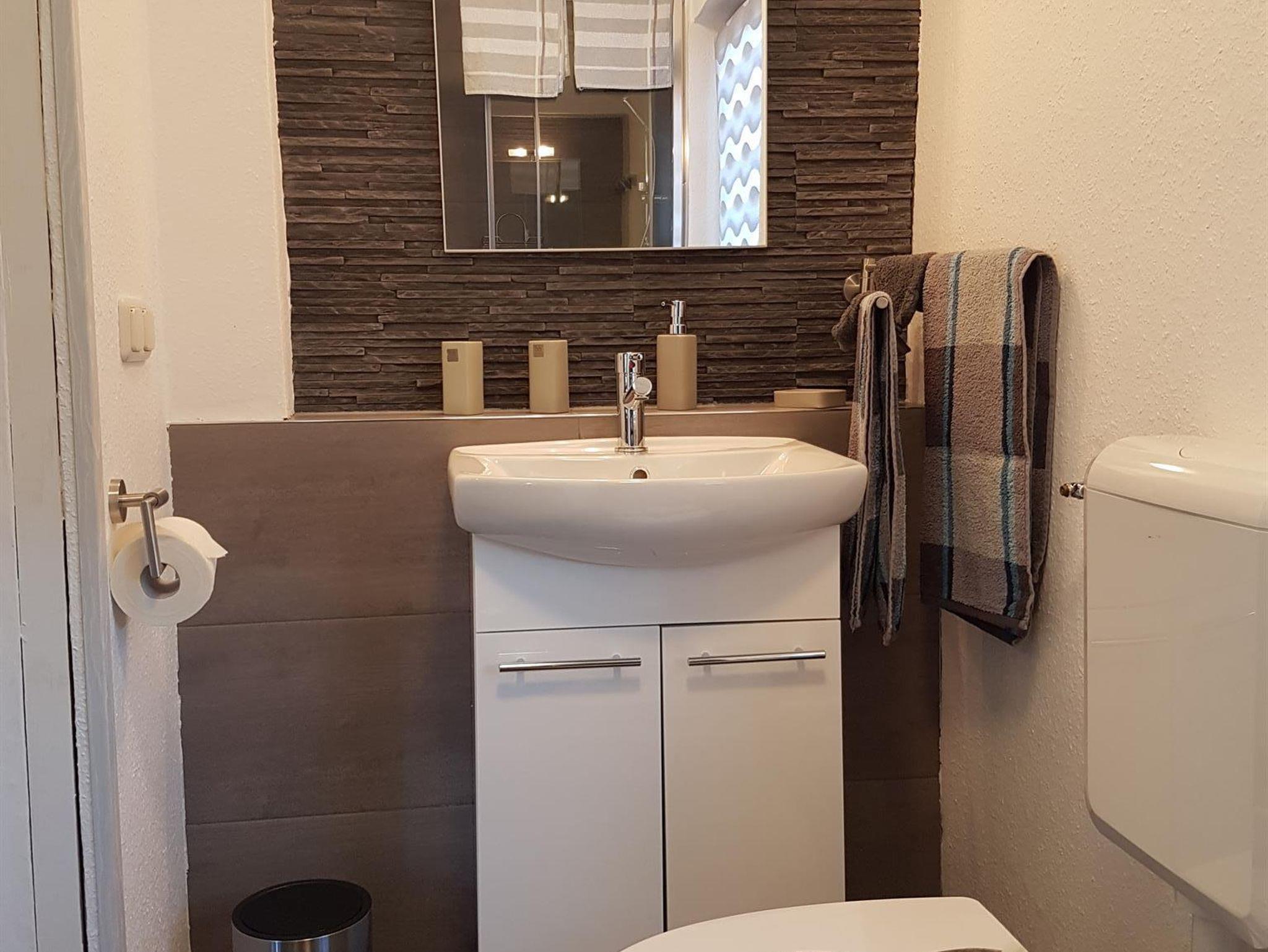 Die Ferienwohnung verfügt über ein Badezimmer, ein Schlafzimmer (1x Bett 180x200cm + 1 Kinderbett)