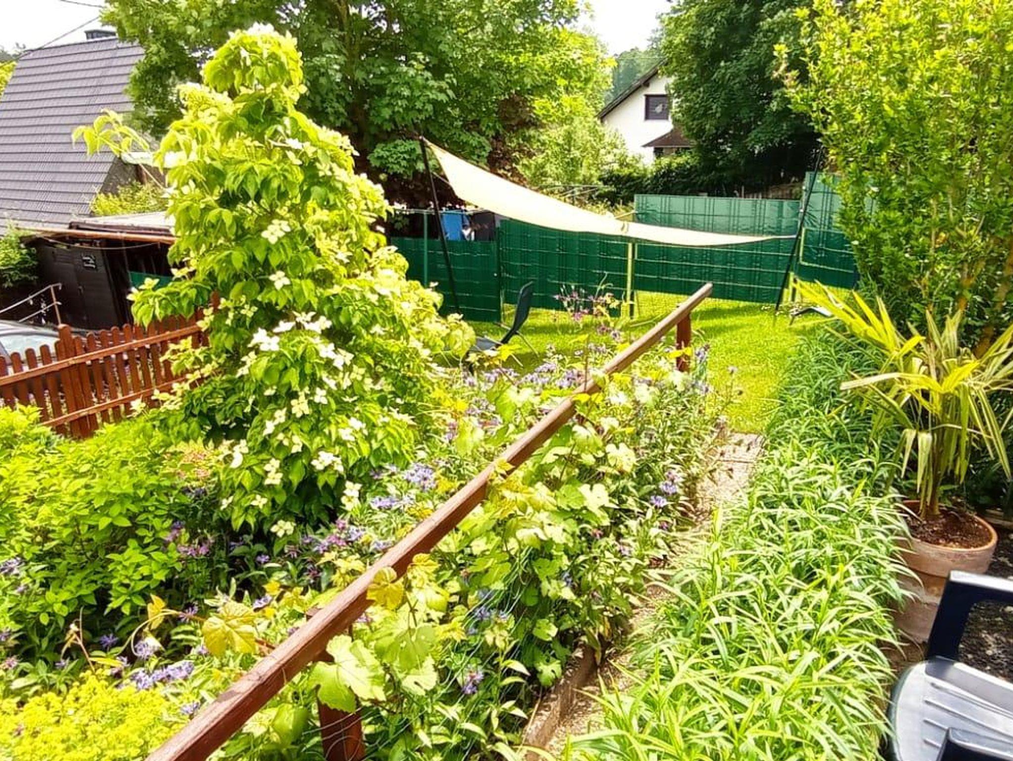 Auf dem Grundstück ist ein Steingarten, sowie ein Spielabschnitt für Kinder, dieser beinhaltet einen Sandkasten, eine Rutsche sowie ein Kinderspielhaus. Eine gemütliche Gartenbank lädt dazu ein den Kindern beim spielen zu zu schauen.