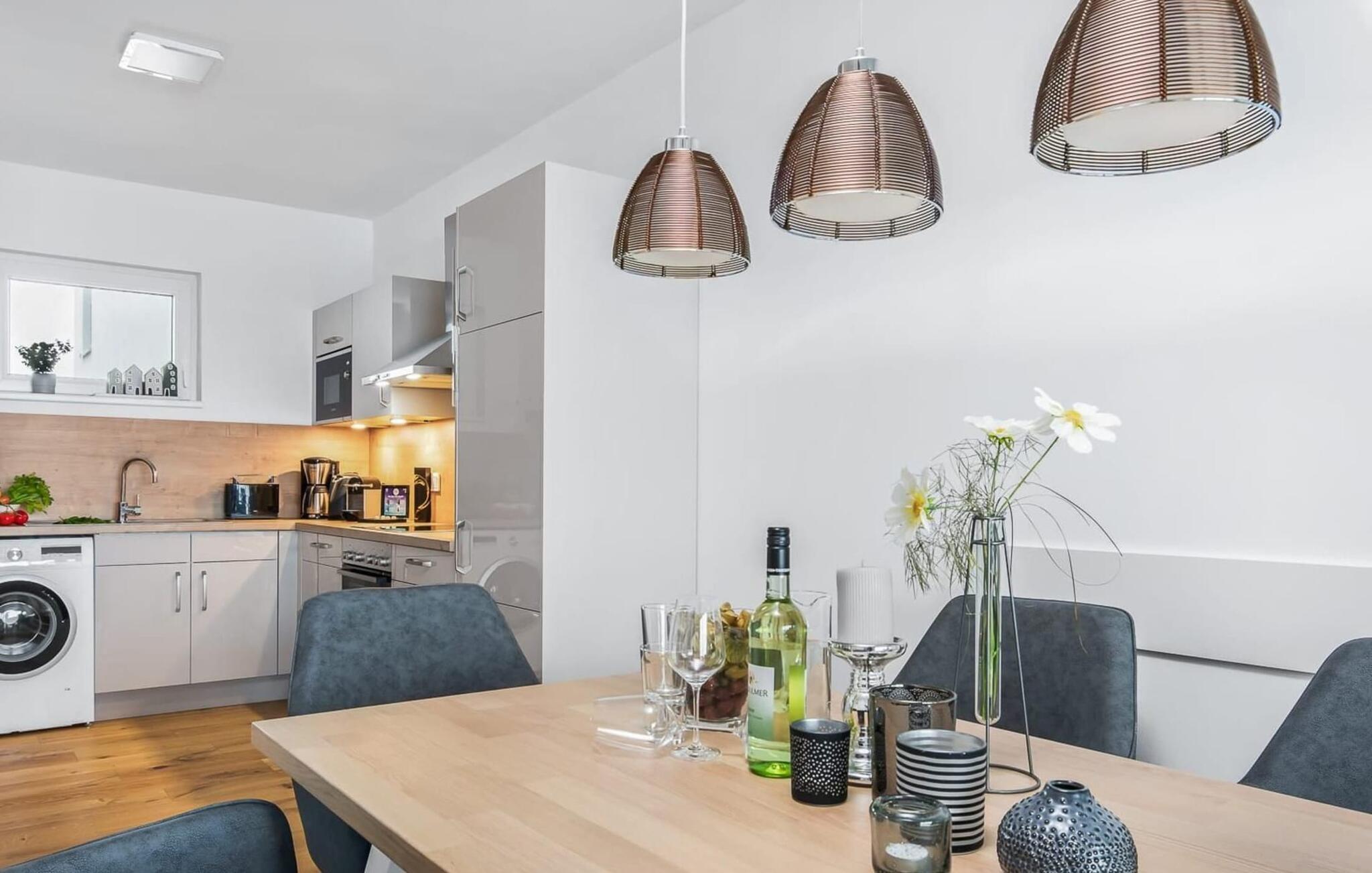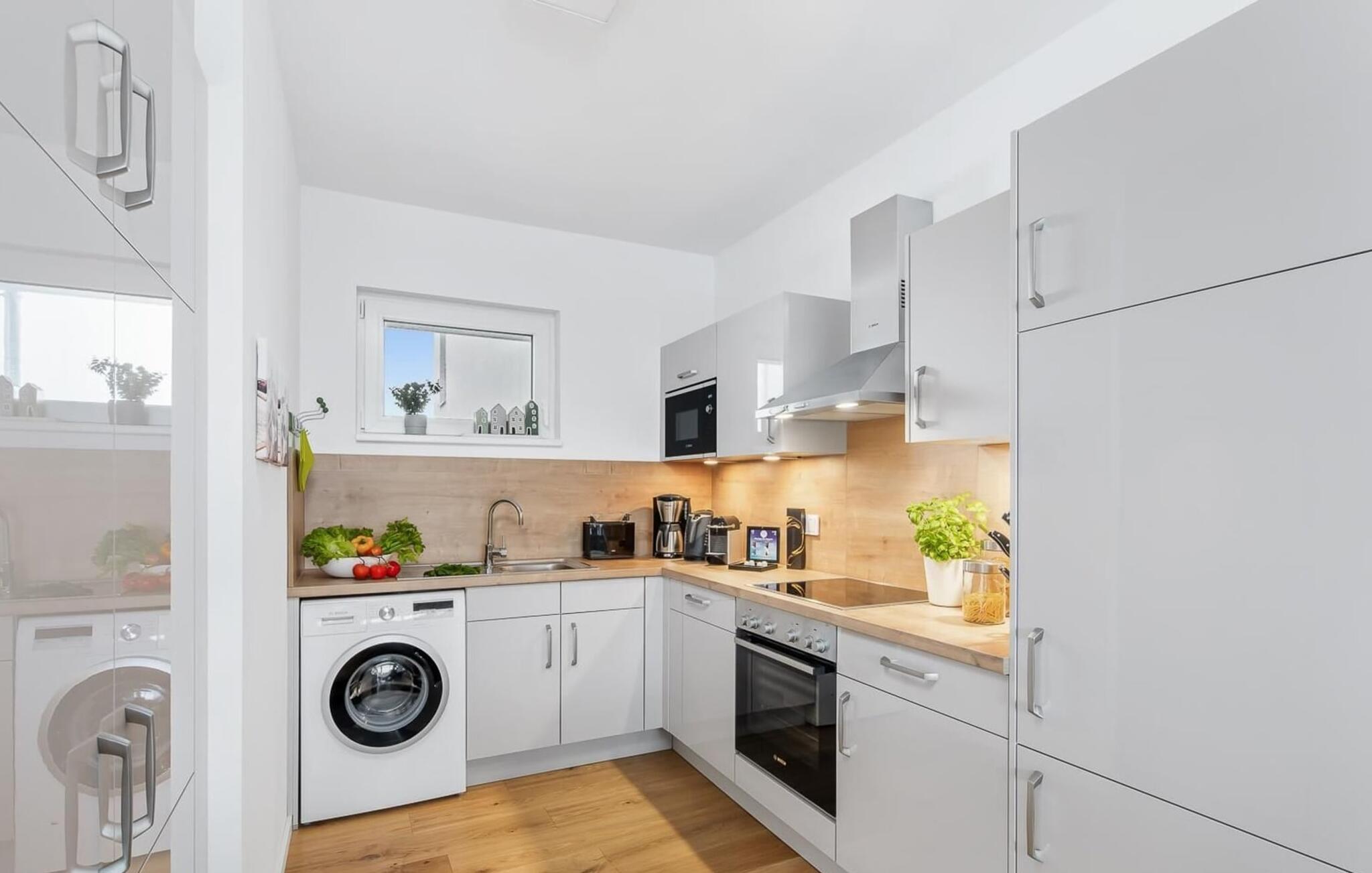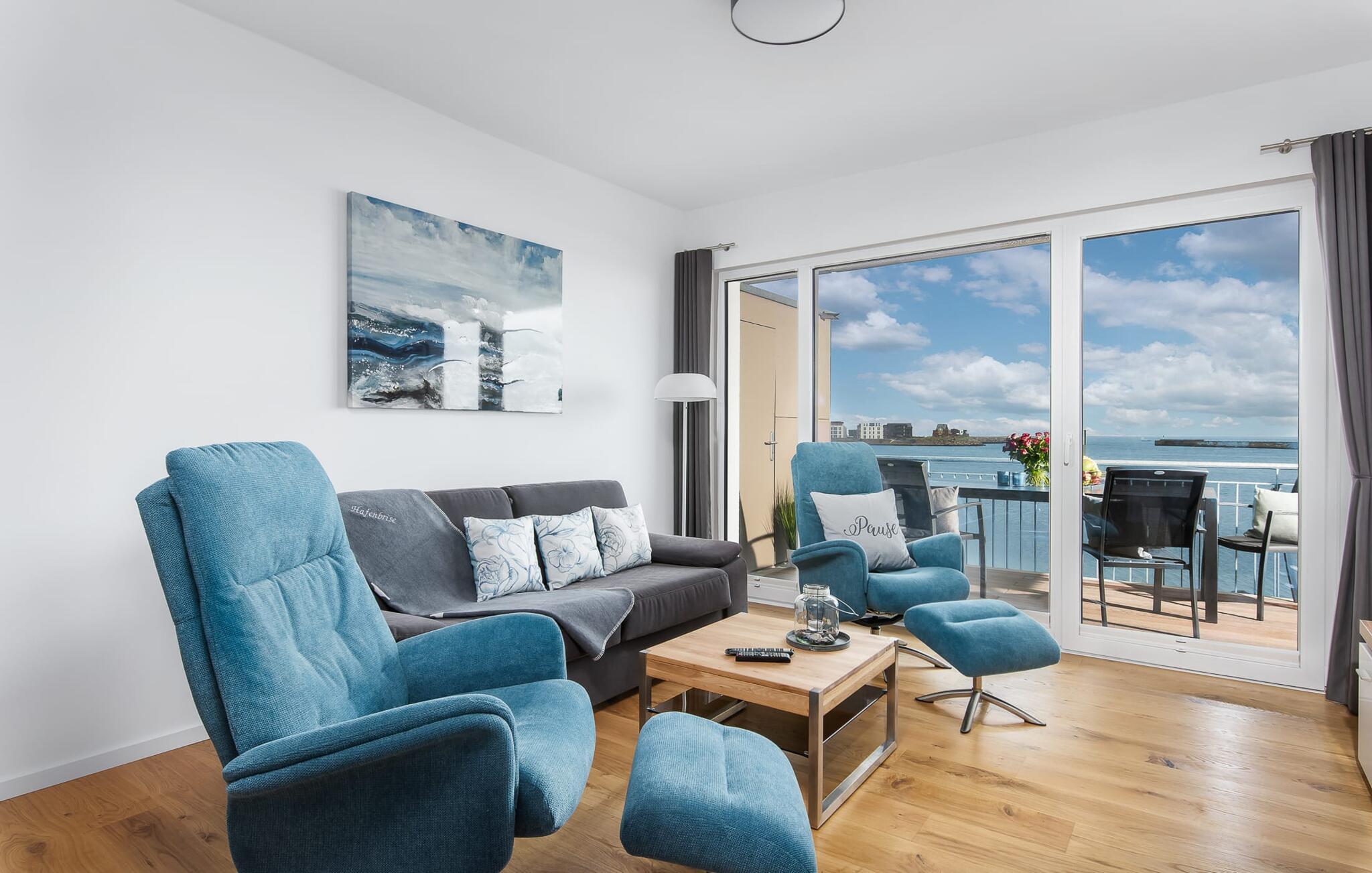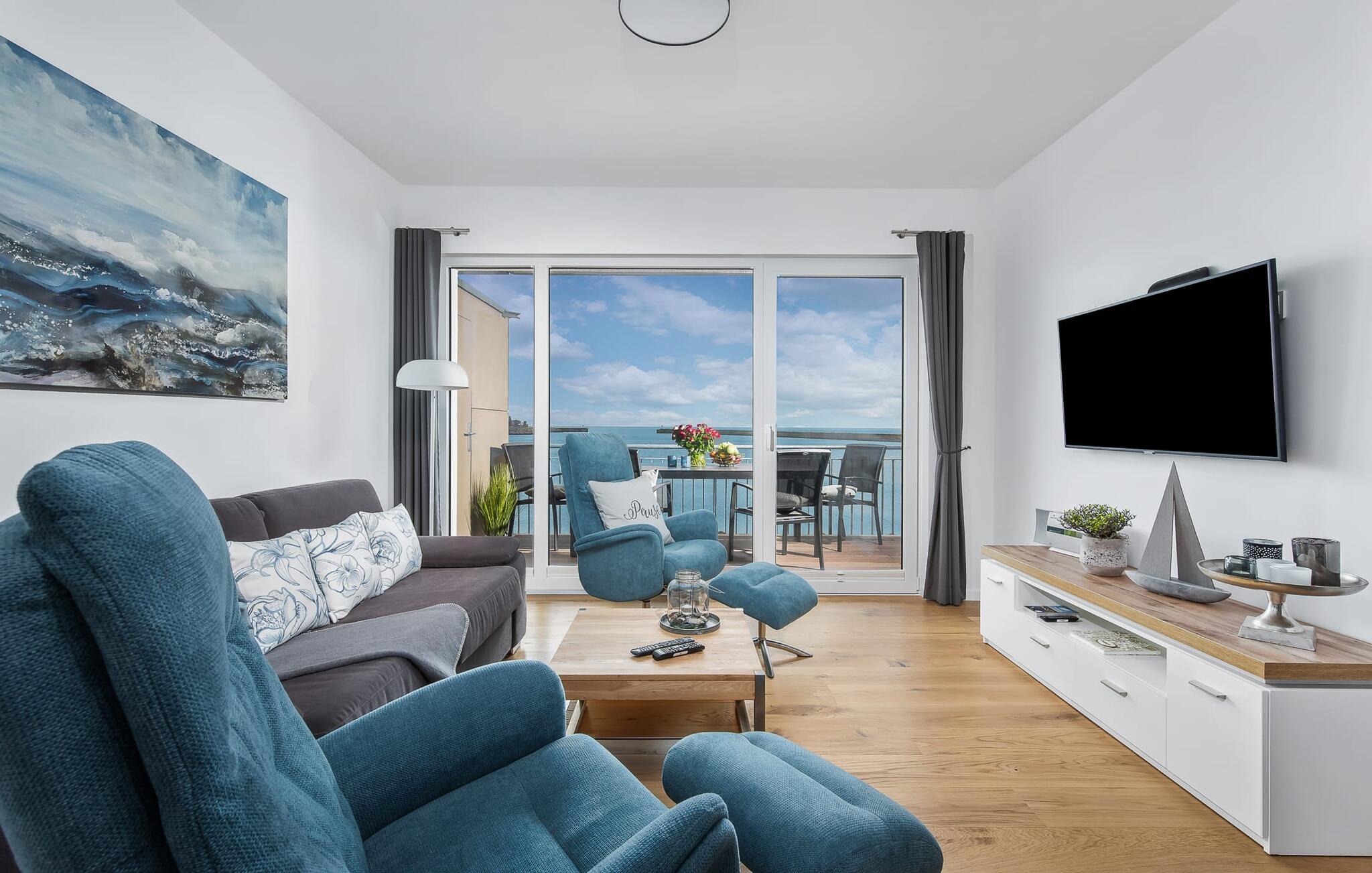 Det perfekt udstyrede køkken vækker lysten til at lave mad, og så kan I bestemme, om I vil spise ved spisebordet eller på altanen med brusen af havet og en mild havnebrise.