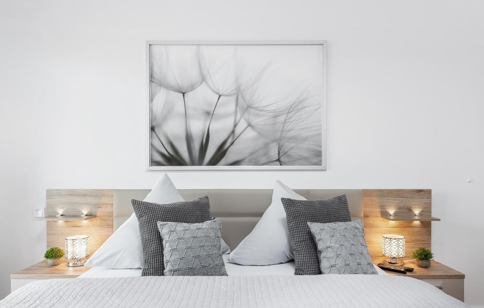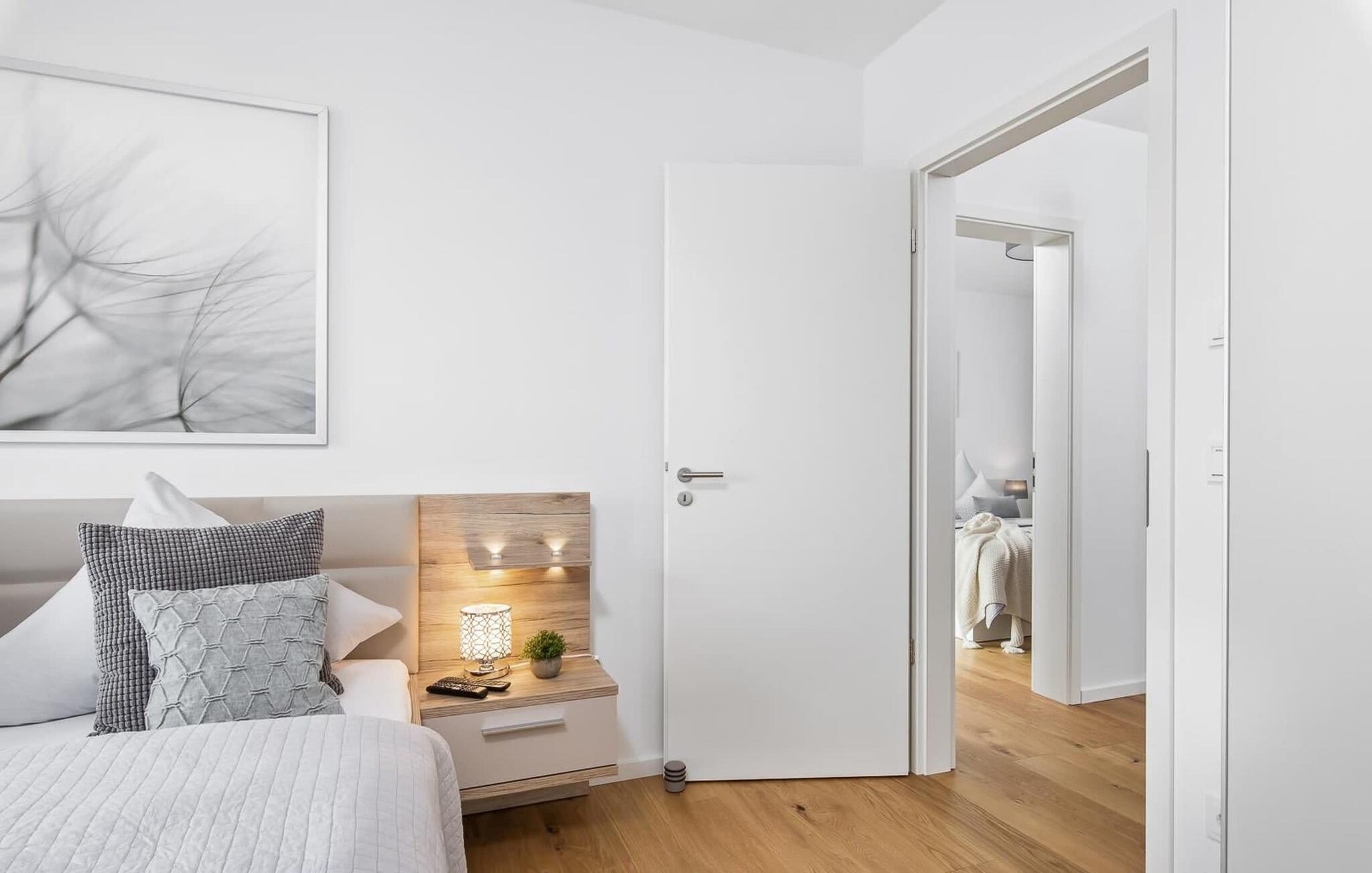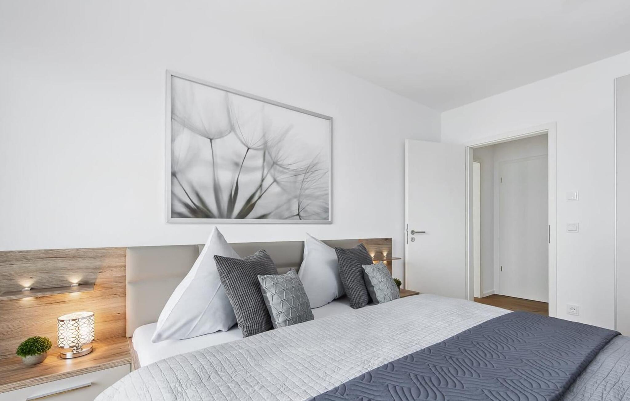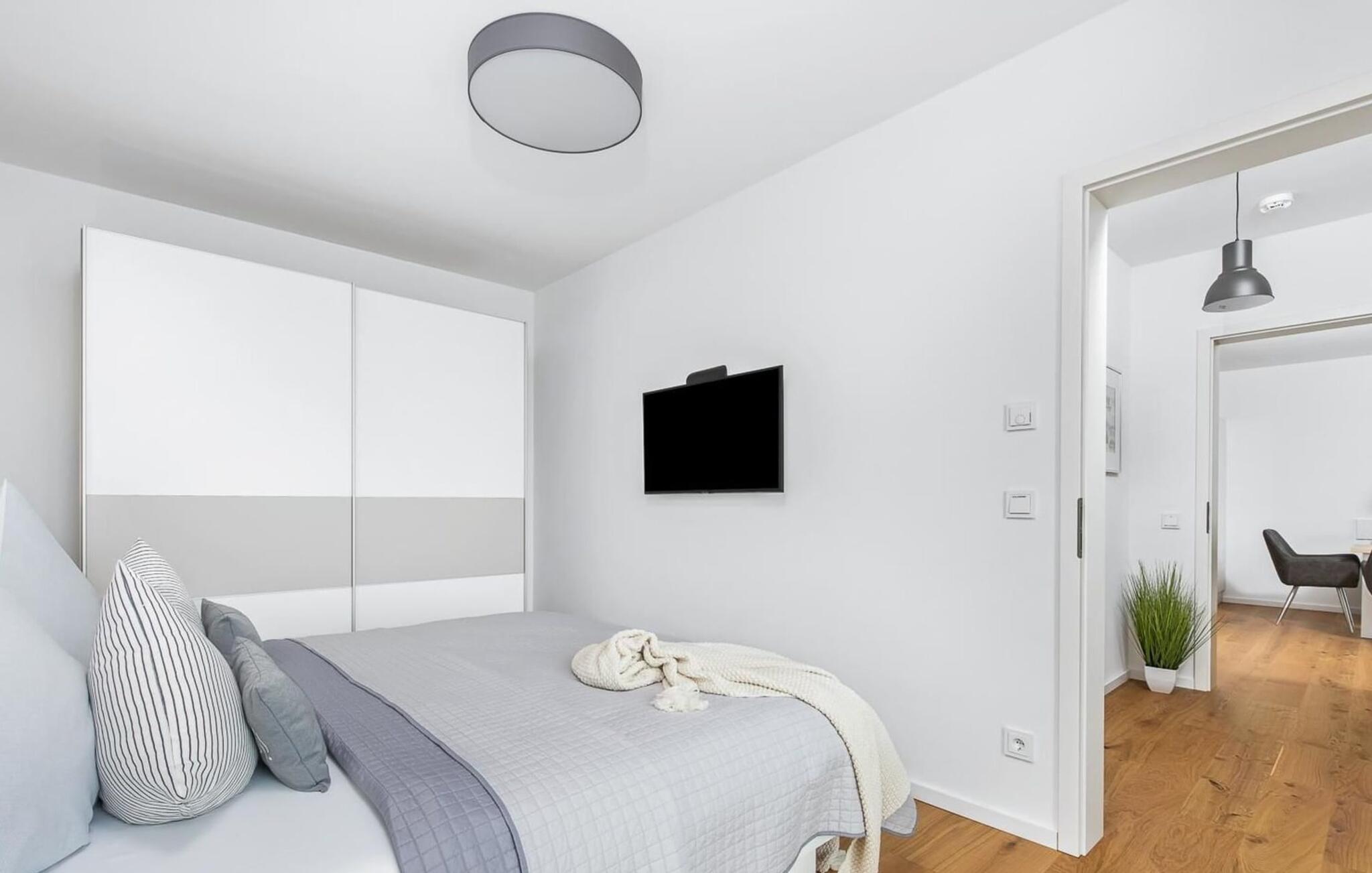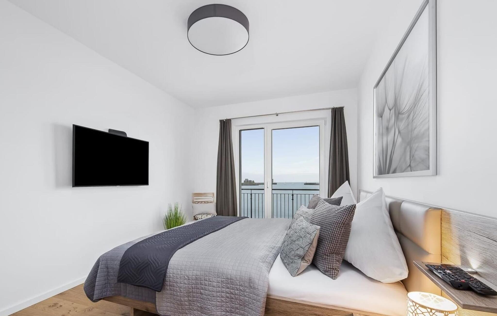 Det ene af de to soveværelser er udstyret med et fjernsyn. I begge soveværelser finder I luksuriøse dobbeltsenge, der garanterer en dyb og afslappende søvn.