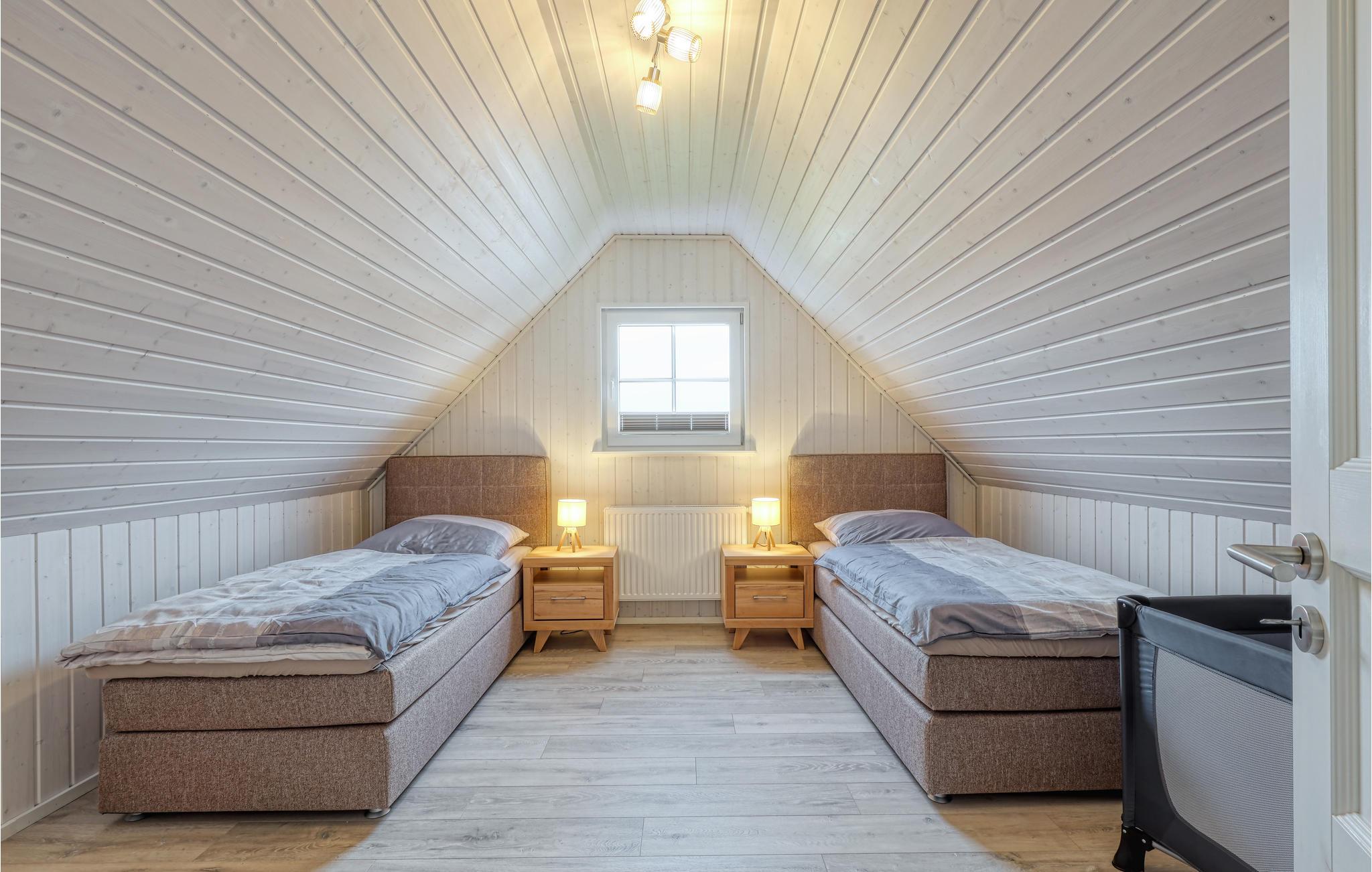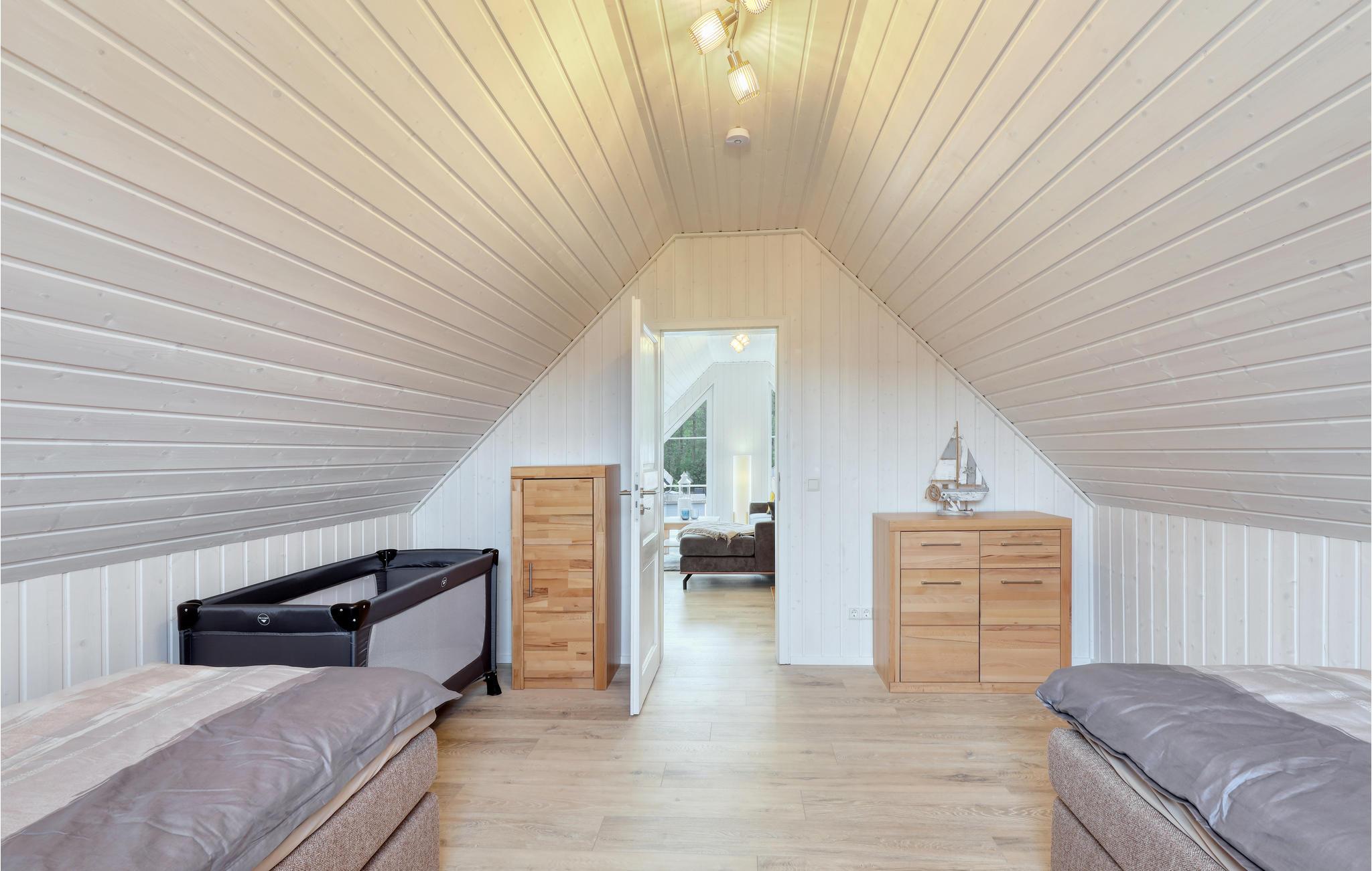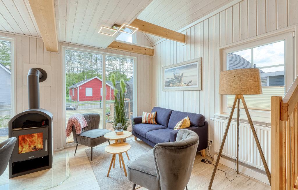 Det første separate soveværelse har en hyggelig dobbeltseng. I det andet soveværelser er der yderlige to sovepladser. I dagligstuen kan I hygge foran brændeovnen sammen med familien på kolde dage.