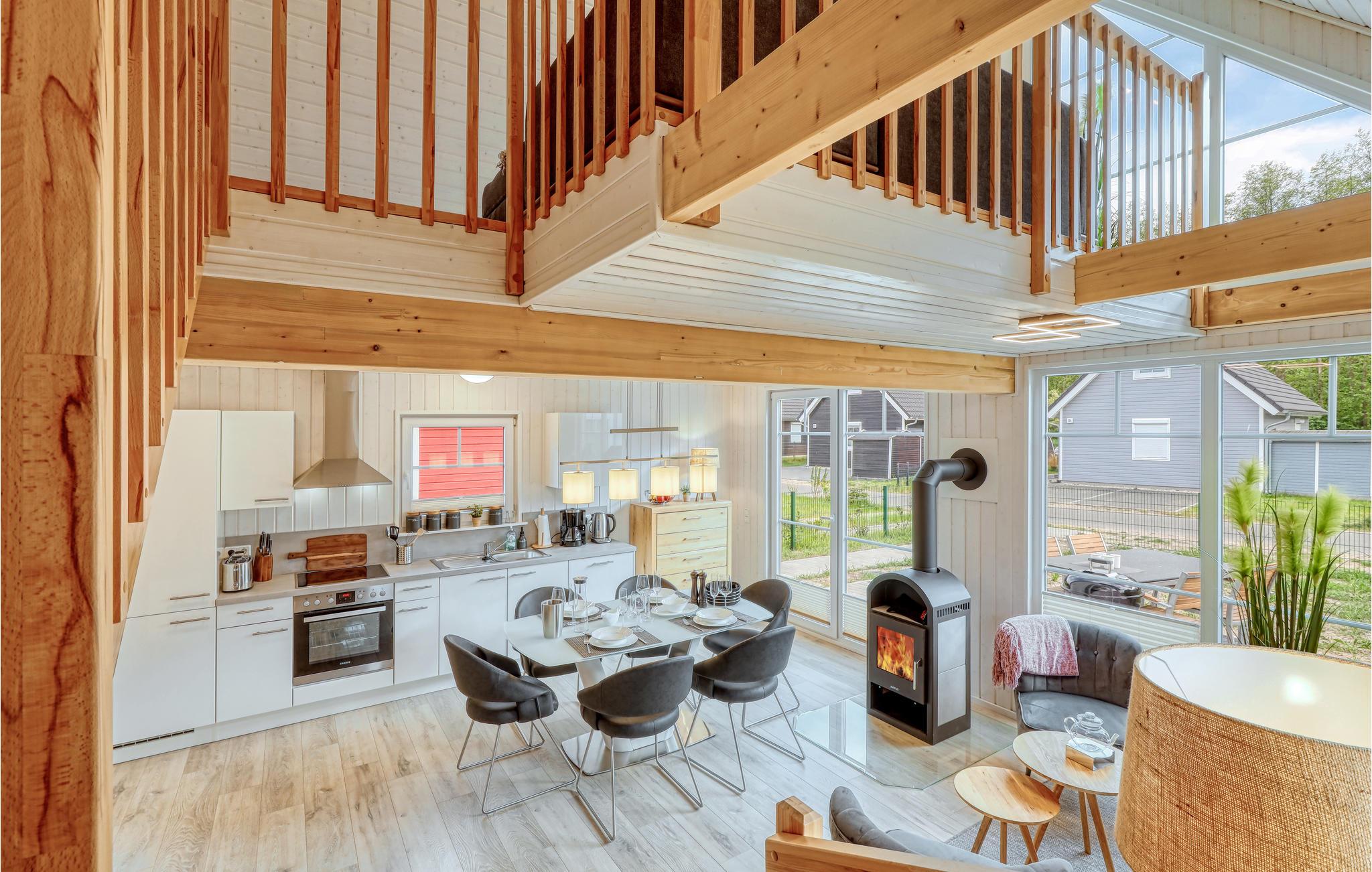 Midt I havnelandsbyen Zerpenschleuse ligger dette smukke feriehaus i skandinavisk stil. Her kan I tilbringe en afslappende ferie mellem vand og marker i Brandenburg.